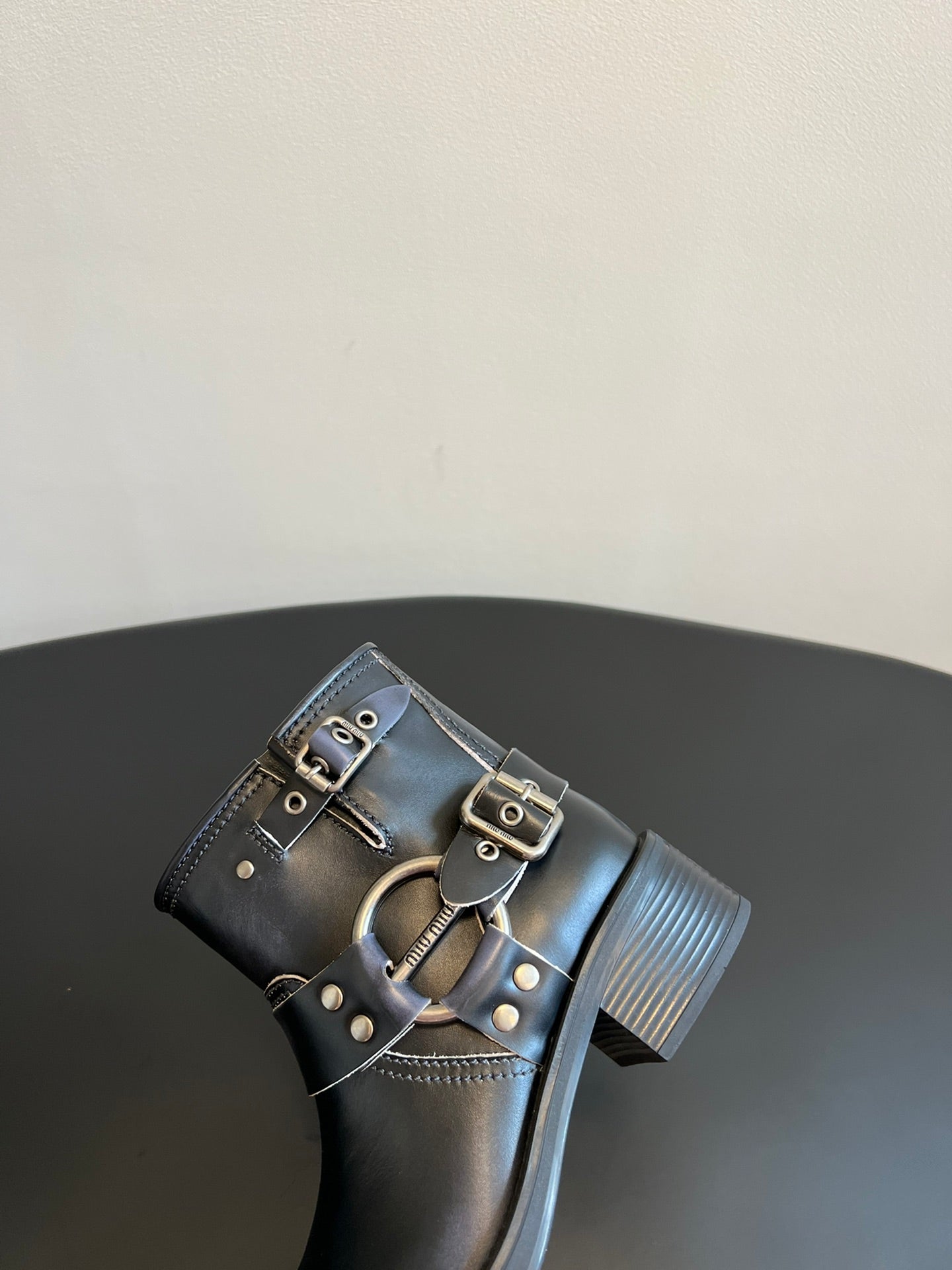 MIUMIU 26S ANKLE BOOTS IN BLACK CALFSKIN SILVER HARDWARE