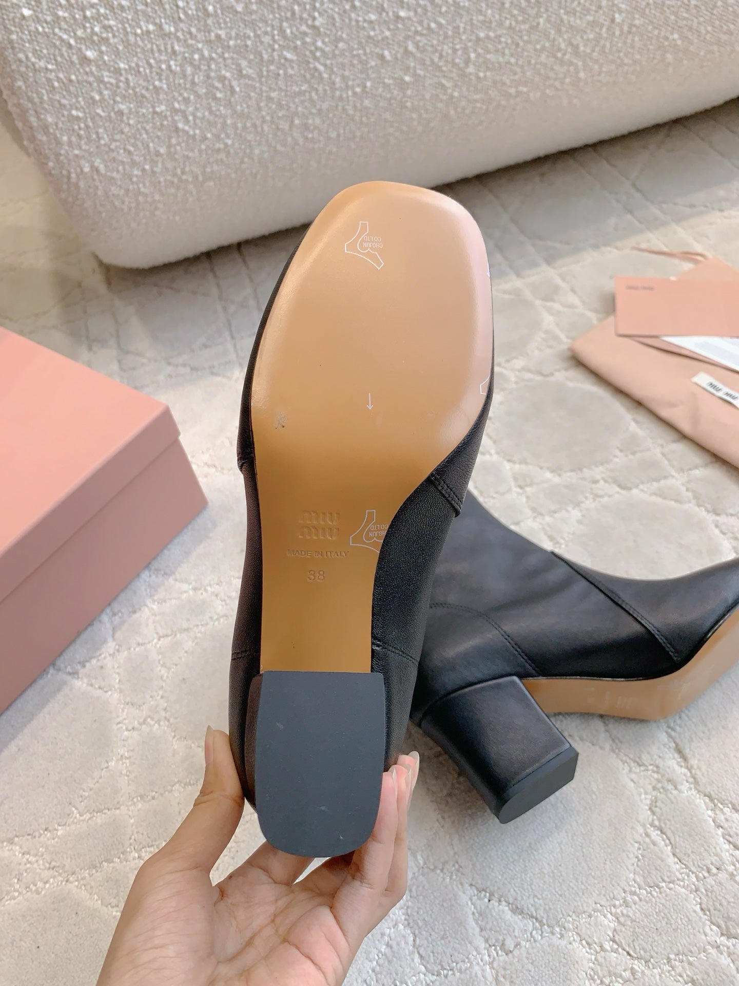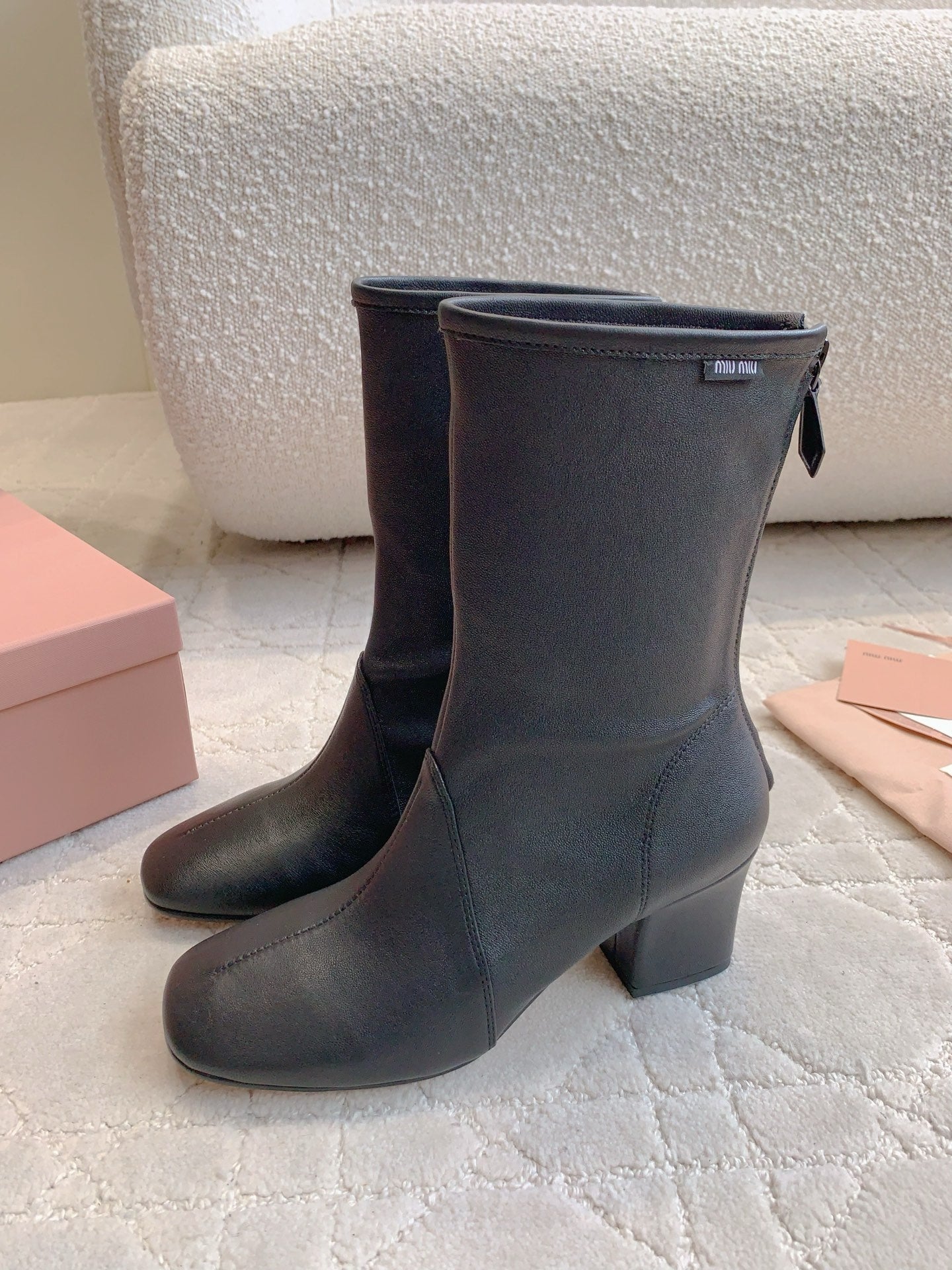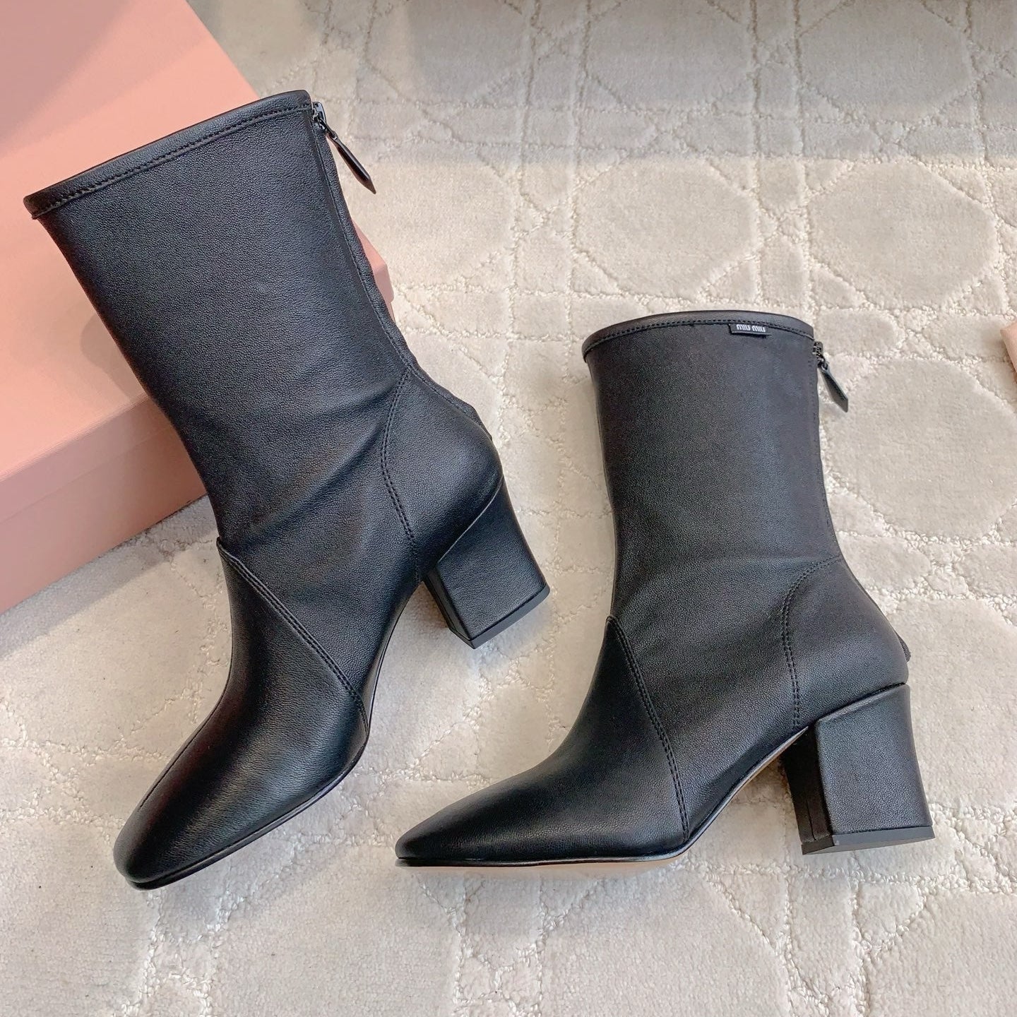 MIUMIU 26S HIGH-HEELED ANKLE BOOTS 70MM IN BLACK CALFSKIN