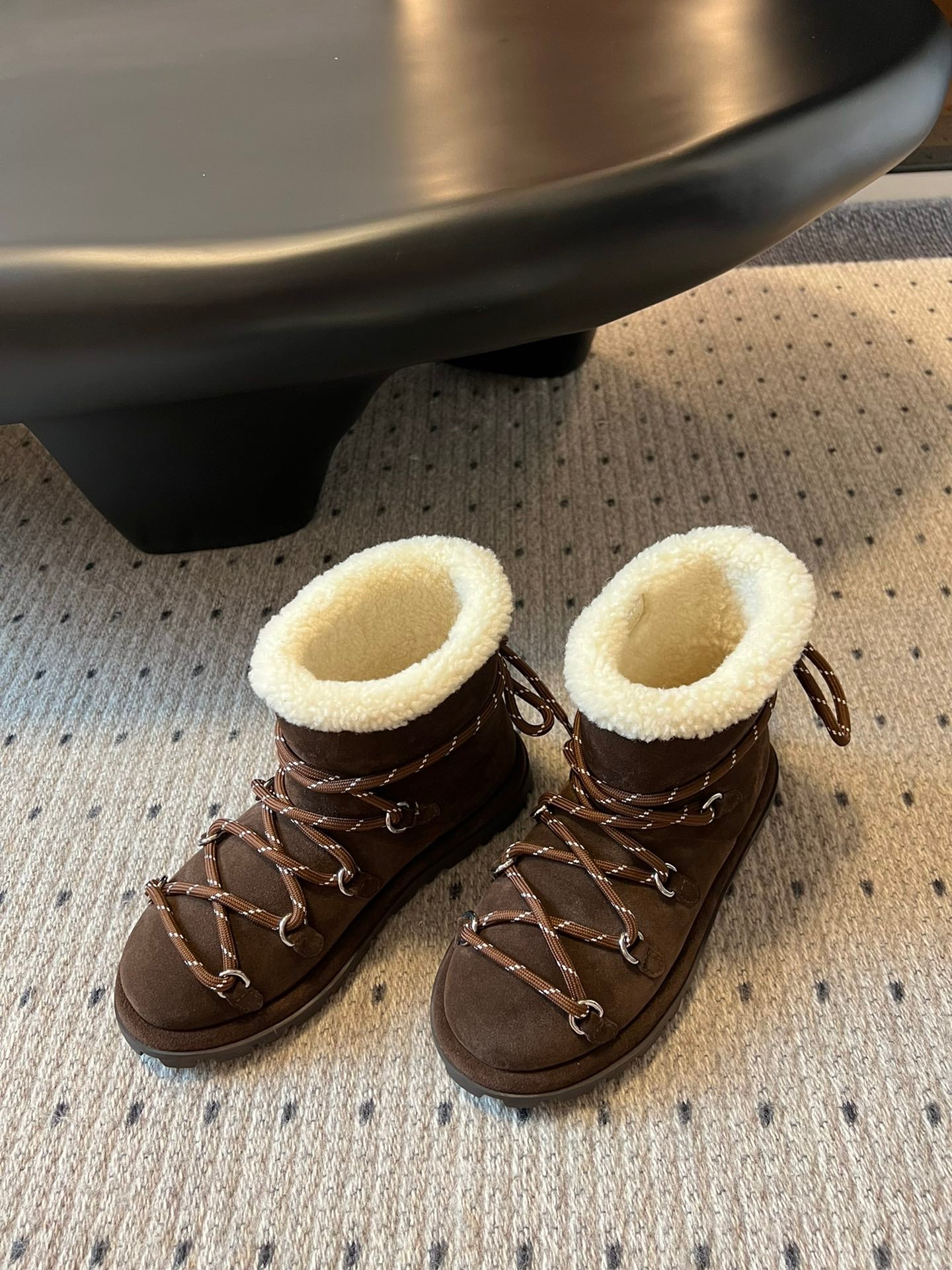 MIUMIU 26S LACE-UP ANKLE BOOTS IN DARK BROWN SUEDE AND WOOL