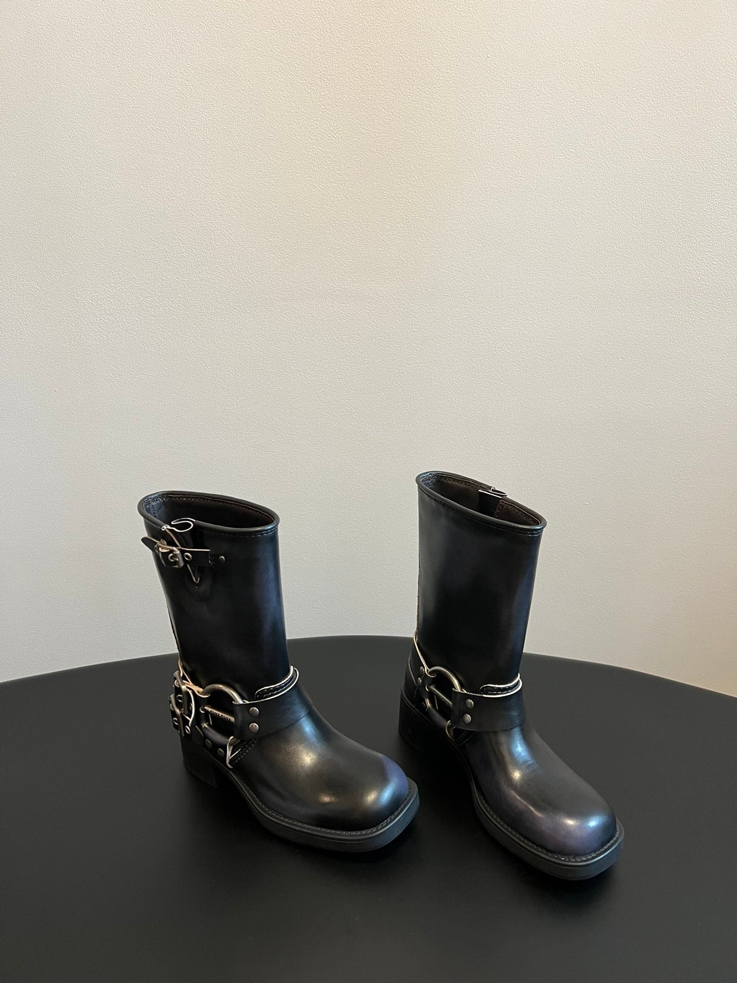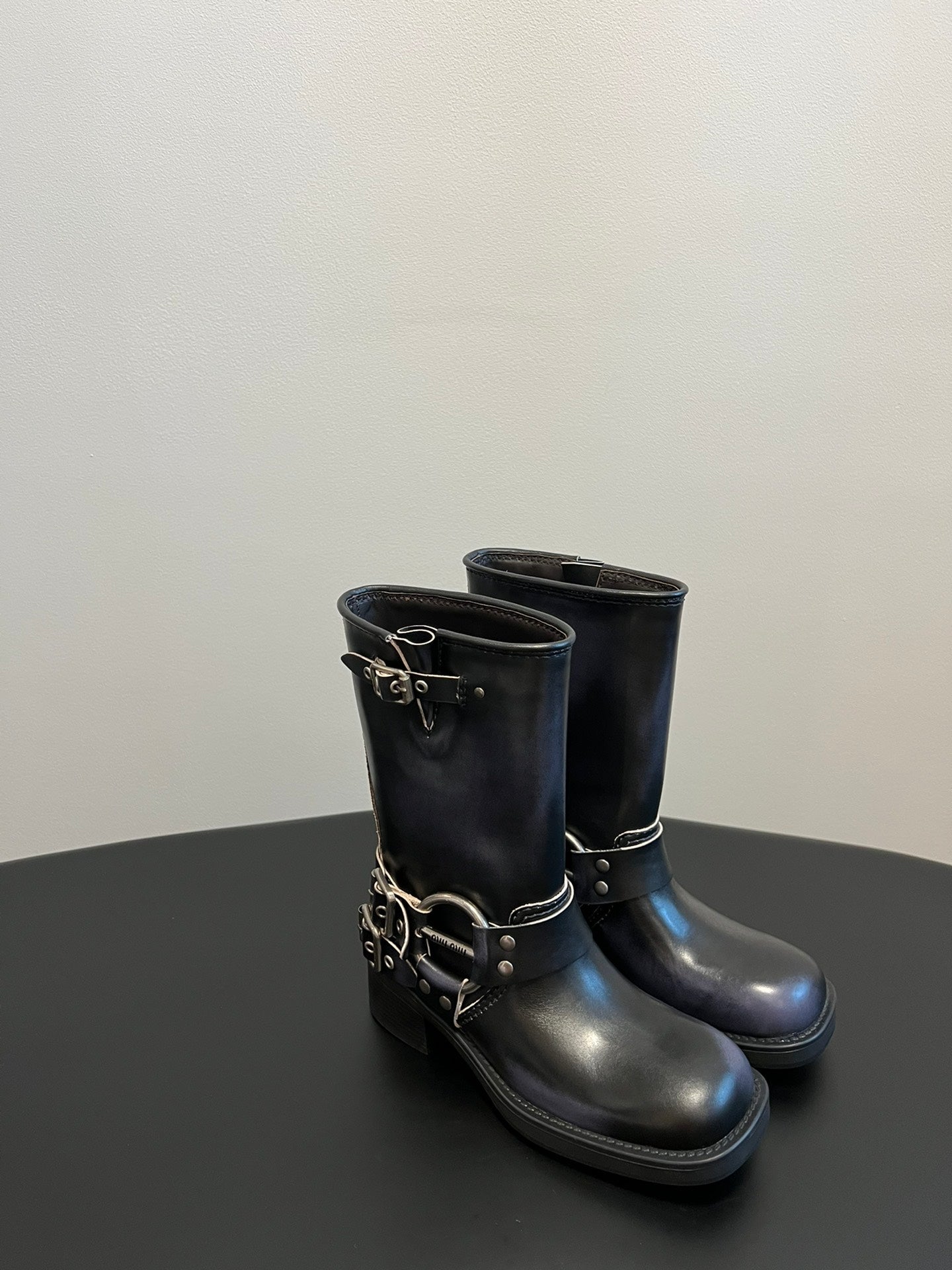 MIUMIU 26S MID-CALF BOOTS IN BLACK CALFSKIN SILVER HARDWARE