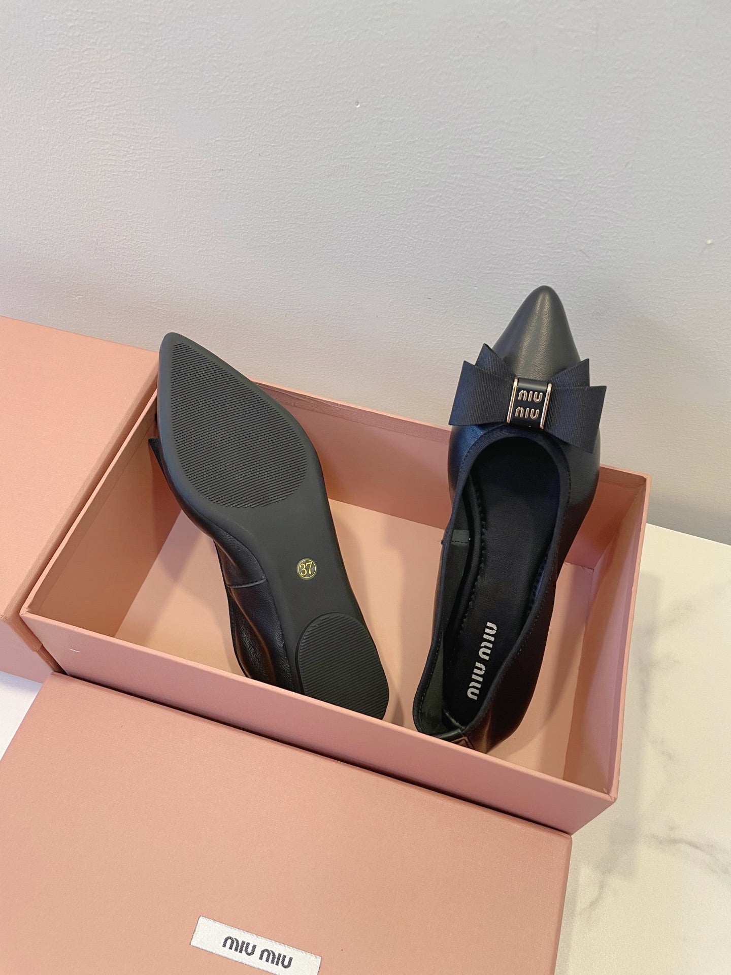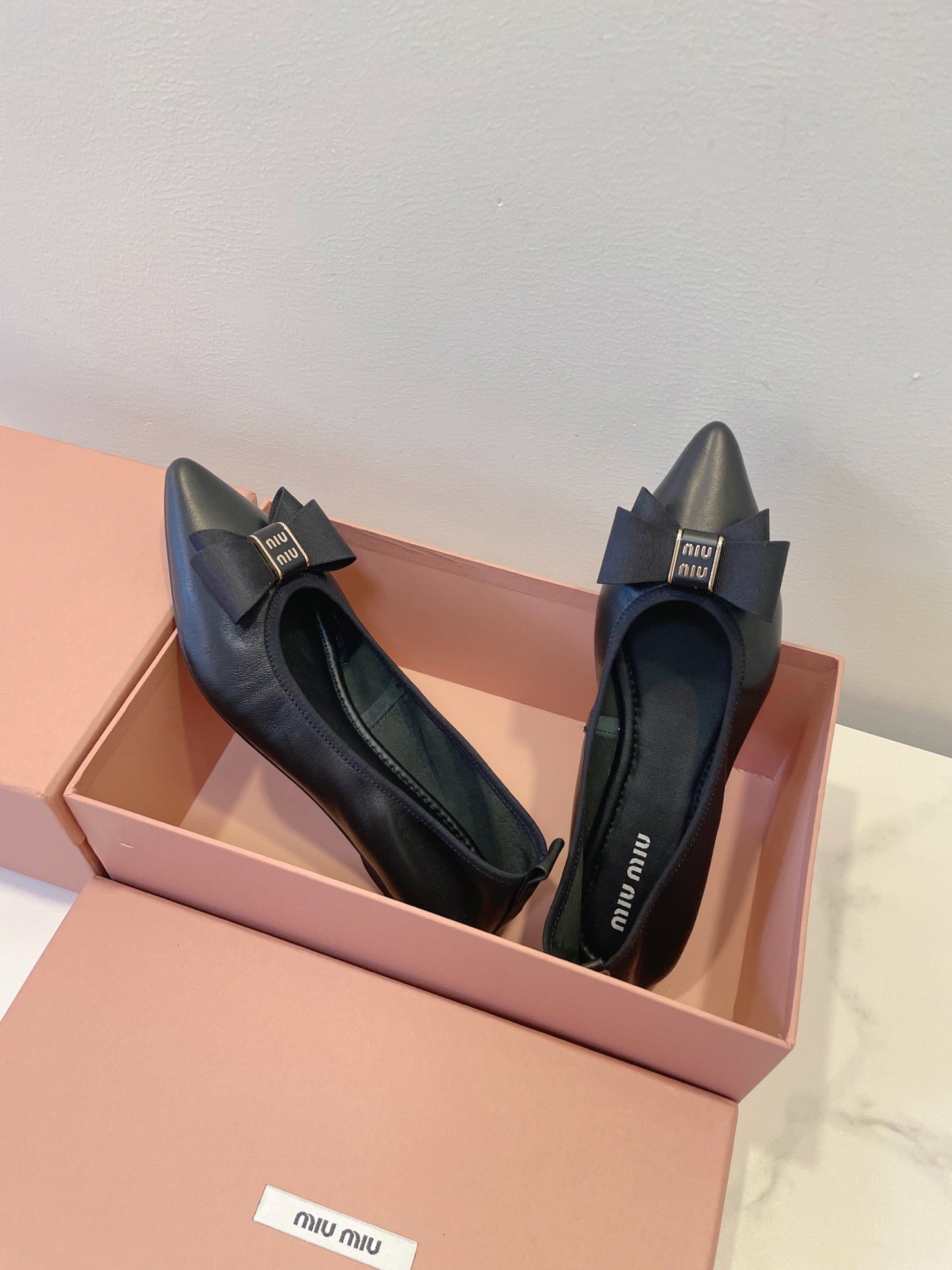 MIUMIU 26S BALLET FLATS IN BLACK CALFSKIN WITH BOW