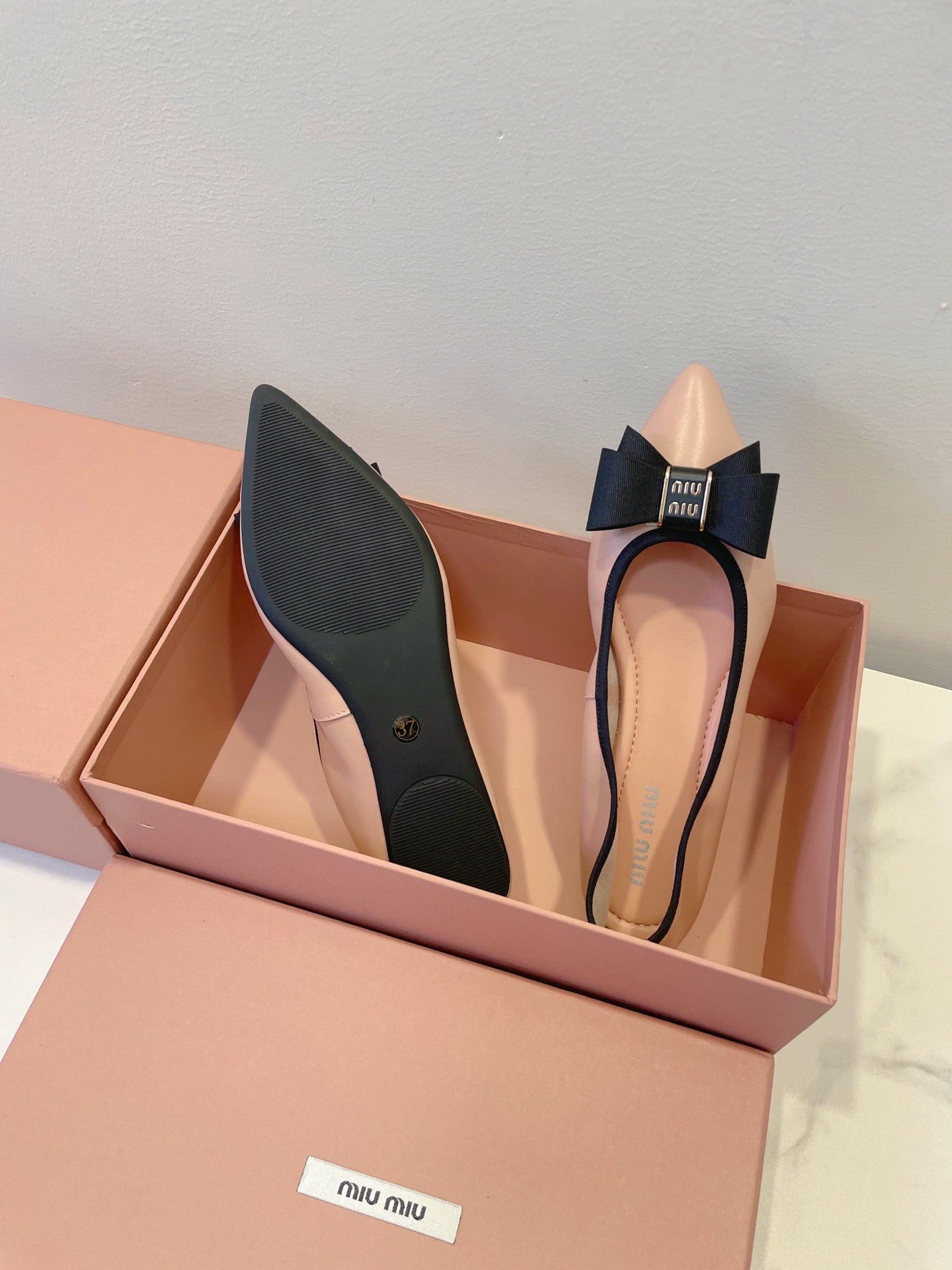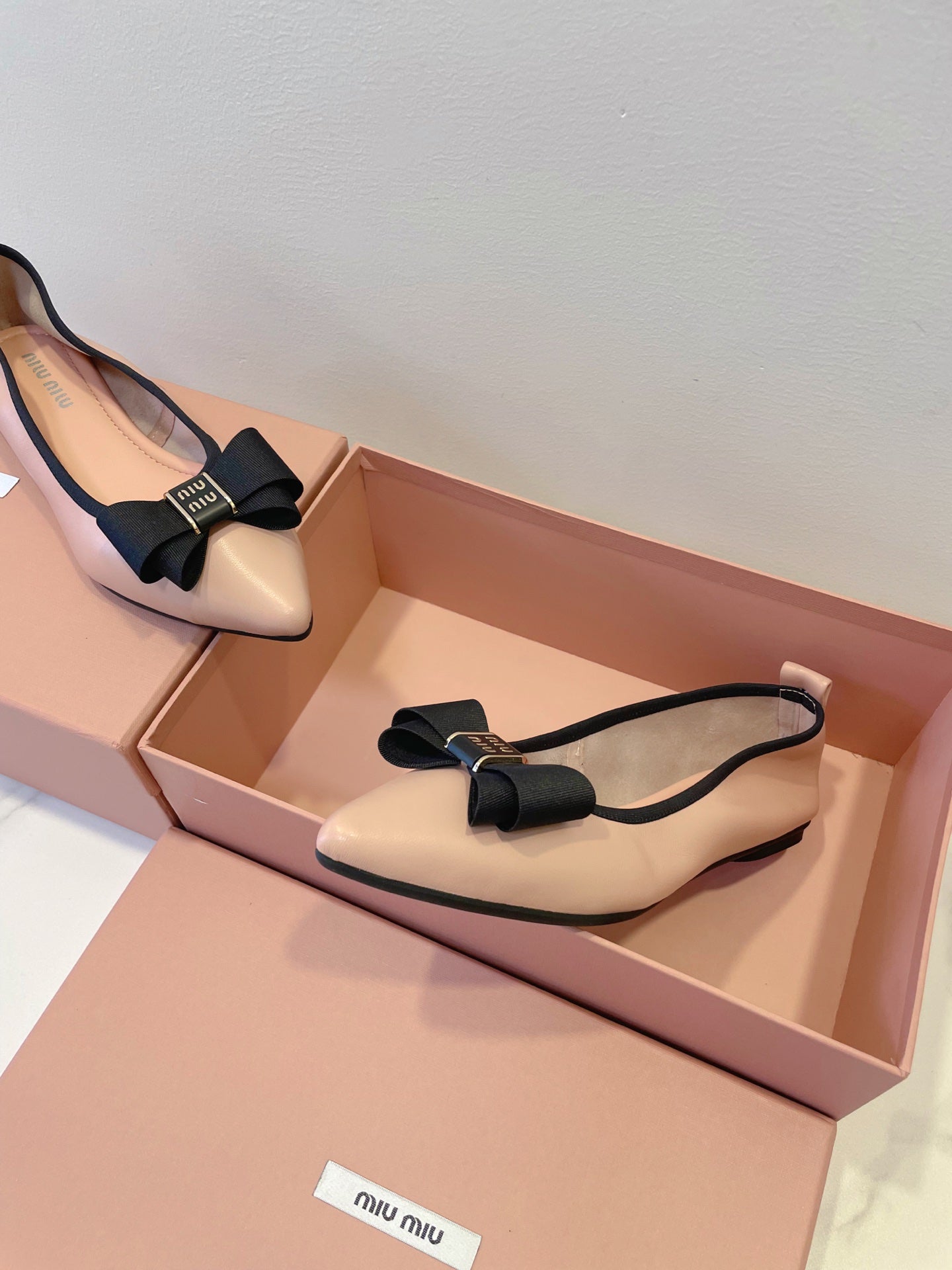 MIUMIU 26S BALLET FLATS IN LIGHT PINK CALFSKIN WITH BOW