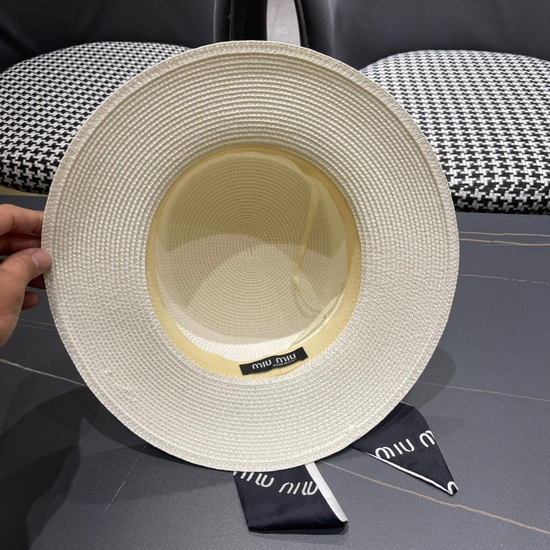 MM SMALL-BRIM STRAW HAT IN CREAM WHITE AND PEARL EMBELLISHED