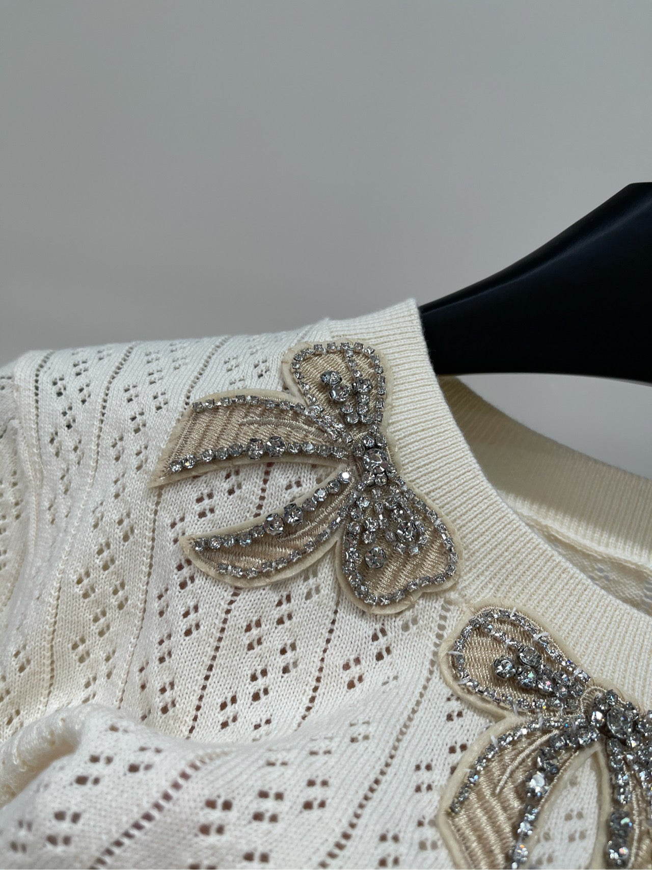 VALENTINO SHORT SLEEVE TOP WITH SEQUIN BOW 273160