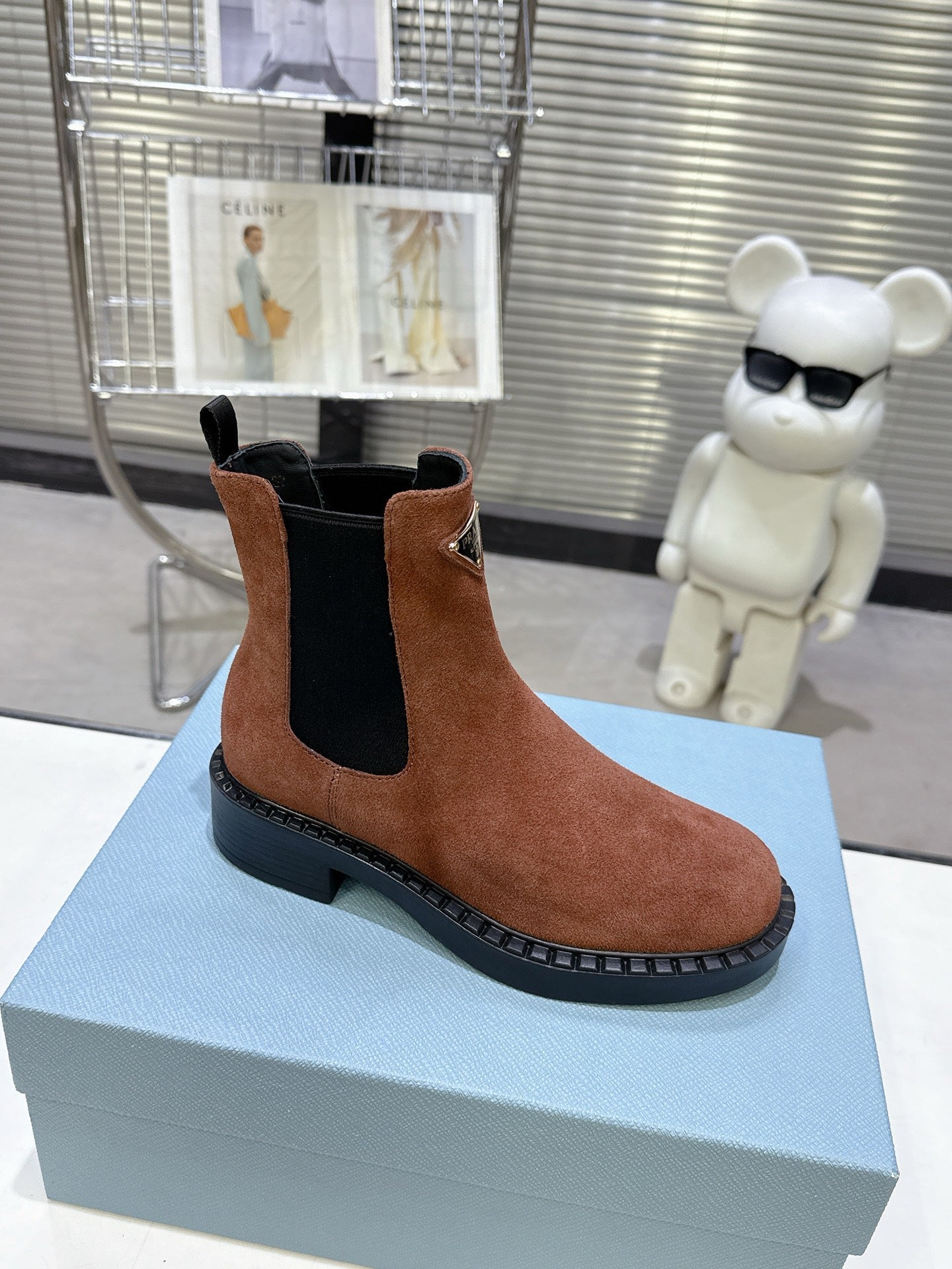 PRADA 25S RETRO PLATFORM MARTIN BOOTS IN BROWN SUEDE
