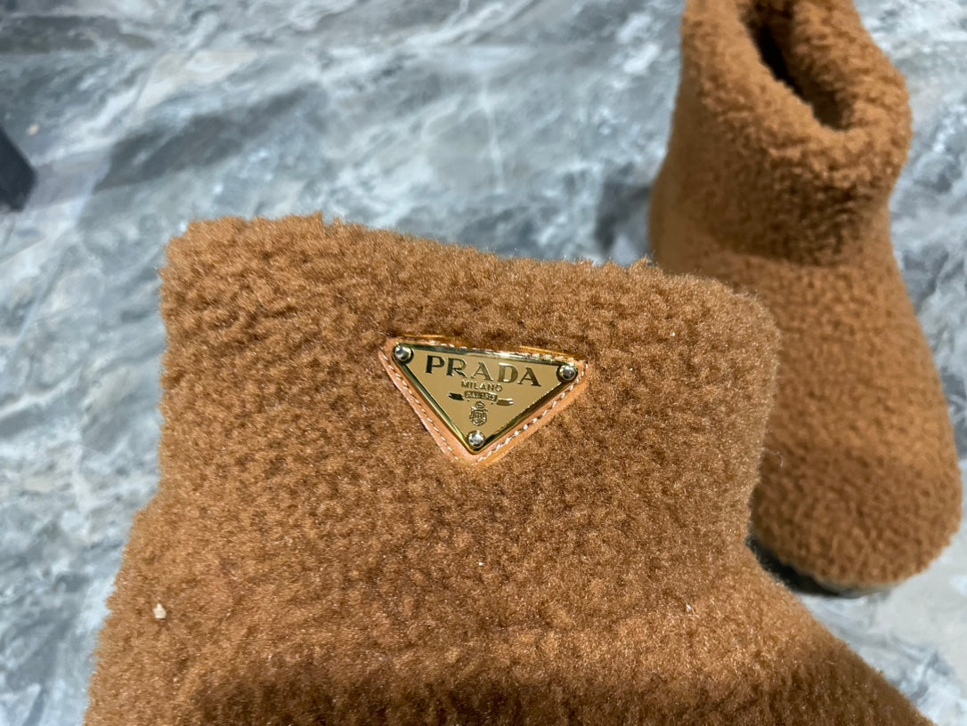 PRADA 26S ANKLE BOOTS IN CARAMEL BROWN FUR