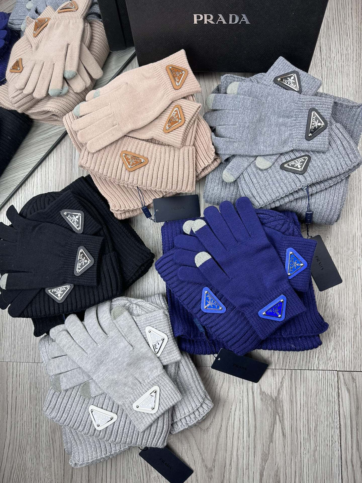THREE-PIECES SET IN BLACK WOOL AND ACRYLIC 406558