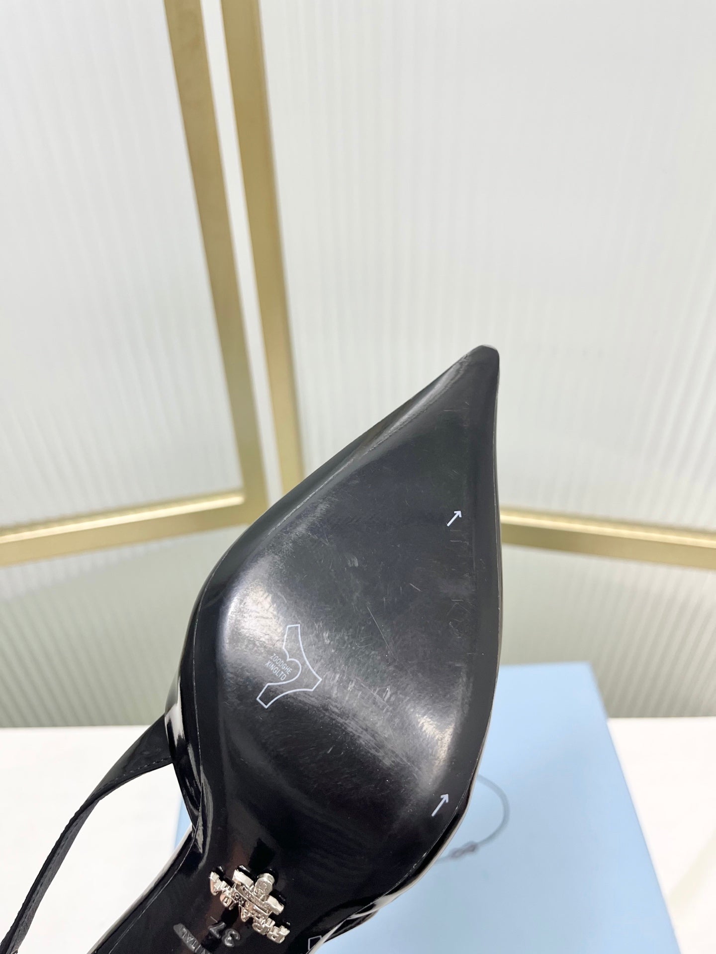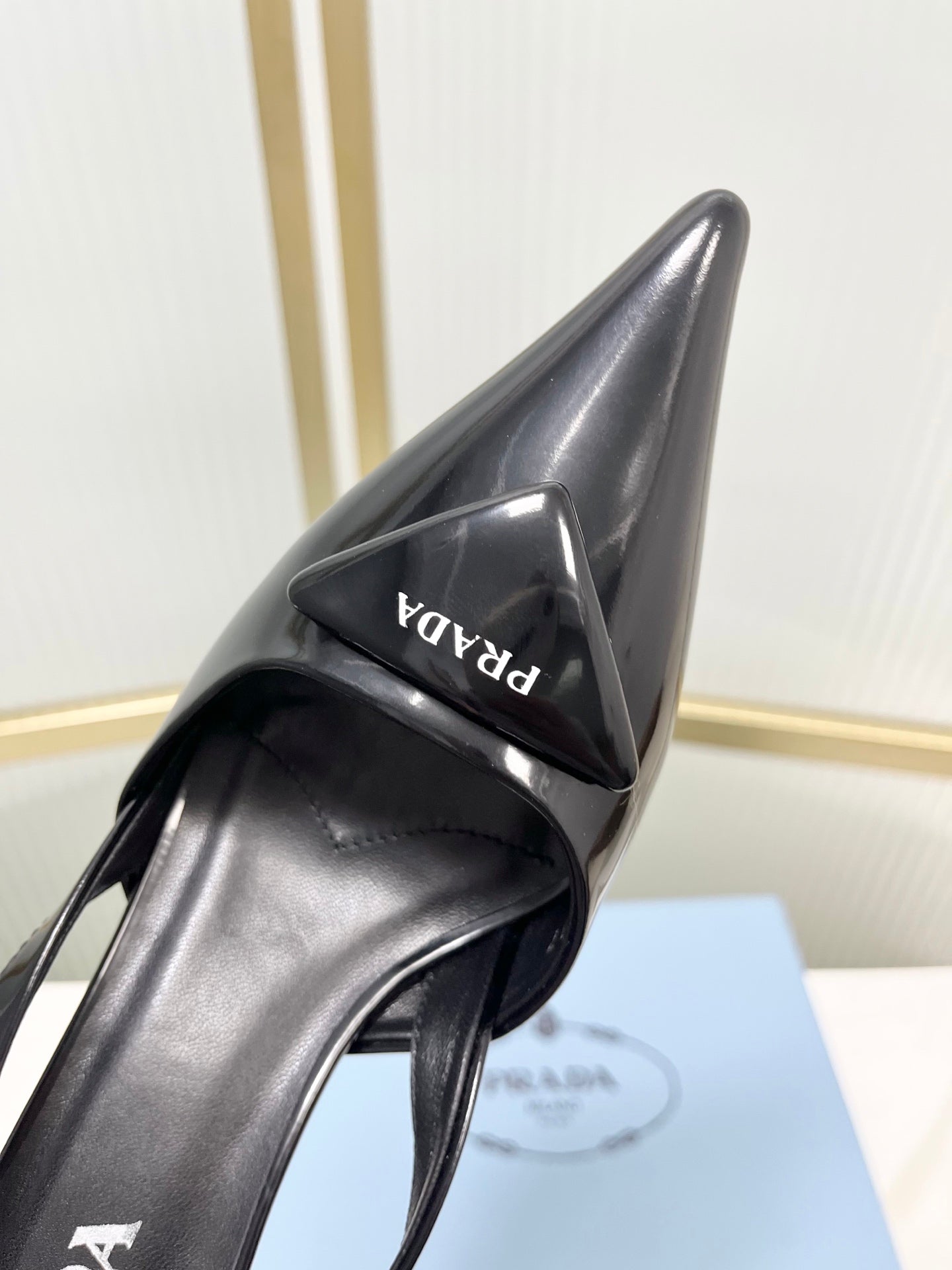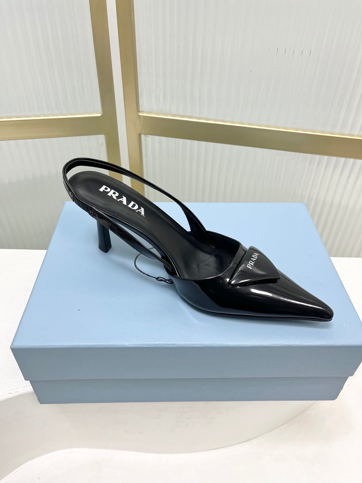 PRADA 26S SLINGBACK HIGH HEEL SANDALS 75MM IN BLACK CALFSKIN WITH LOGO