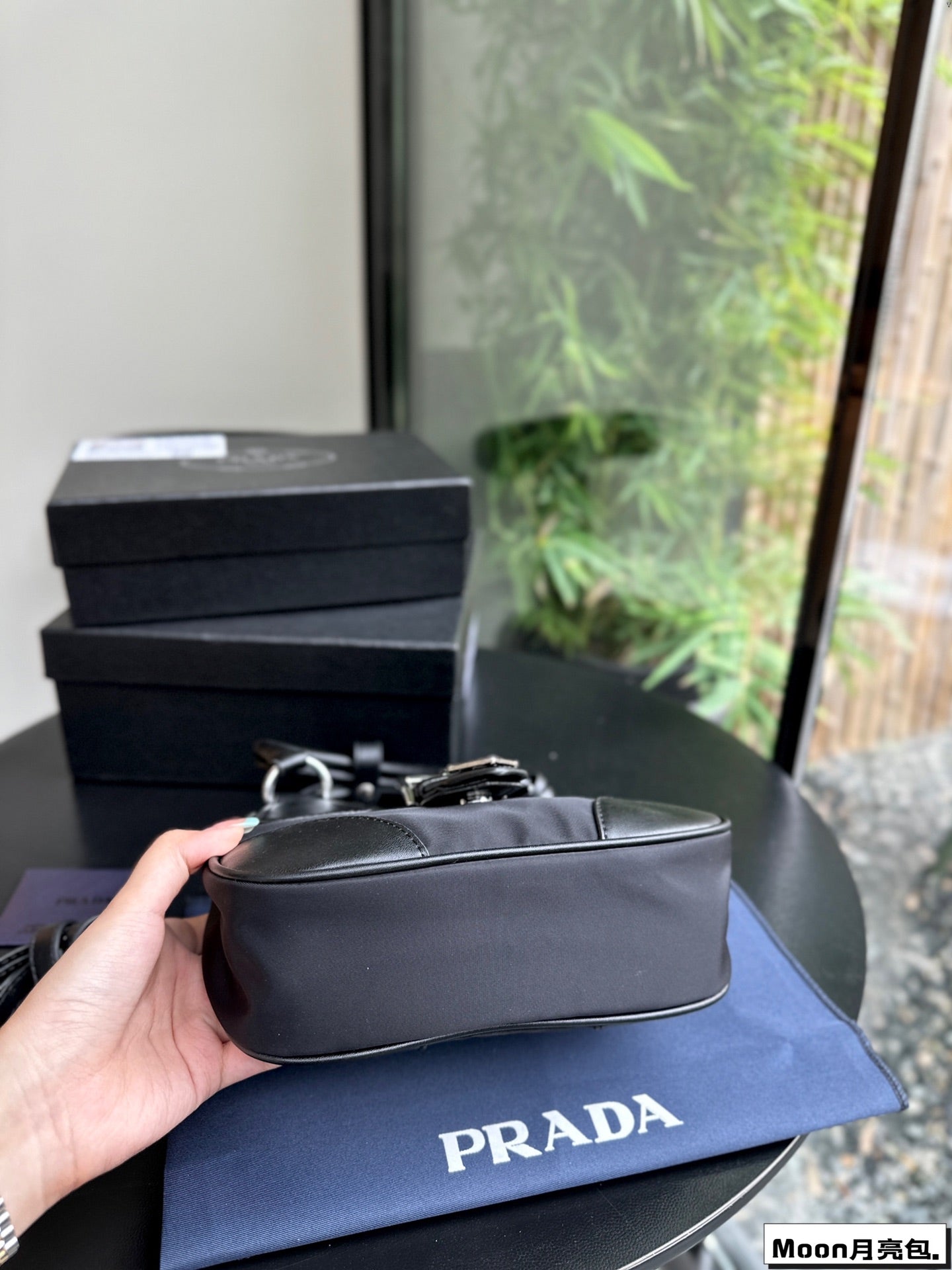 PRA 22 MOON PADDED BAG IN BLACK CALFSKIN WITH STRAP