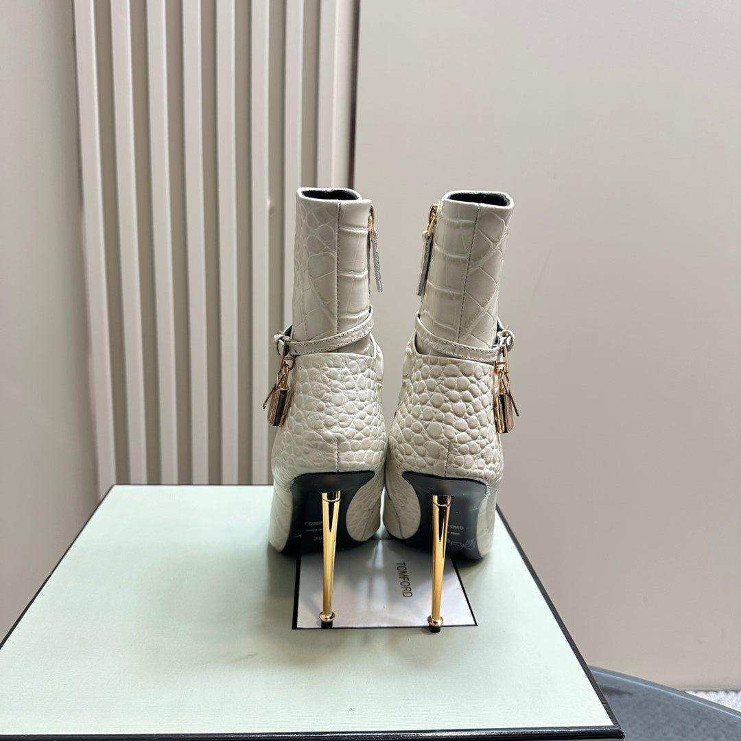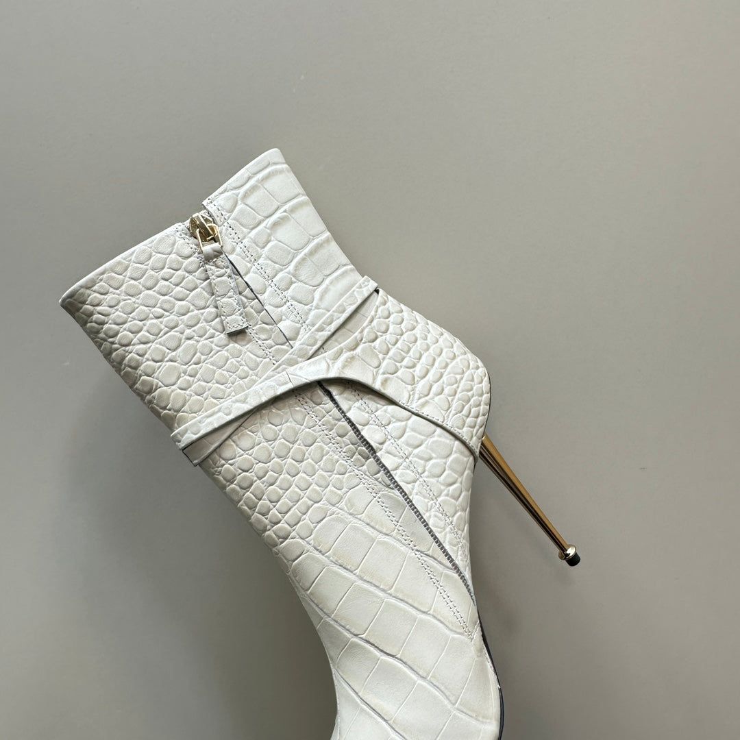 PADLOCK 10 CM ANKLE BOOTS IN WHITE CROCODILE-EMBOSSED CALFSKIN