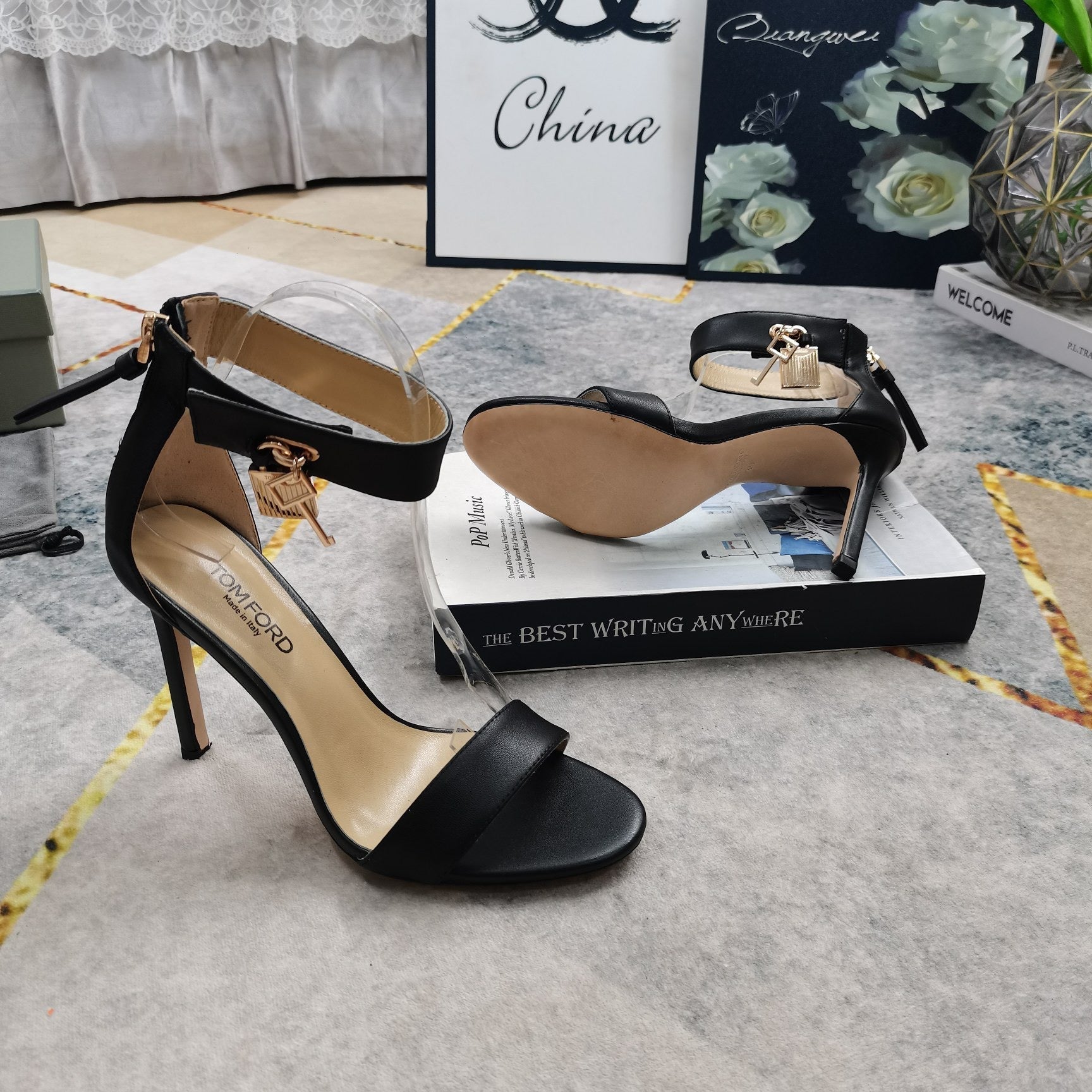 TOM FORD PADLOCK HIGH HEELS IN BLACK CALFSKIN