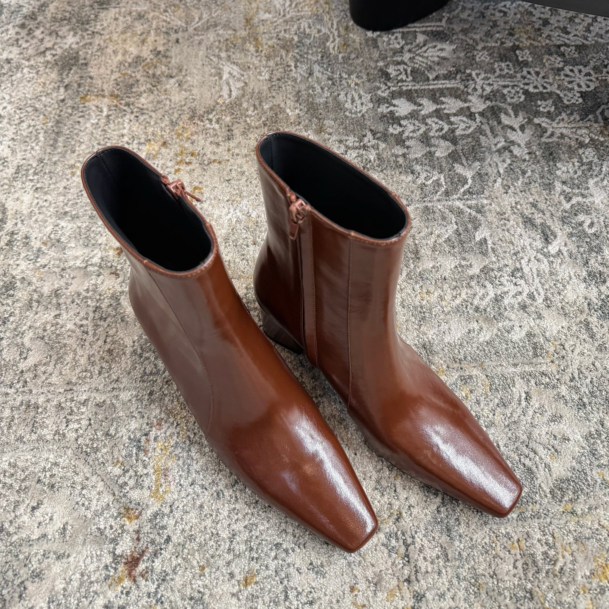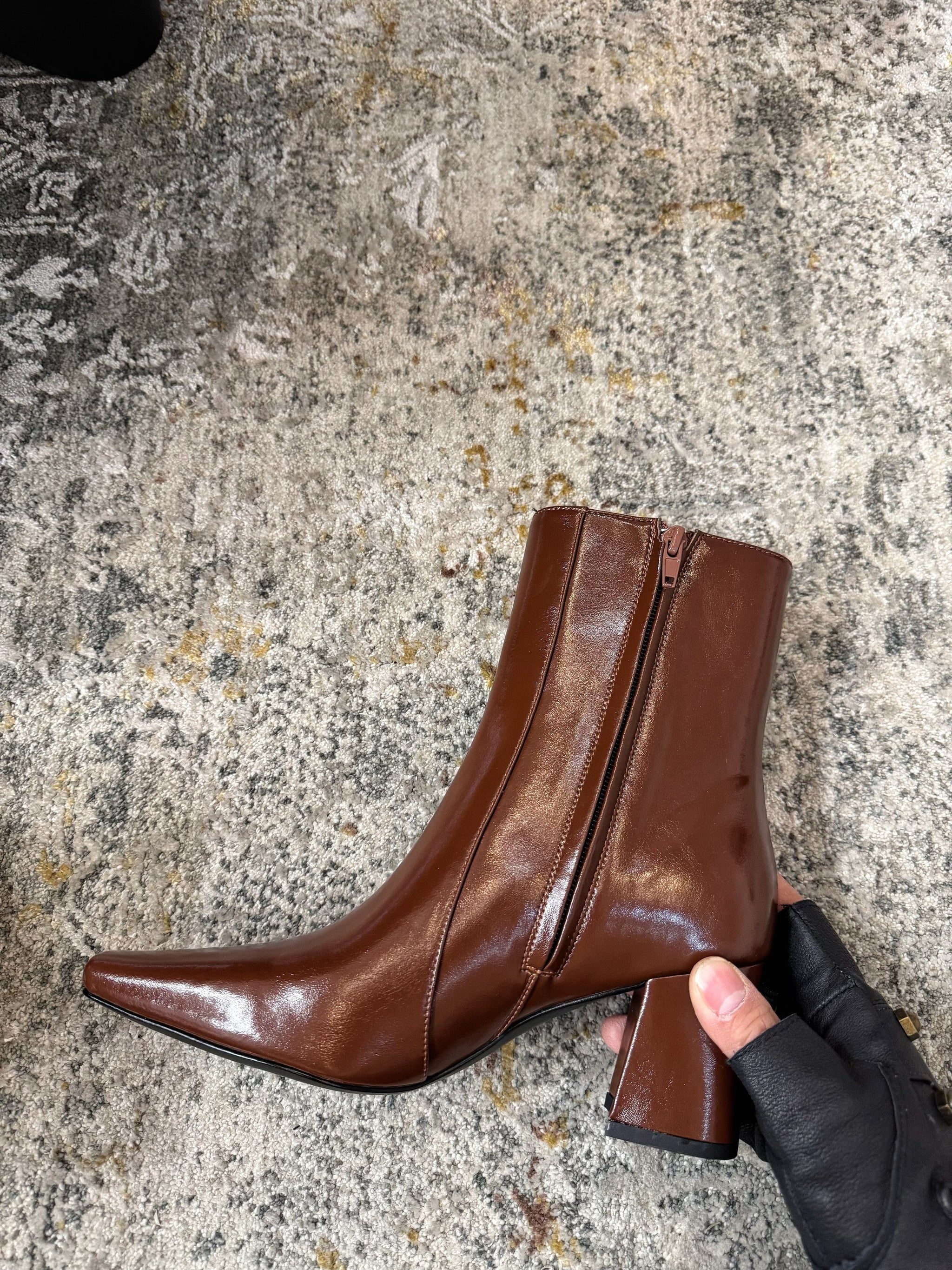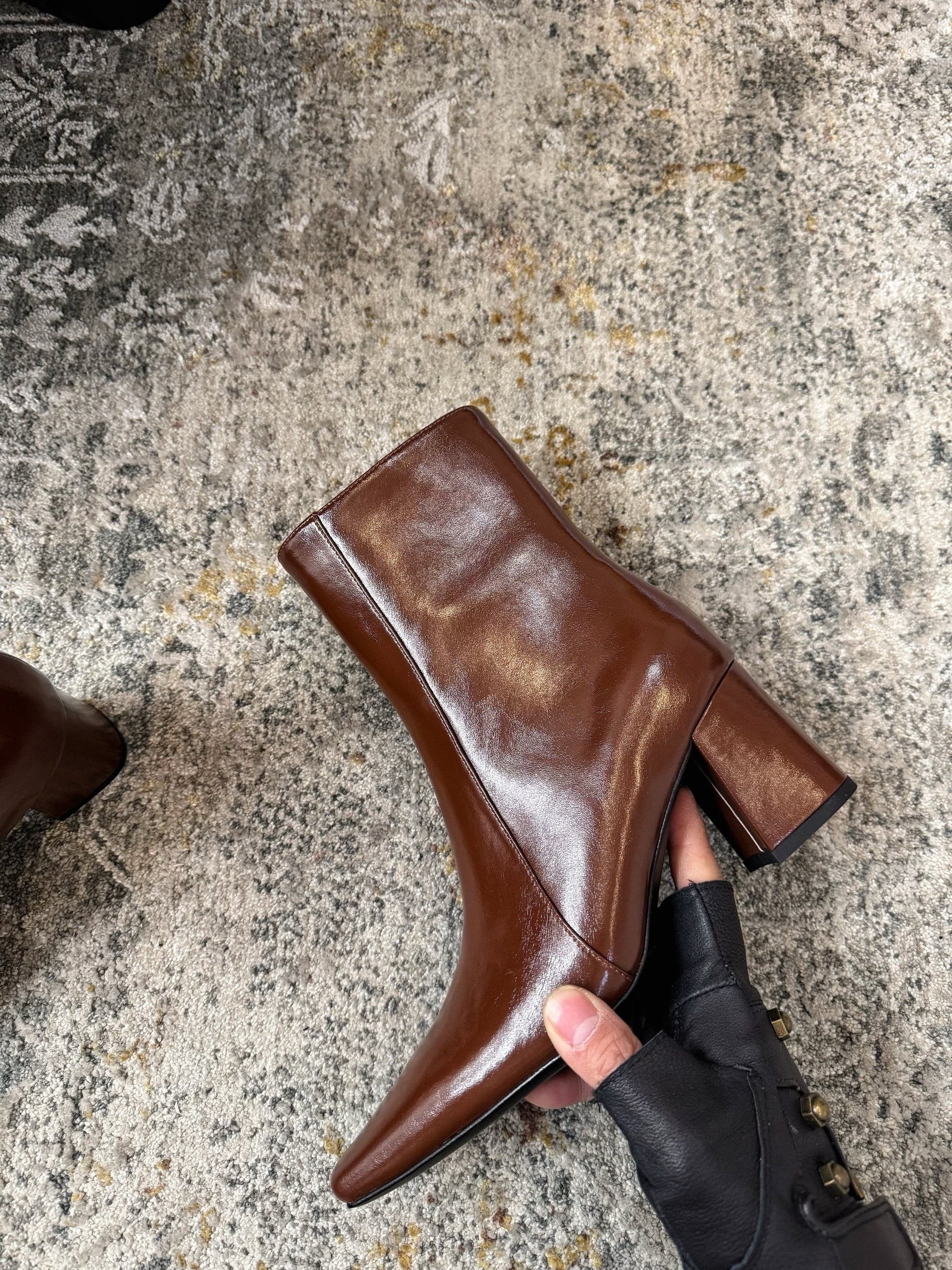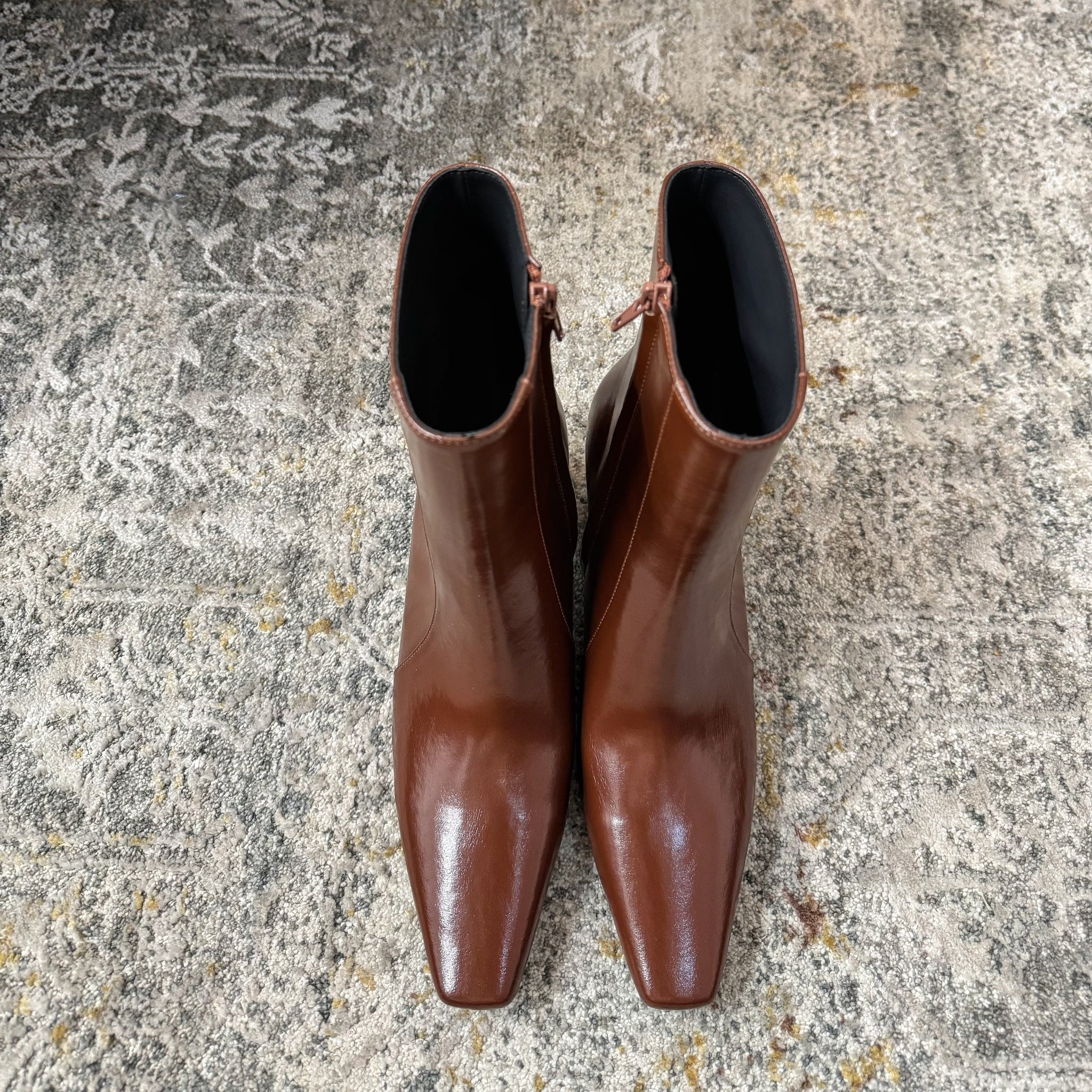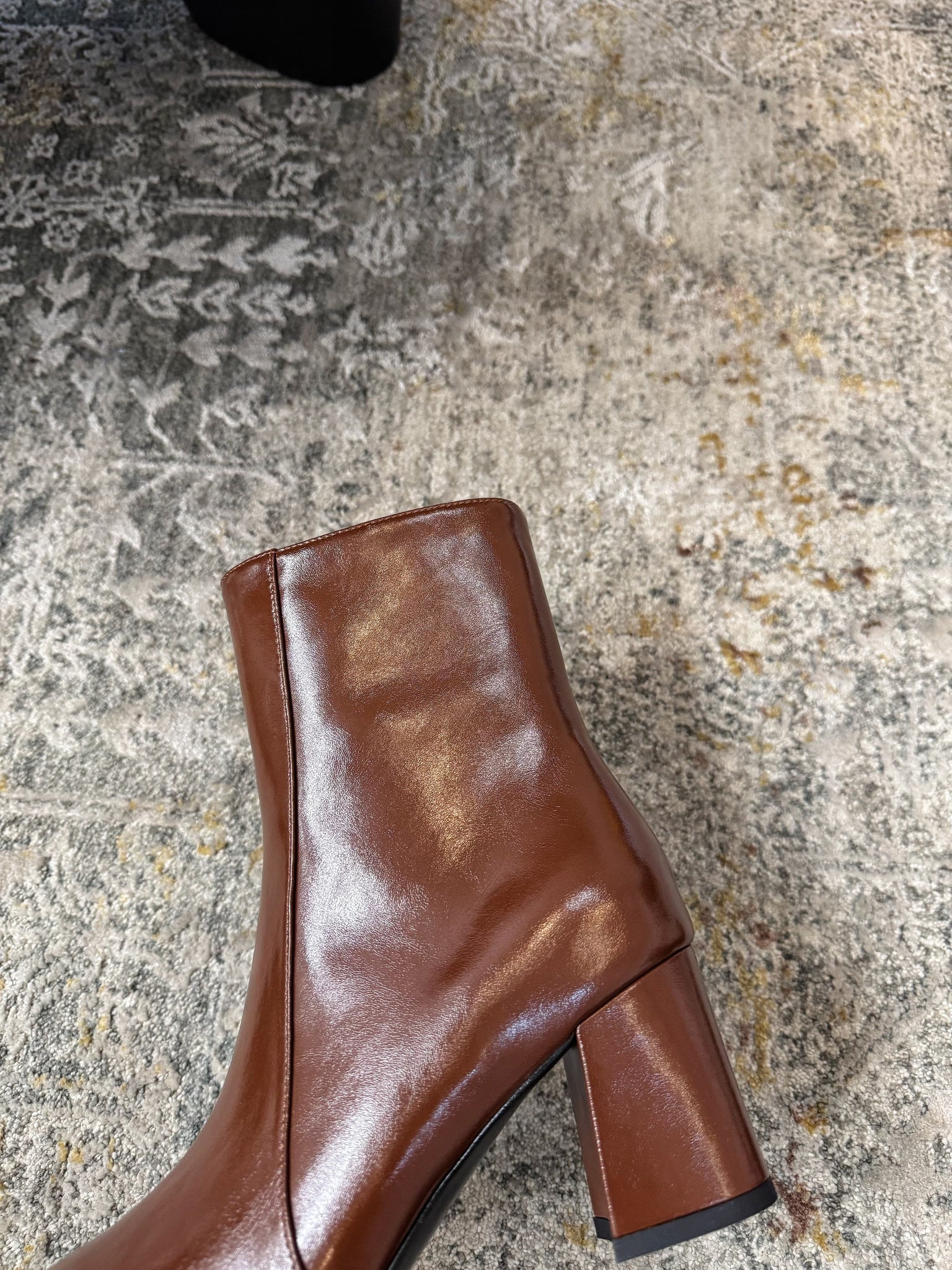 YSL 26S ANKLE BOOTS 70 MM IN BROWN SHINY CALFSKIN