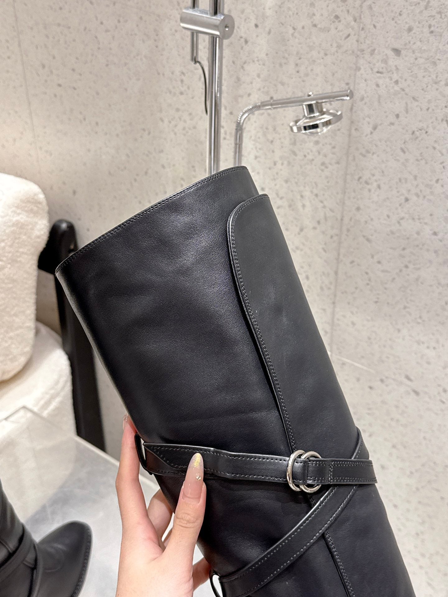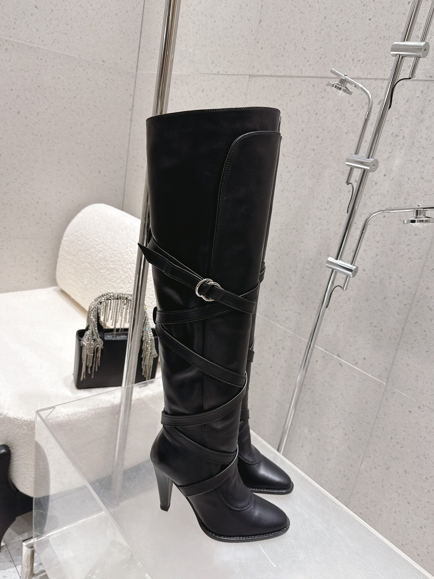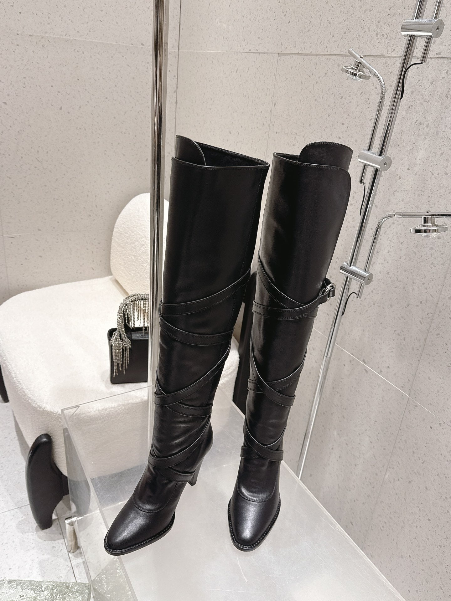 YSL 26S JANIS KNEE-HIGH BOOTS 90 MM IN BLACK SUEDE