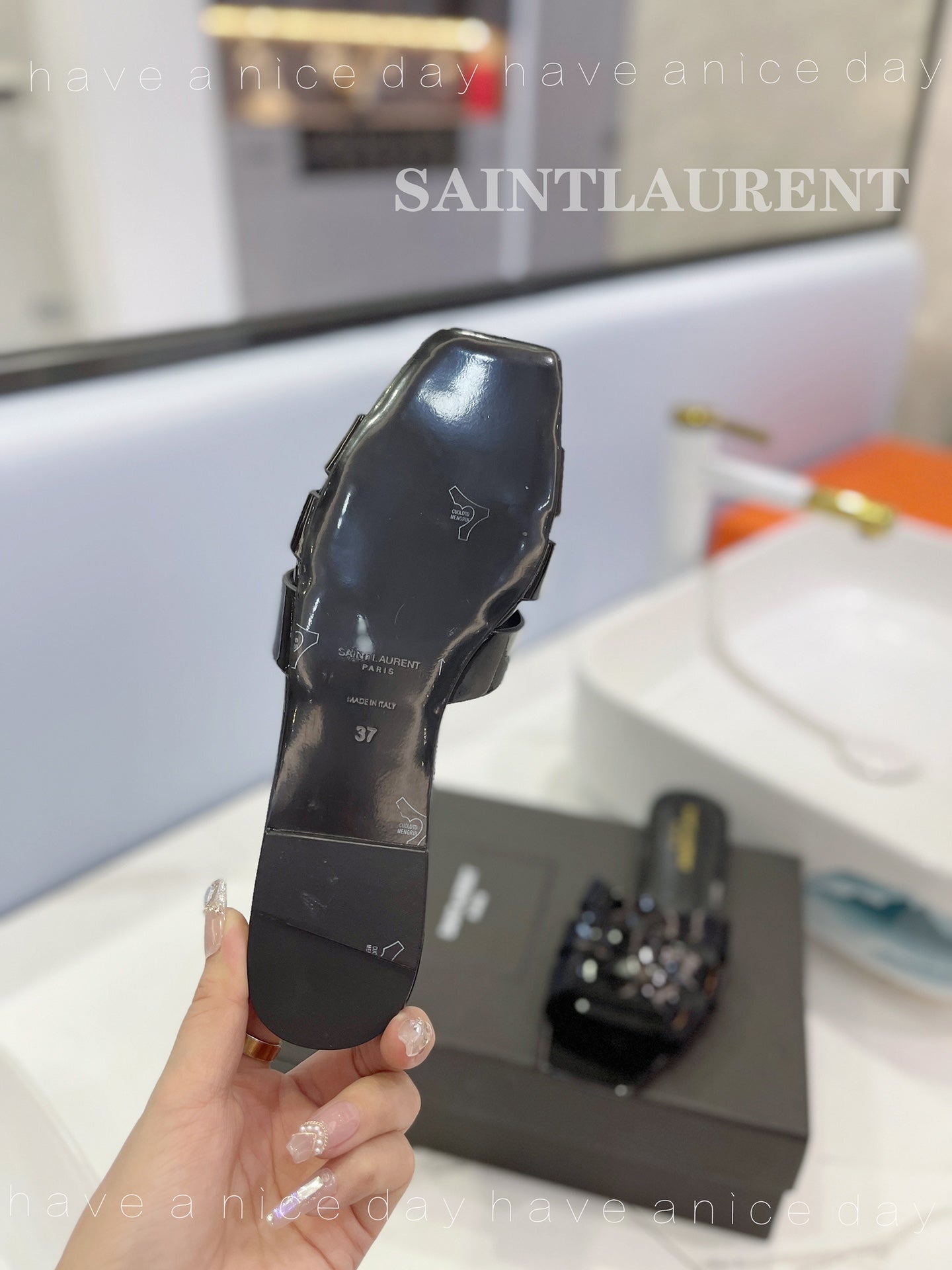 SL TRIBUTE SLIPPERS GLOSSY BLACK CALFSKIN