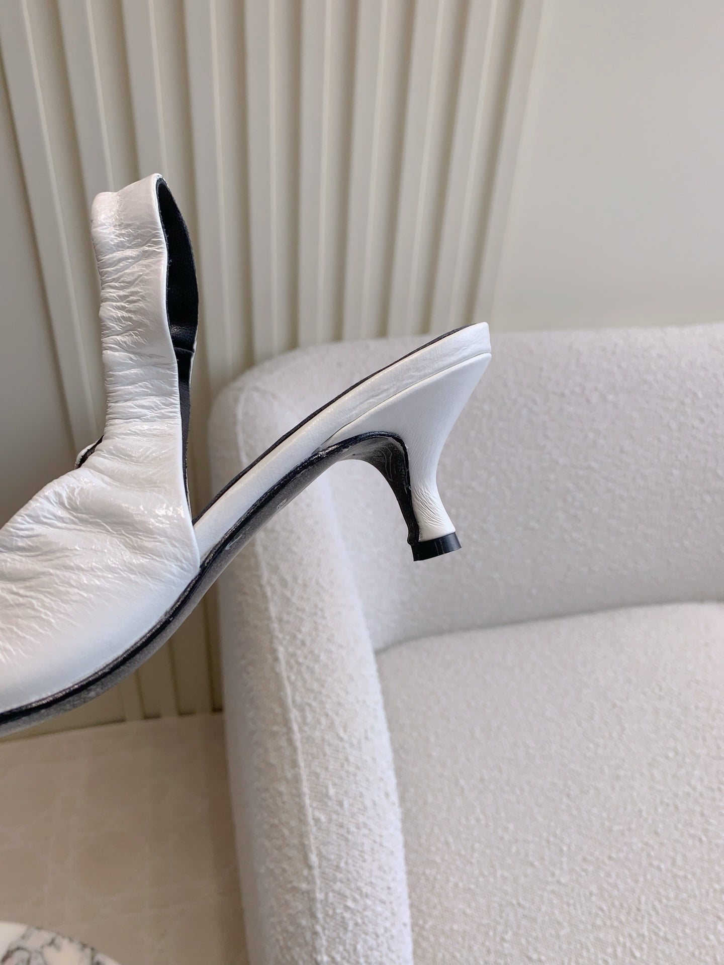 BALENCIAGA 25S HIGH SLINGBACK 35 MM IN WHITE LAMBSKIN WITH GOLD HARDWARE