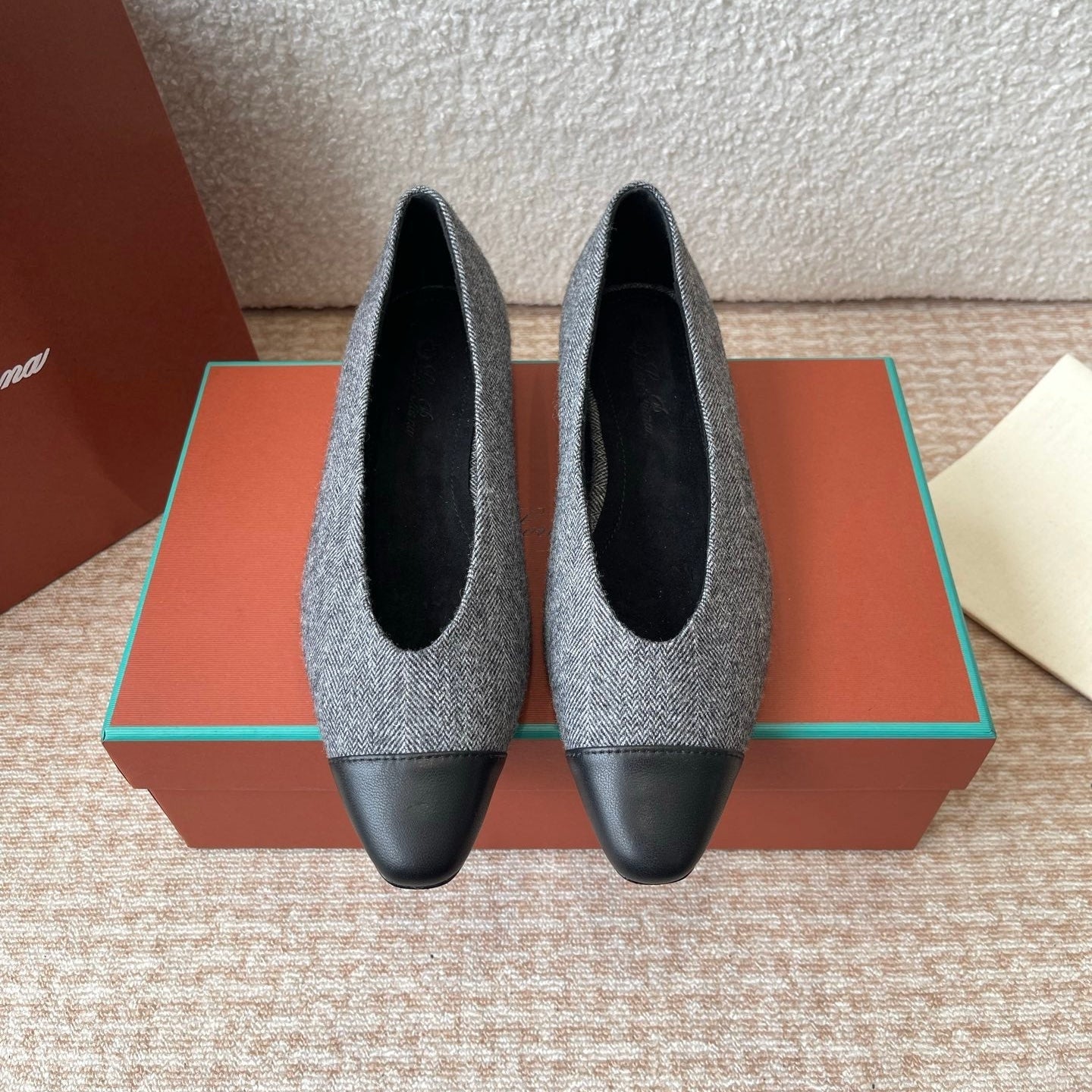 BALLET IN GREY TWEED MIX BLACK LAMBSKIN