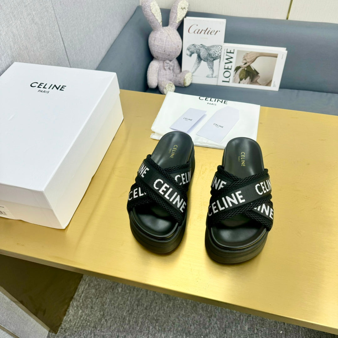 BLOCK SLIDE CROSS-STRAP IN BLACK MESH NYLON AND TEXT WITH JACQUARD