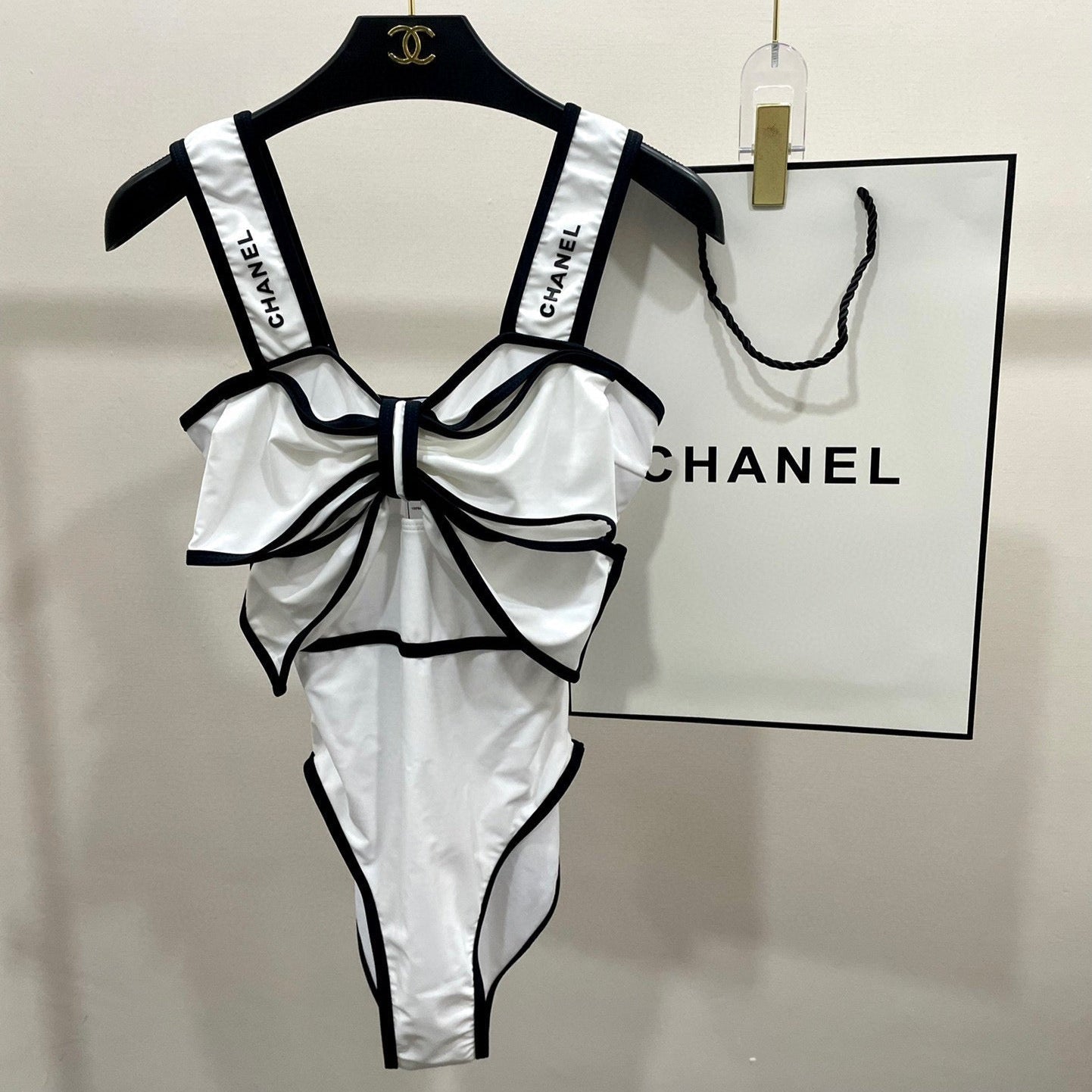 BODYSUIT SWIMSUIT IN WHITE AND BLACK TRIM 627828