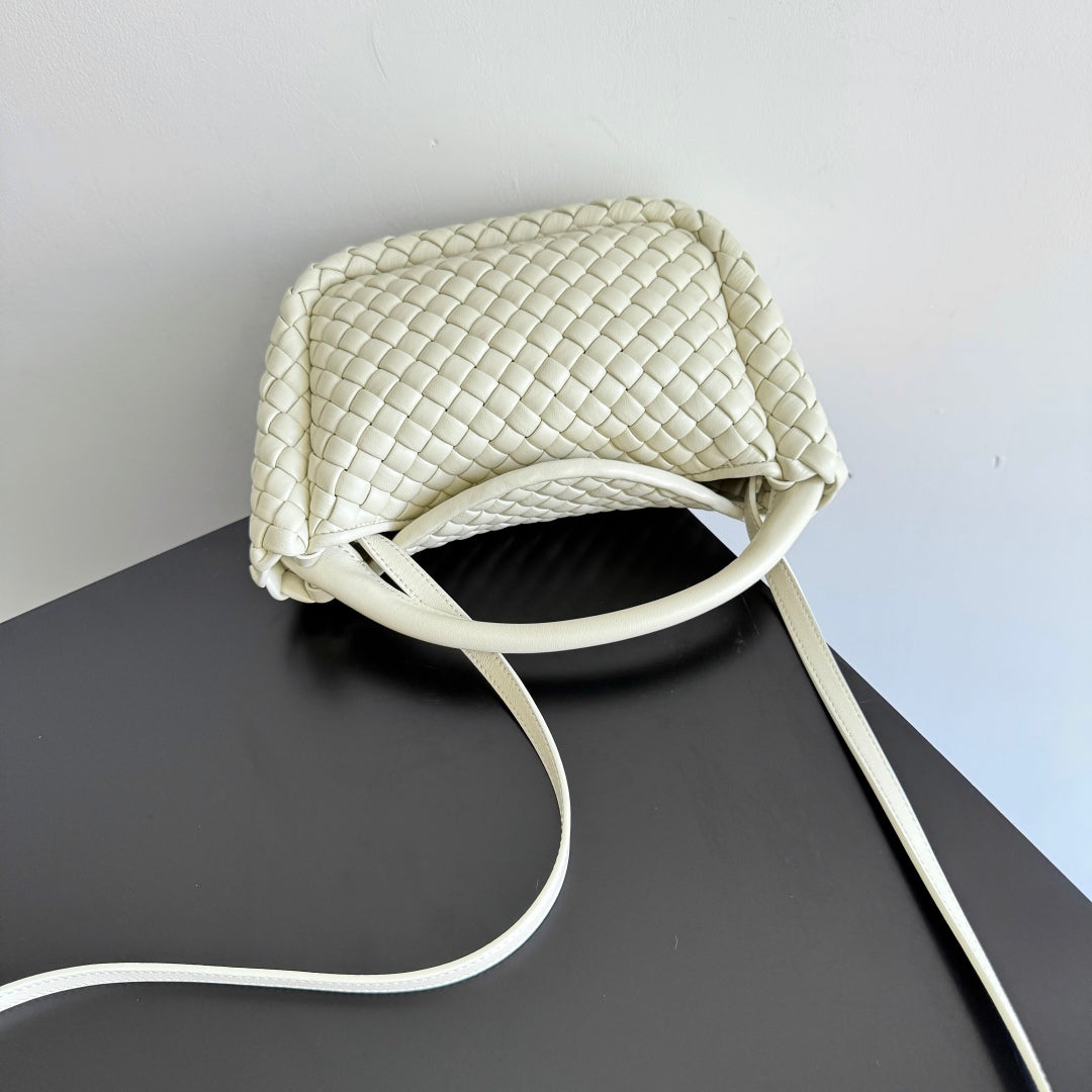 BOTTEGA VENETA 25S COBBLE TOP HANDLE BAG 23 IN IVORY CALFSKIN