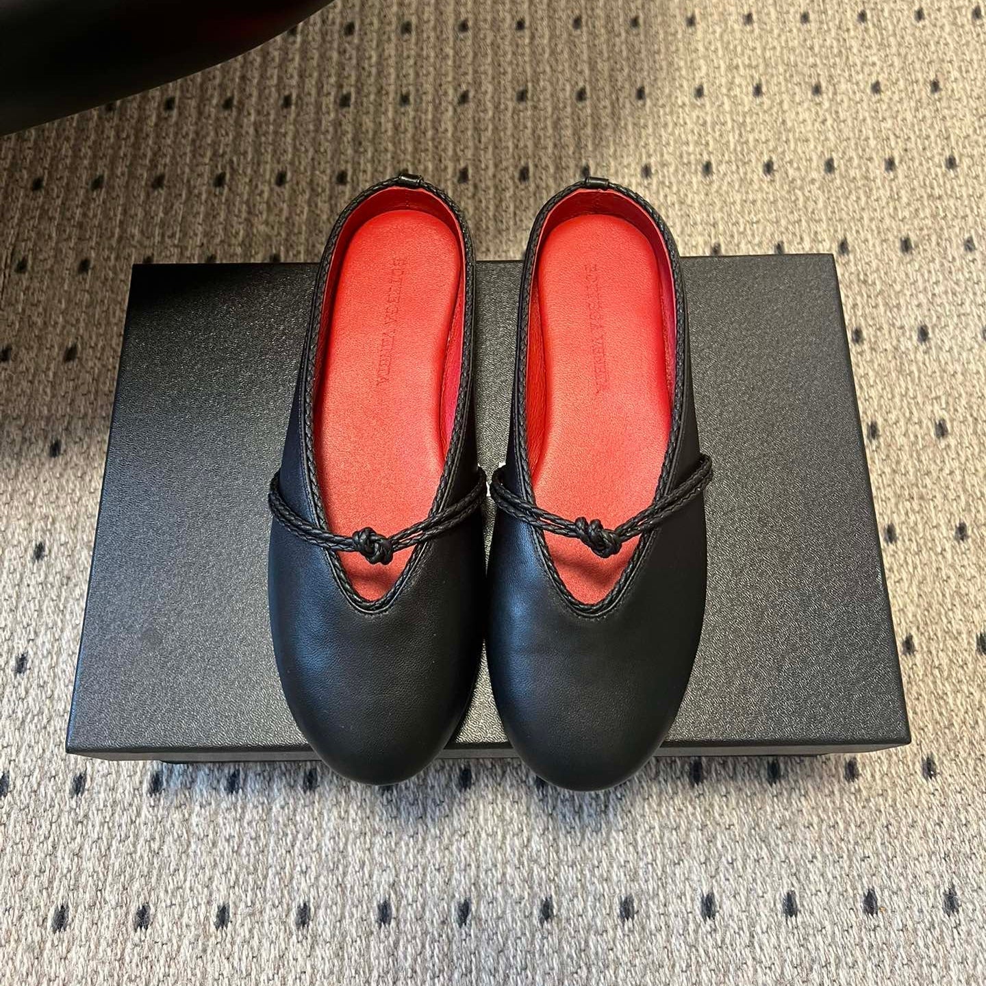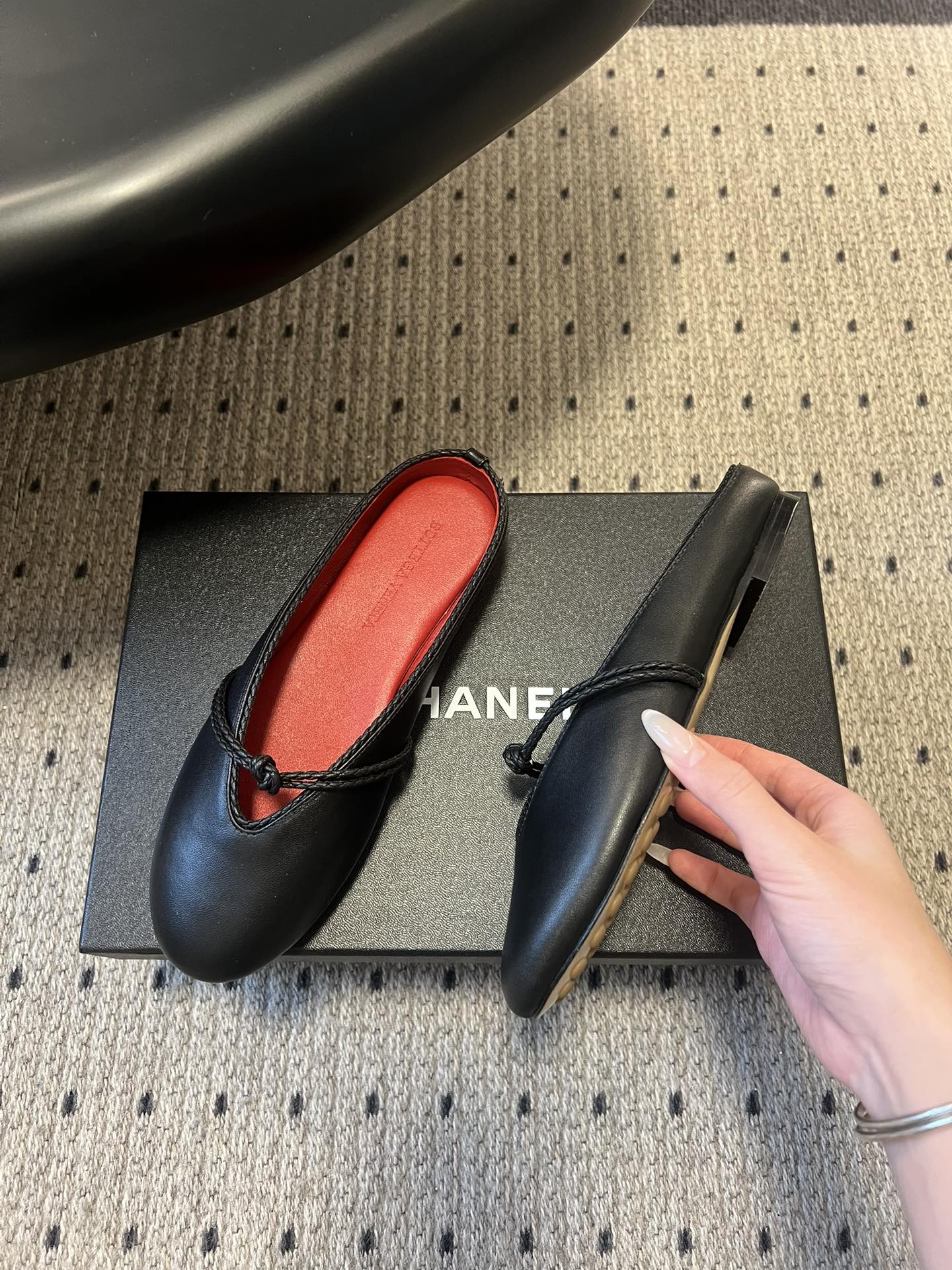 BOTTEGA VENETA 26S FLAT MULES IN BLACK LAMBSKIN