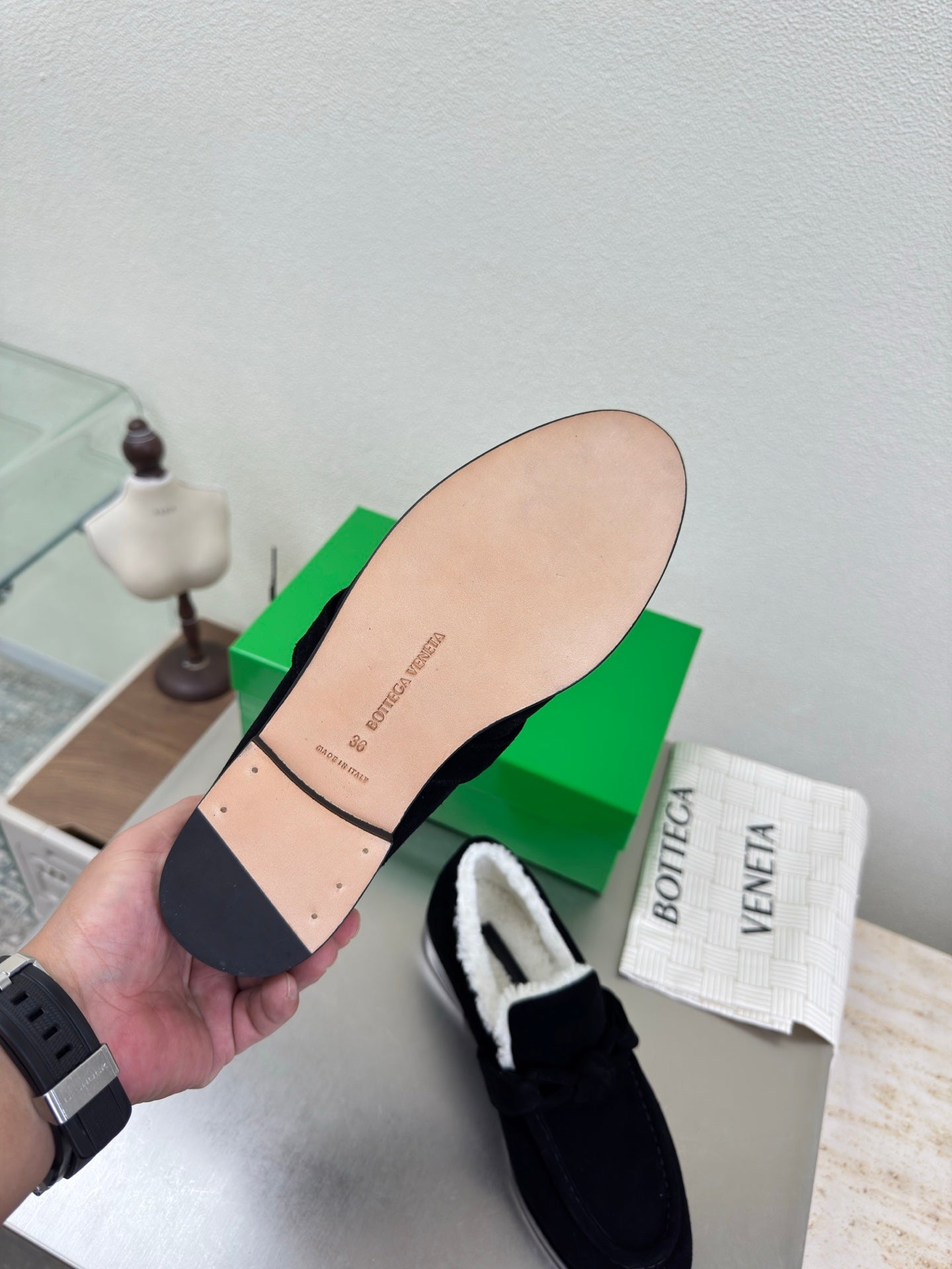 BOTTEGA VENETA 26S LOAFERS IN BLACK SUEDE AND WHITE WOOL