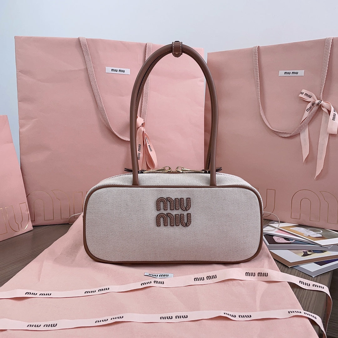 BOWLING BAG 28 IN WHITE CANVAS AND BROWN CALFSKIN TRIM