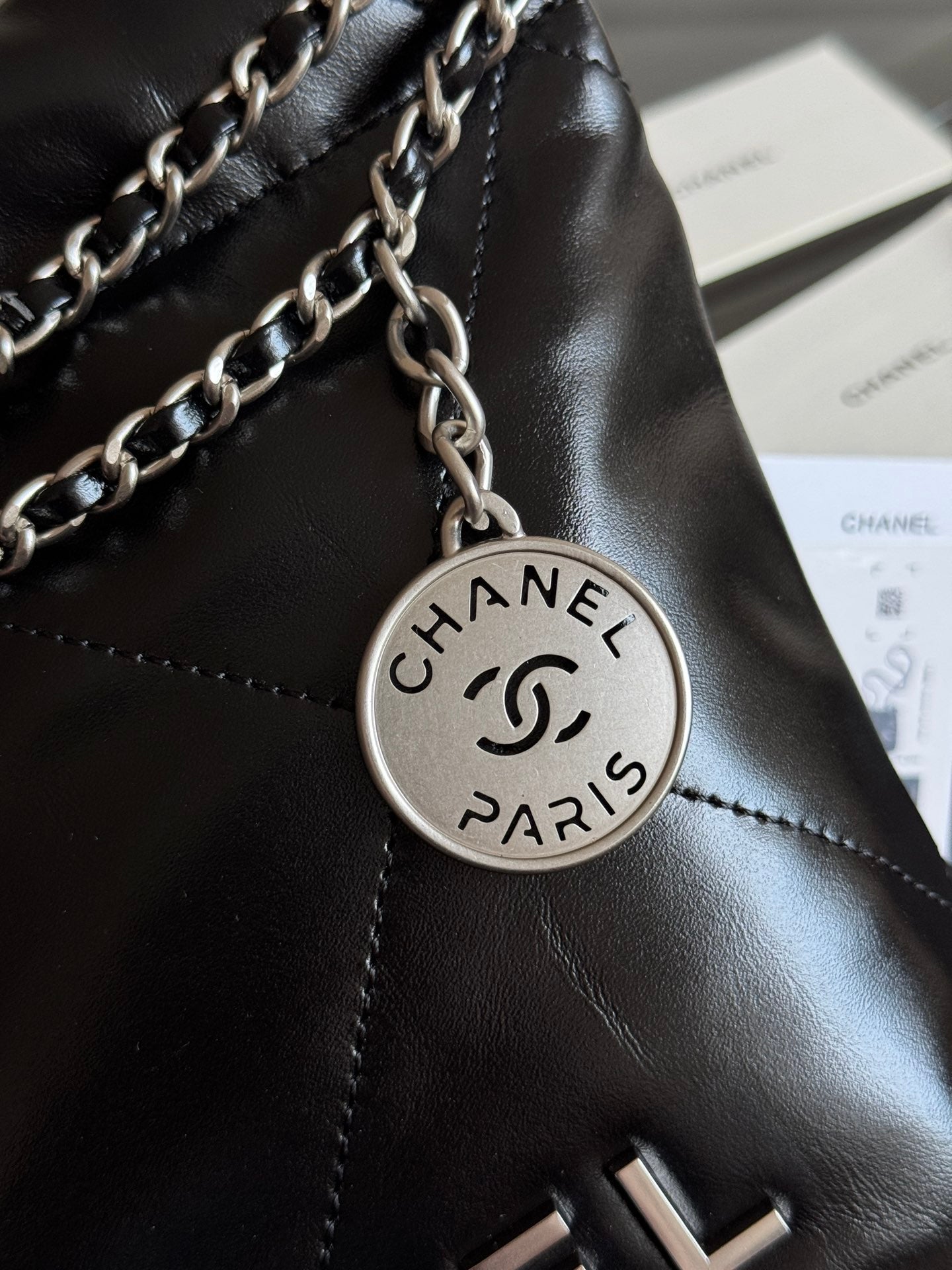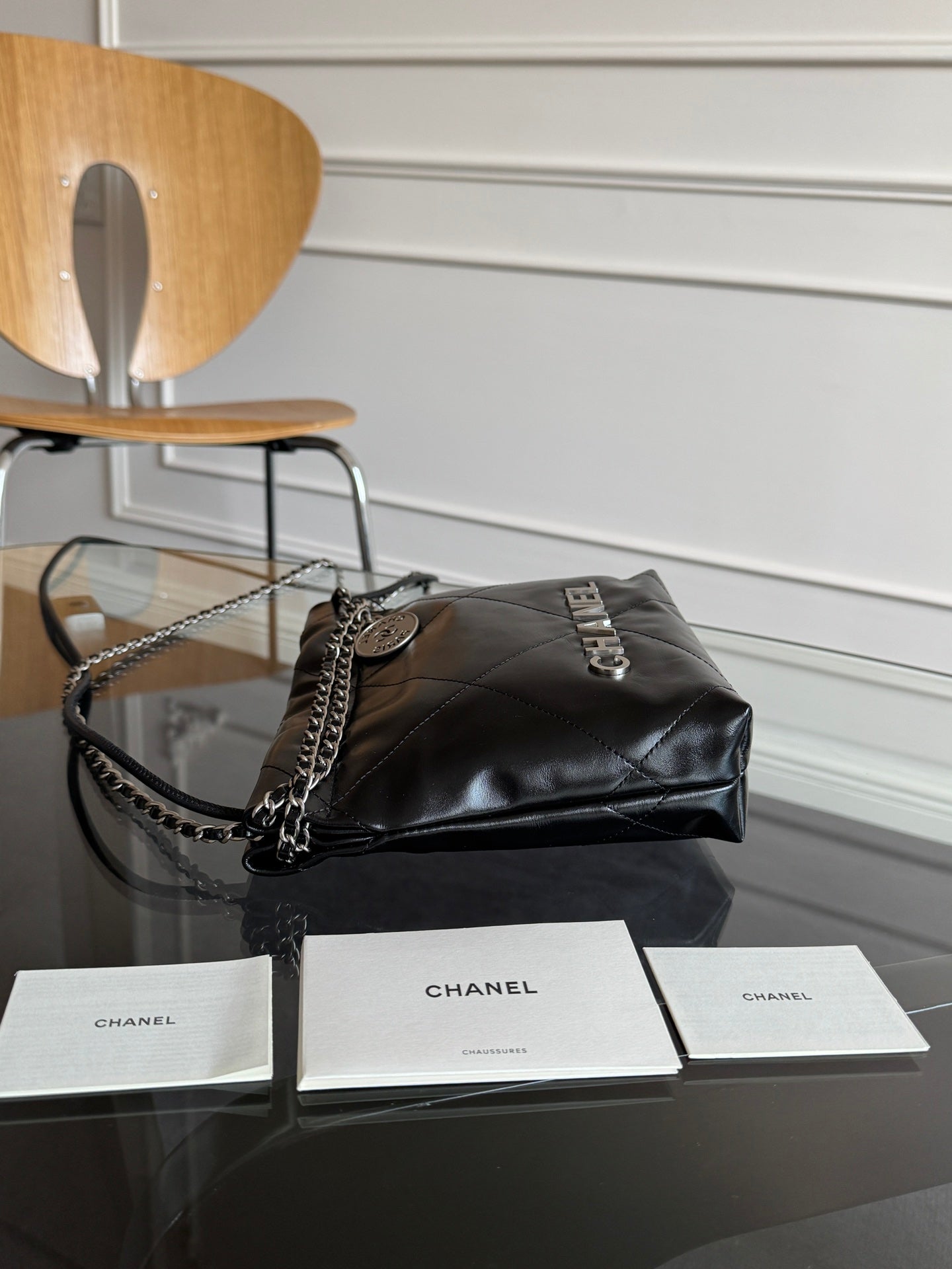 CC MINI HOBO HANDBAG 20 IN BLACK CALFSKIN SILVER-TONE HARDWARE