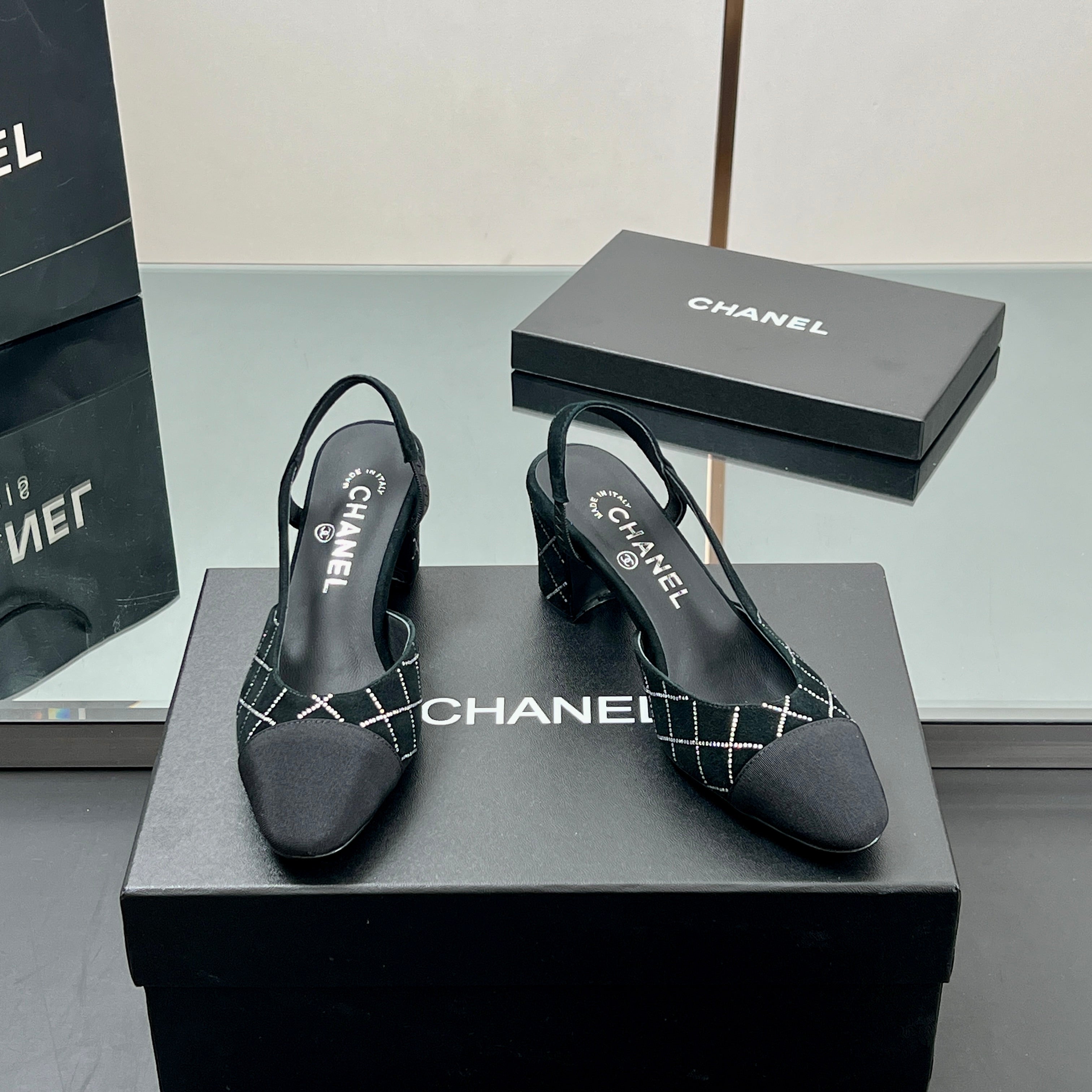 CC SLINGBACK 25S 65 MM IN BLACK SUEDE AND CRYSTALS