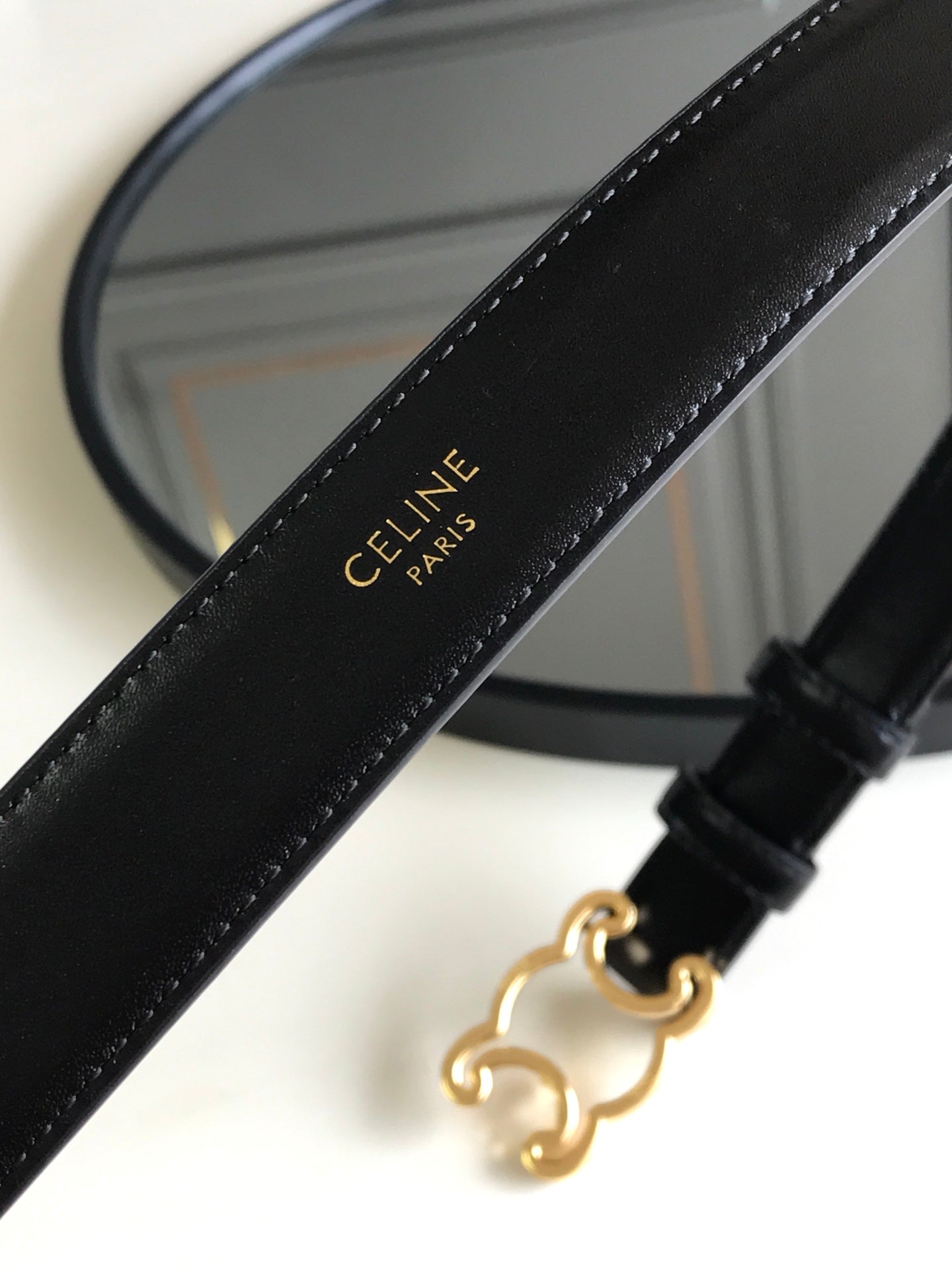 CELINE 25S BELT TRIOMPHE 25MM IN BLACK GLOSSY CALFSKIN 559675