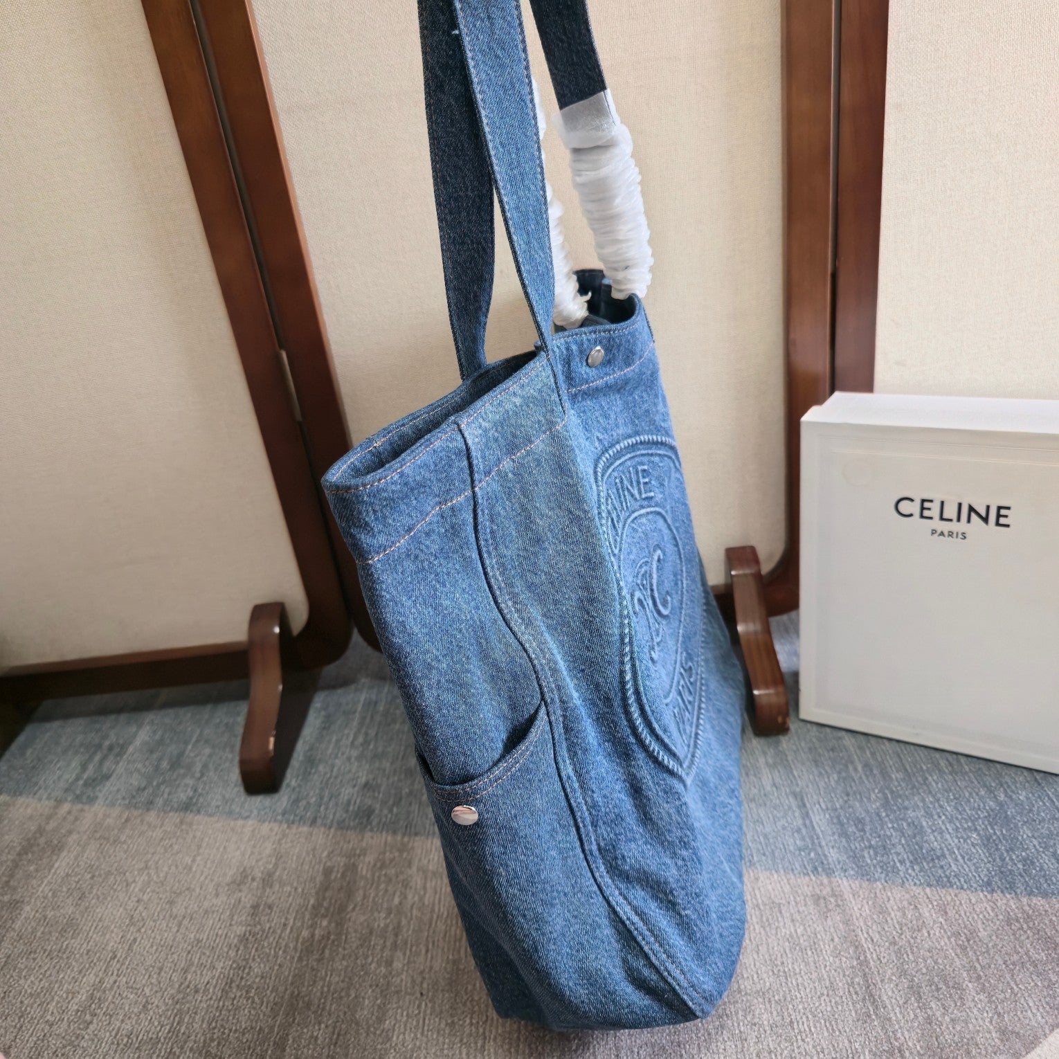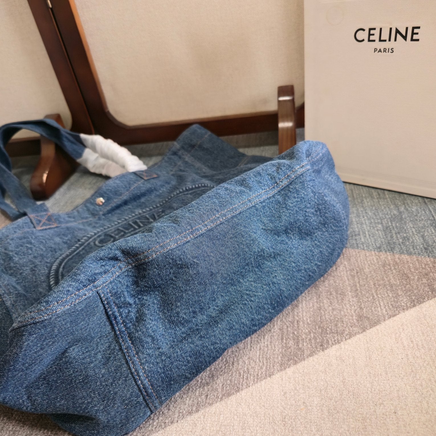 CELINE 25S DENIM CABAS BAG 50MM IN BLUE CANVAS