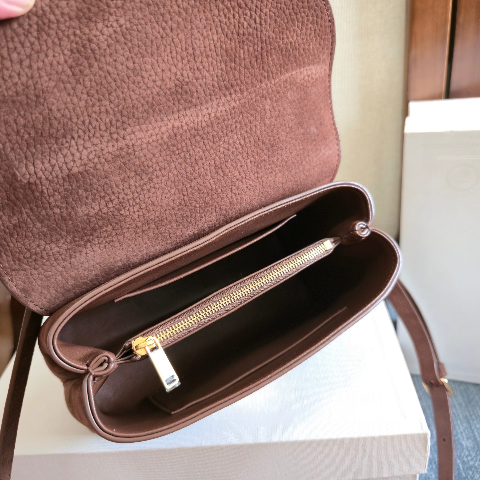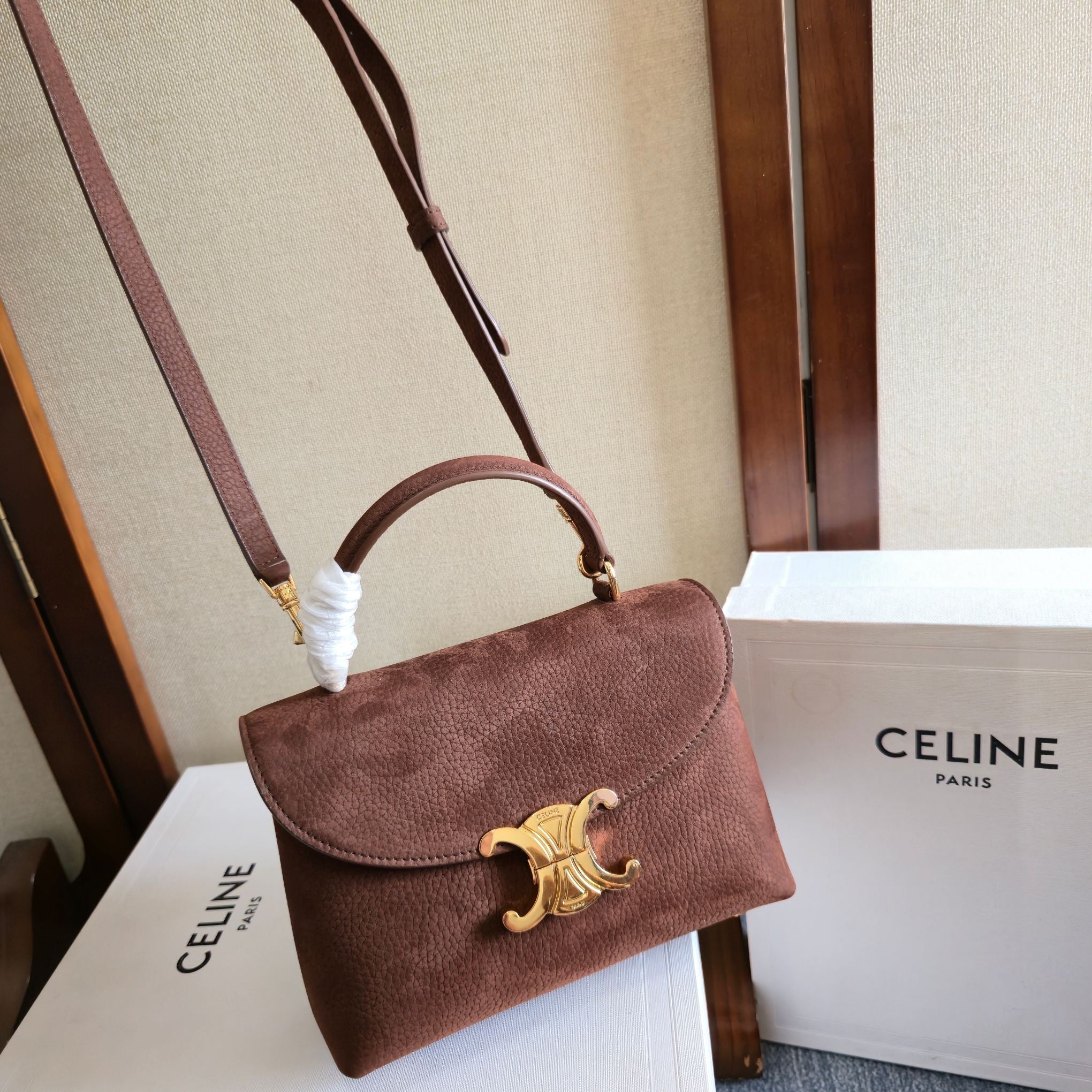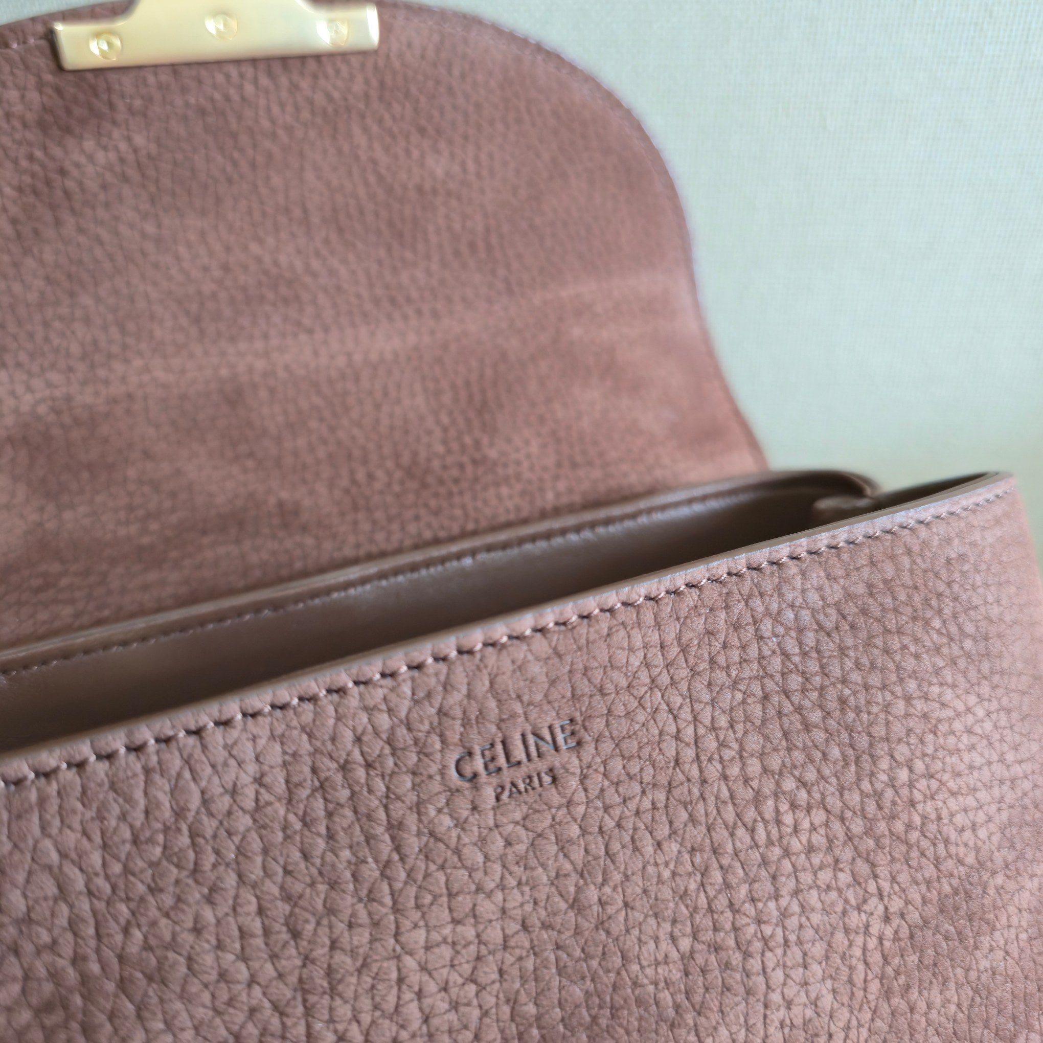 CELINE 25S NINO BAG 20MM IN DARK BROWN GRAINED CALFSKIN GOLD HARDWARE