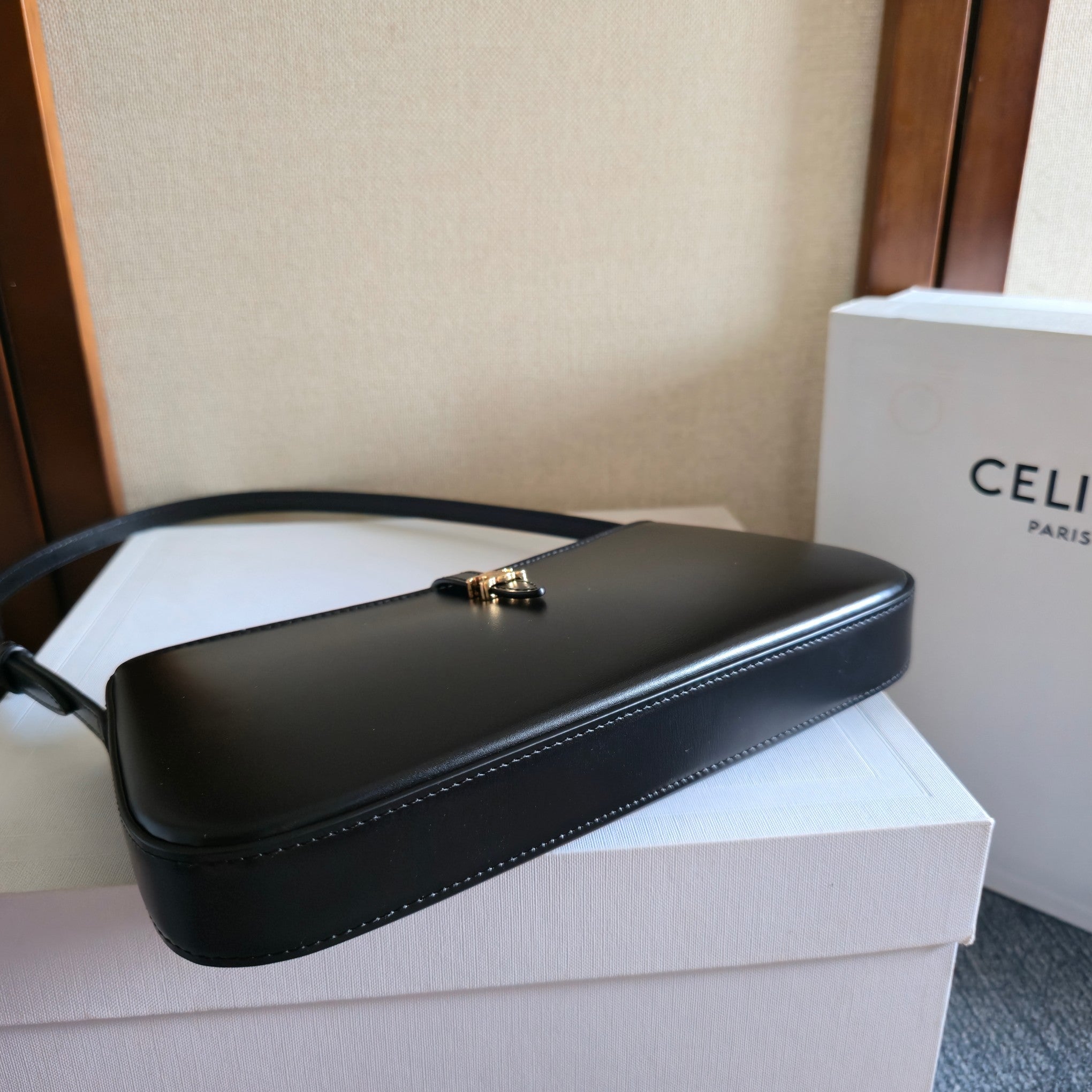 CELINE 25S TINA SHOULDER BAG 25MM IN BLACK CALFSKIN GOLD HARDWARE