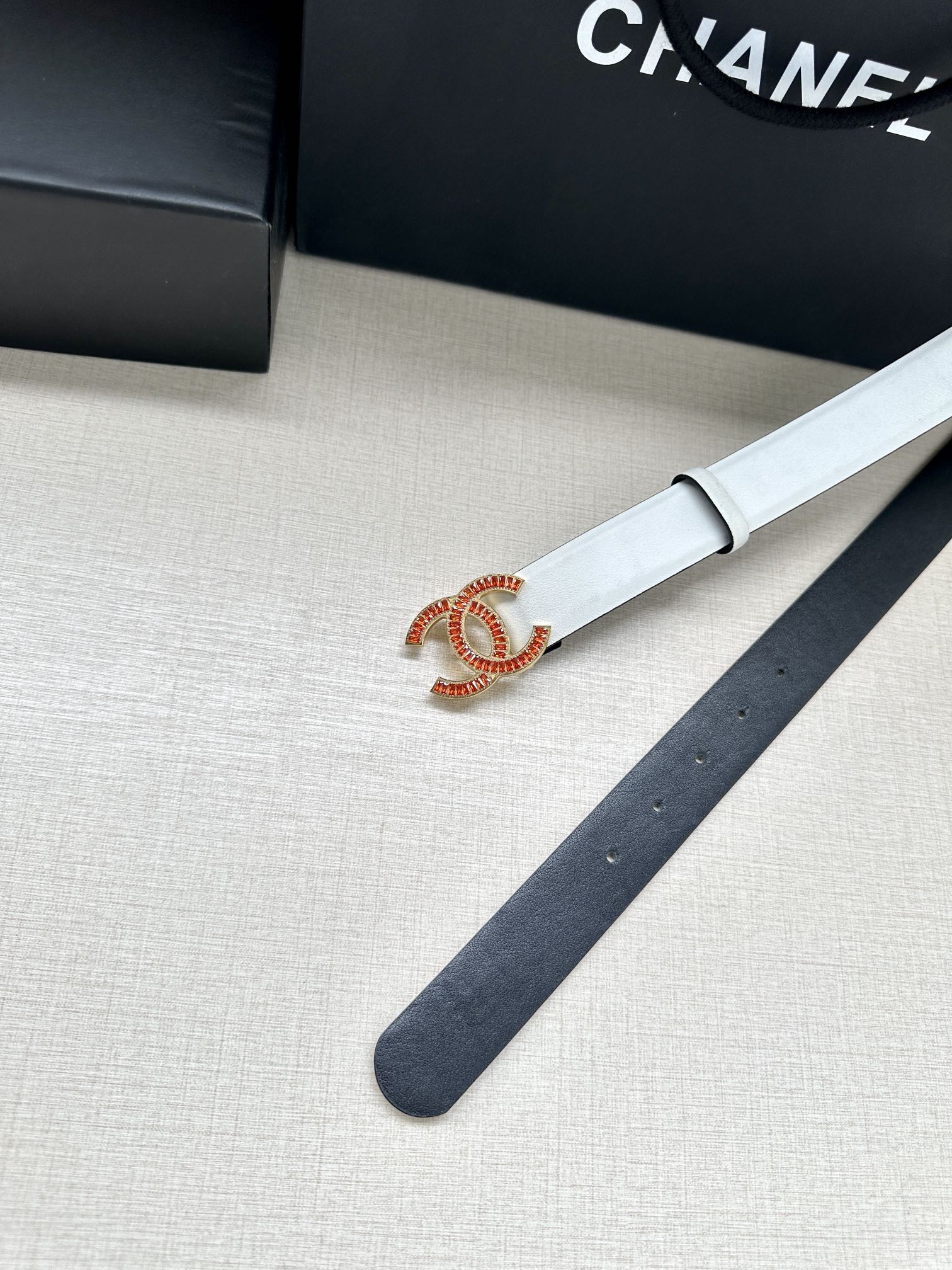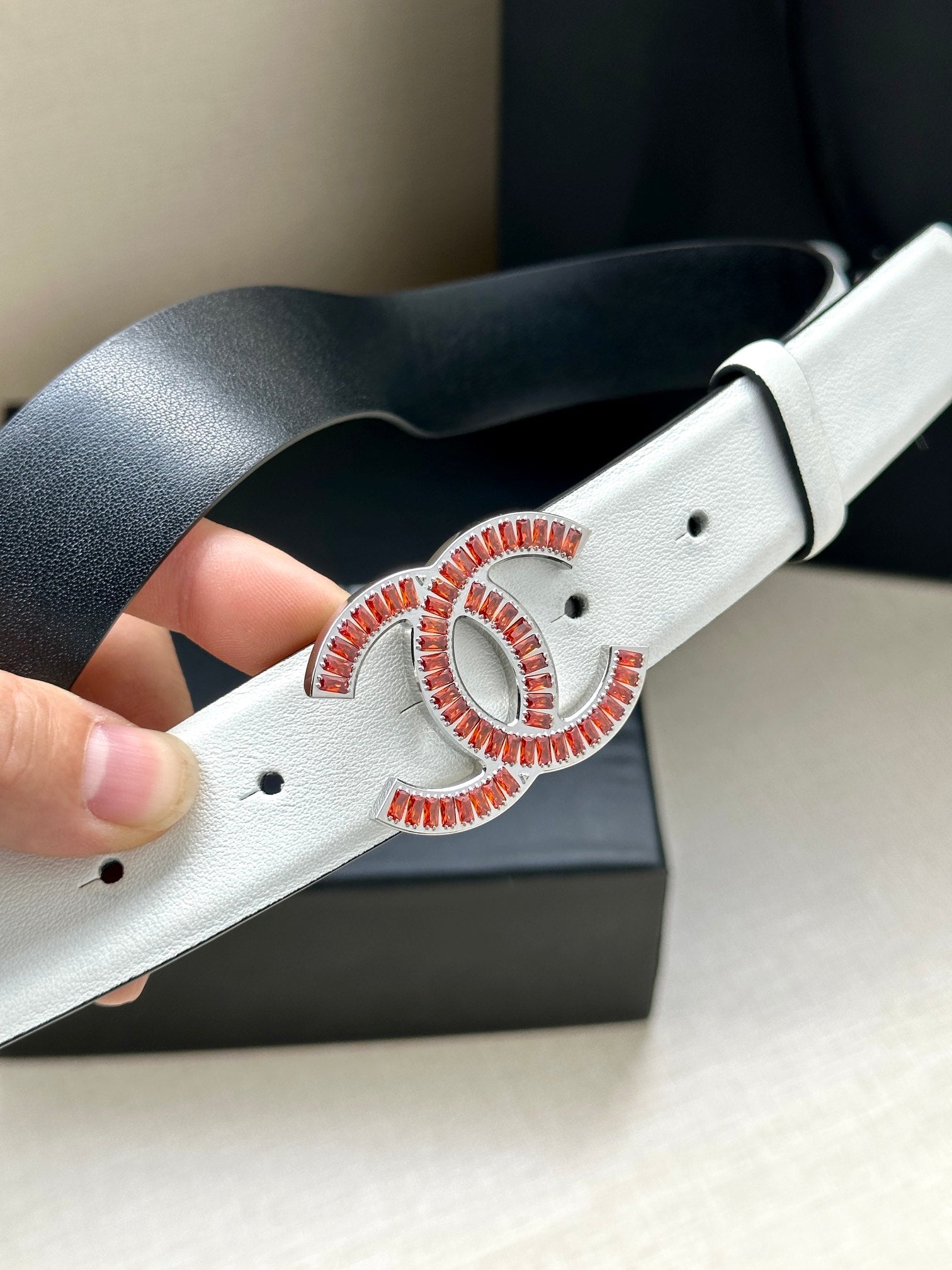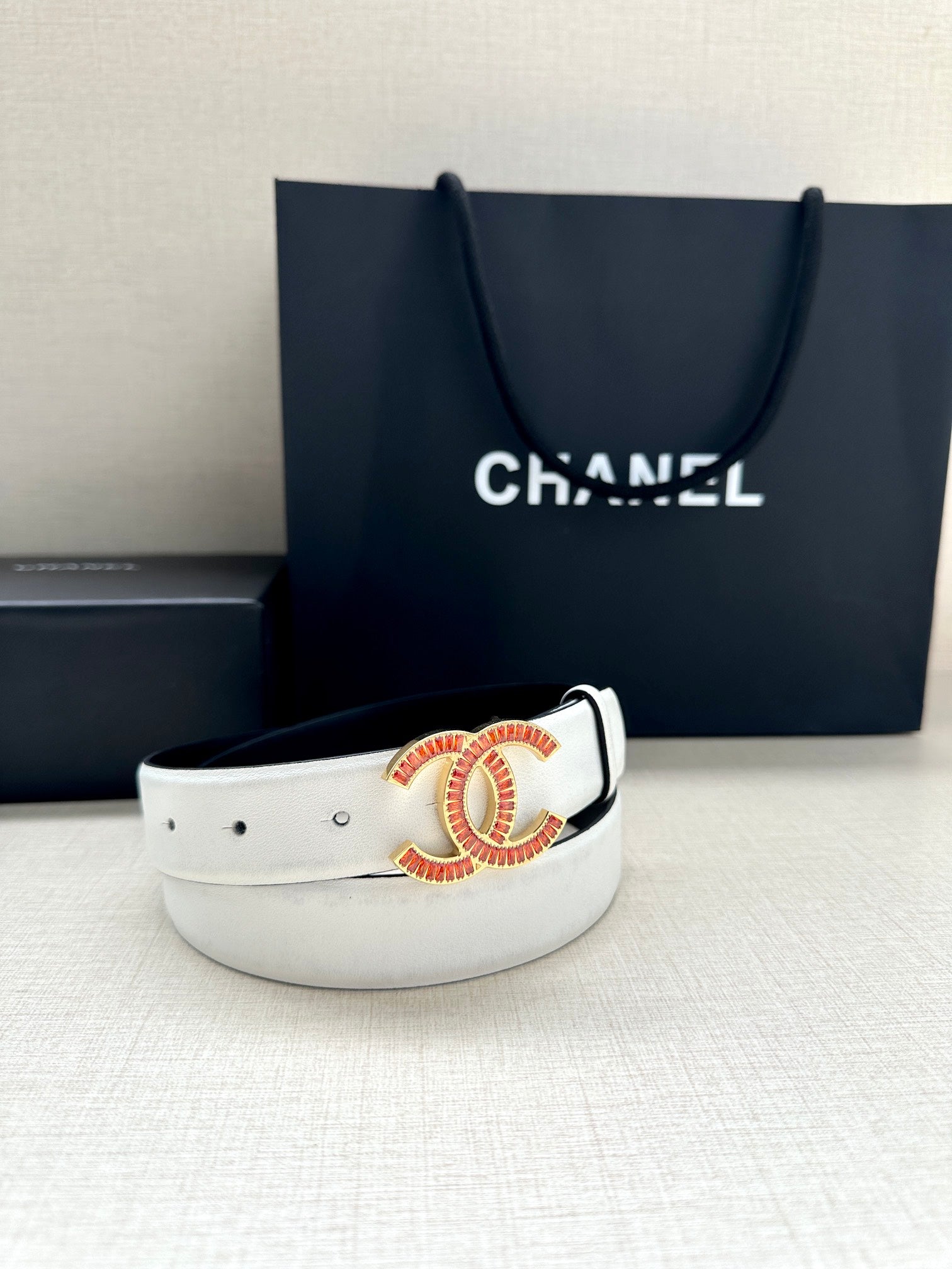 CHANEL 25S BELT 30 MM IN WHITE CALFSKIN 616972
