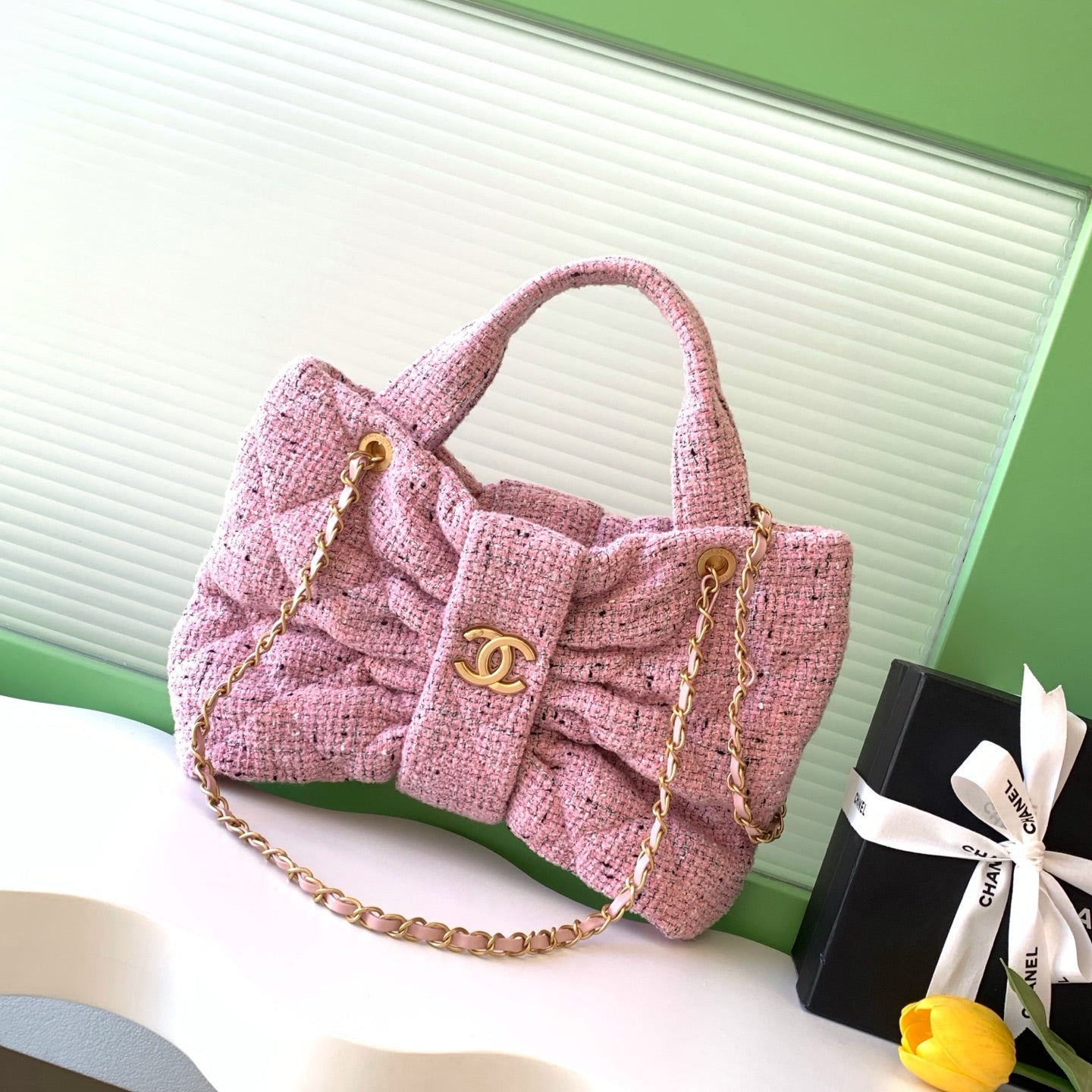 CHANEL 25S BOW BAG 38 IN PINK TWEED WITH GOLD HARDWARE