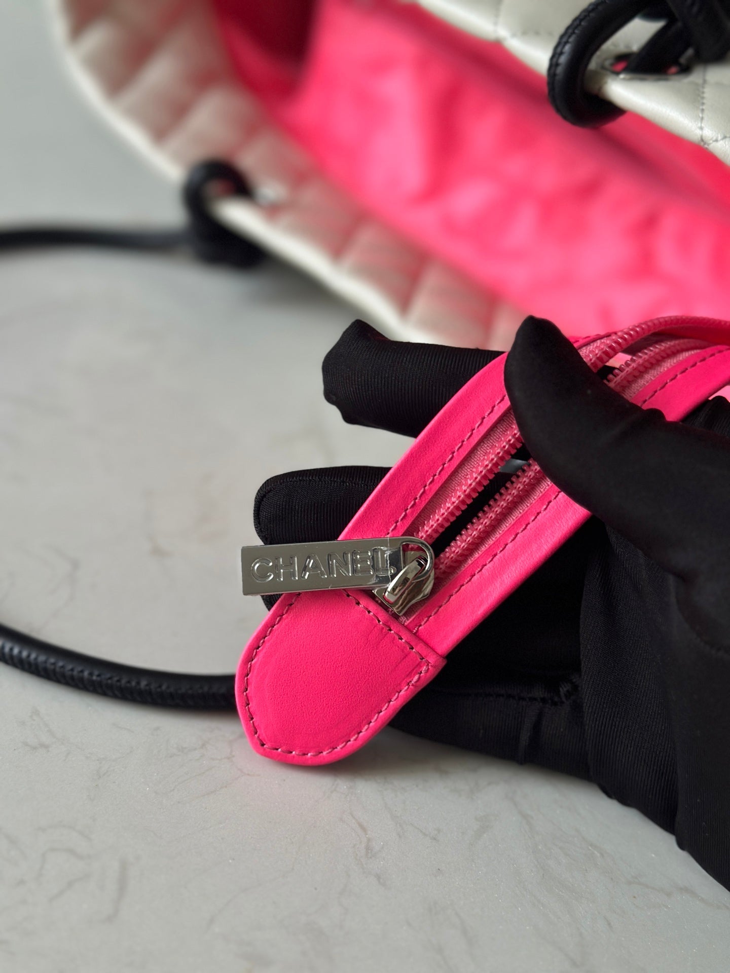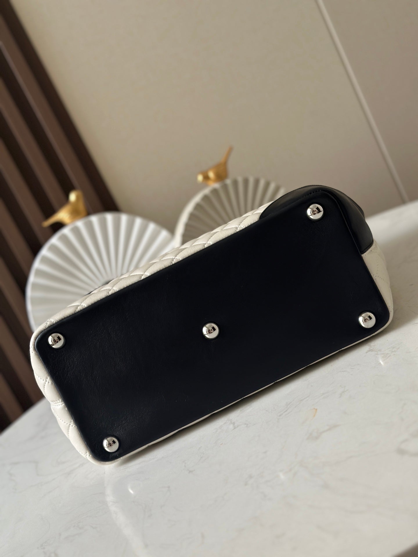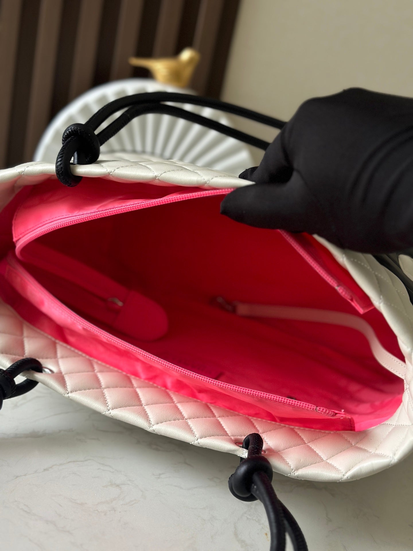 CHANEL 25S CAMBON LIGNE TOTE BAG 30 IN WHITE MIX BLACK CALFSKIN