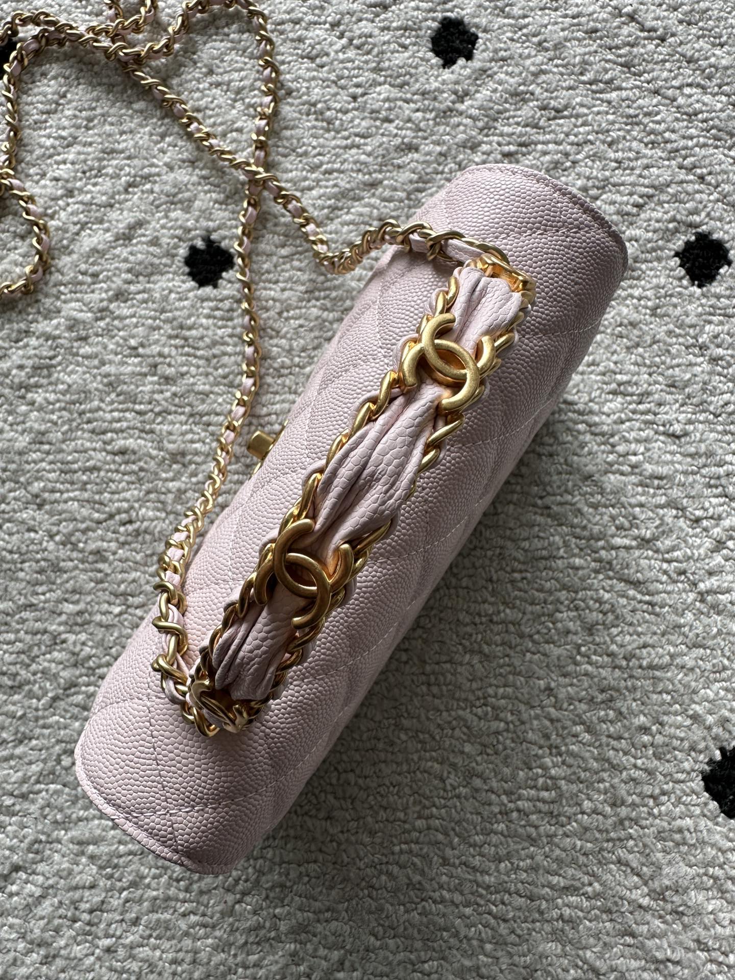 CHANEL 25S CLASSIC WALLET ON CHAIN 19 IN LIGHT PINK LAMBSKIN WITH GOLD HARDWARE