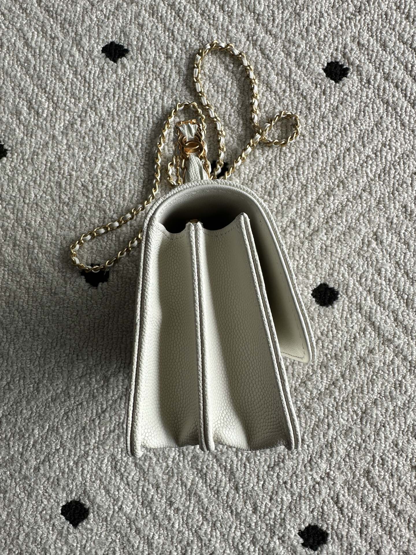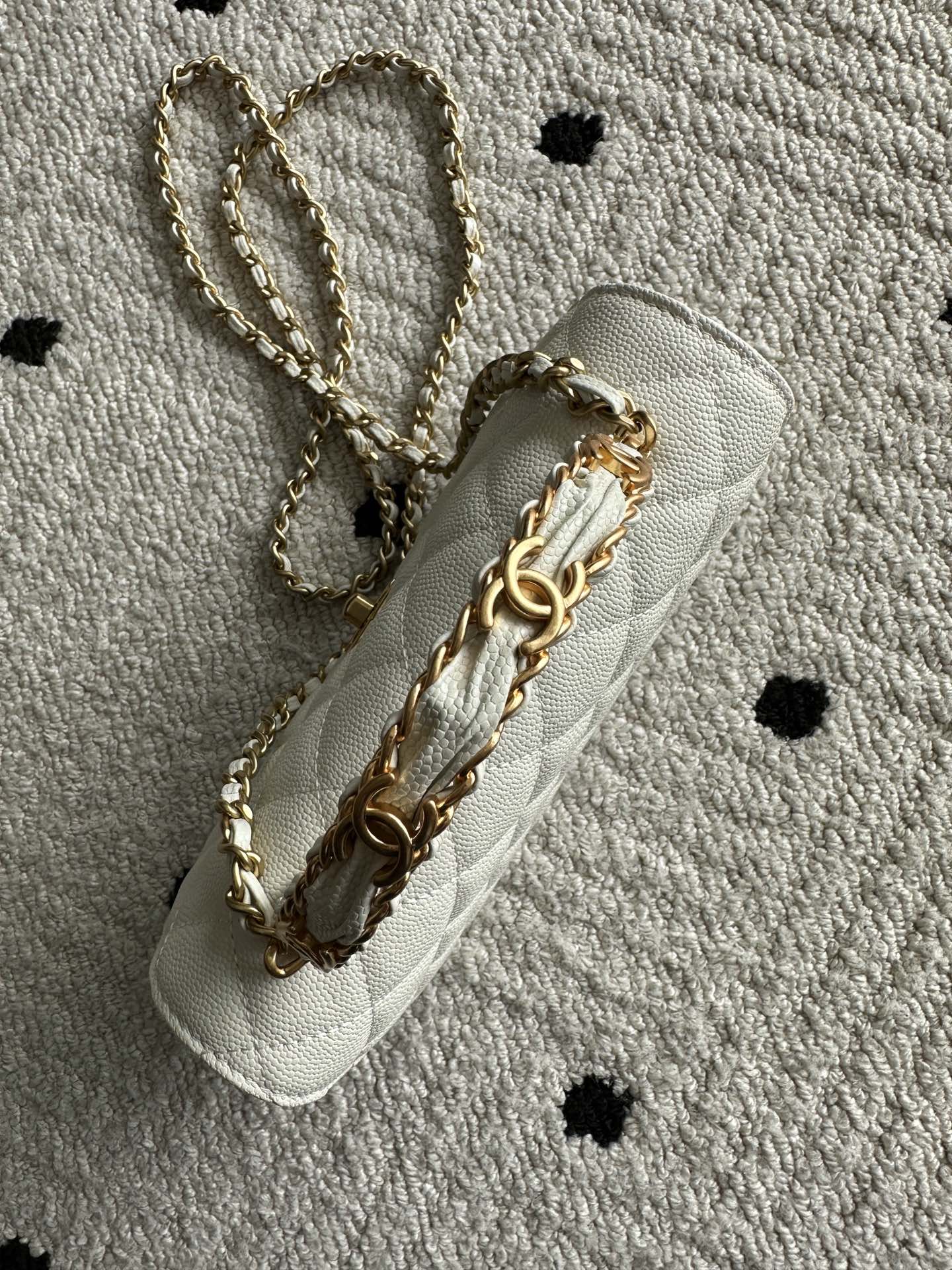 CHANEL 25S CLASSIC WALLET ON CHAIN 19 IN WHITE LAMBSKIN WITH GOLD HARDWARE