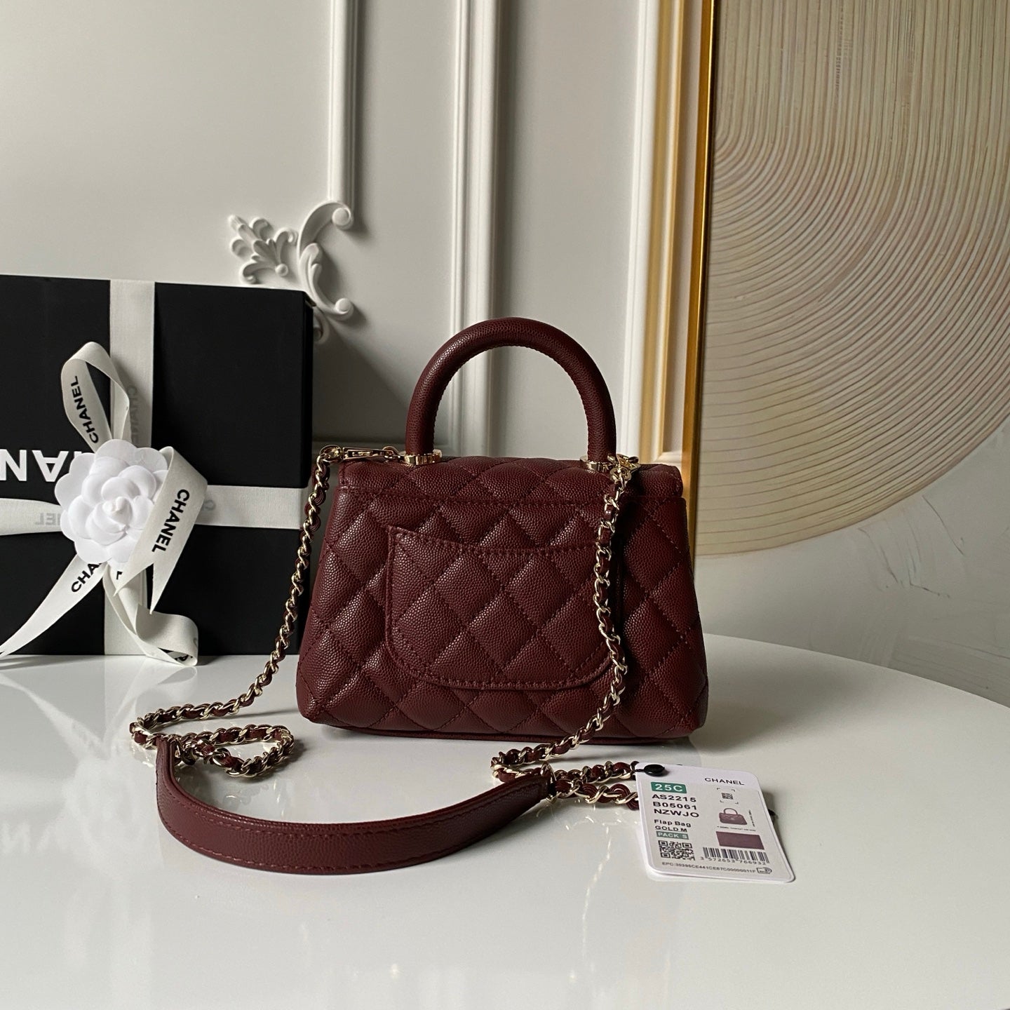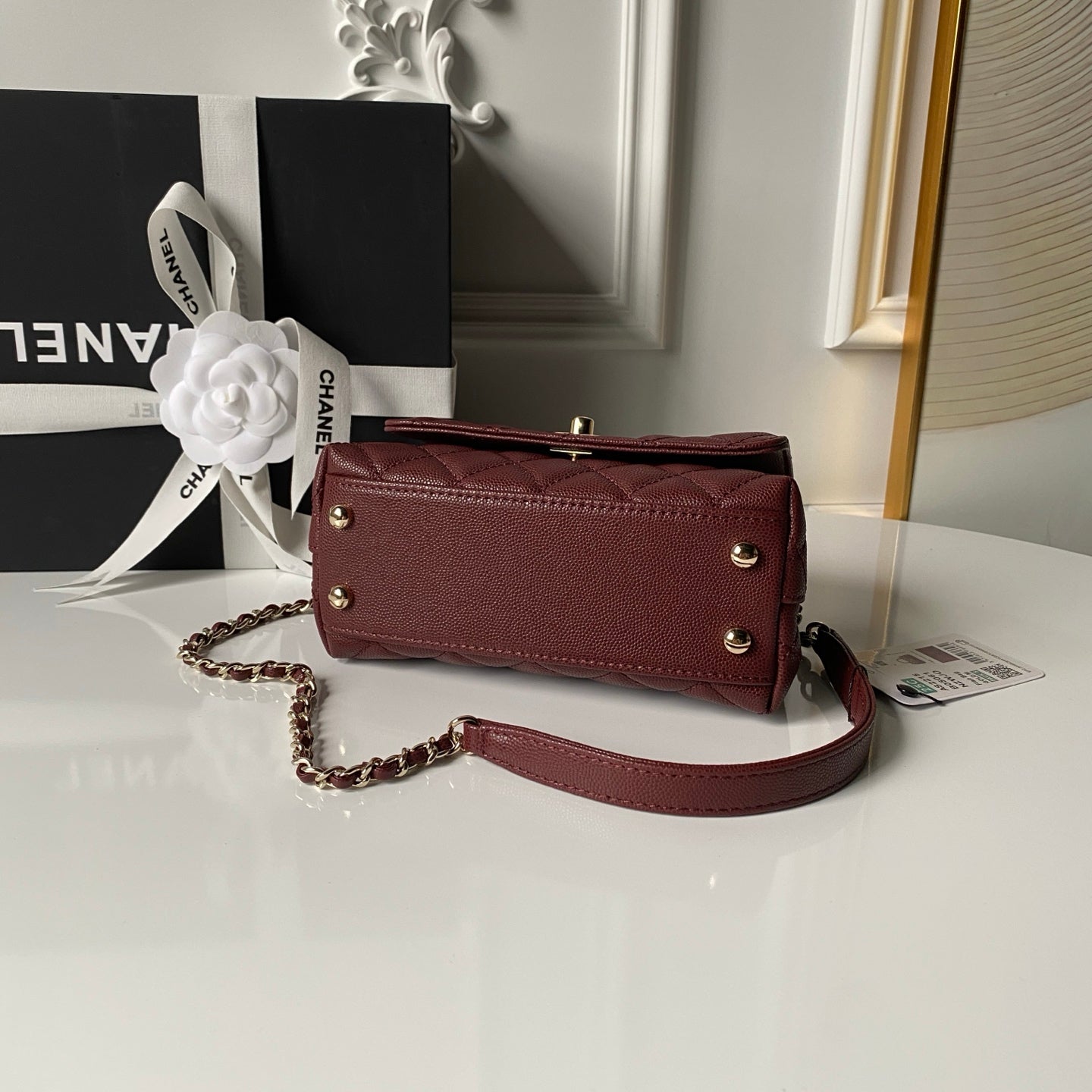 CHANEL 25S COCO HANDLE FLAP BAG 19 IN DARK RED CAVIAR