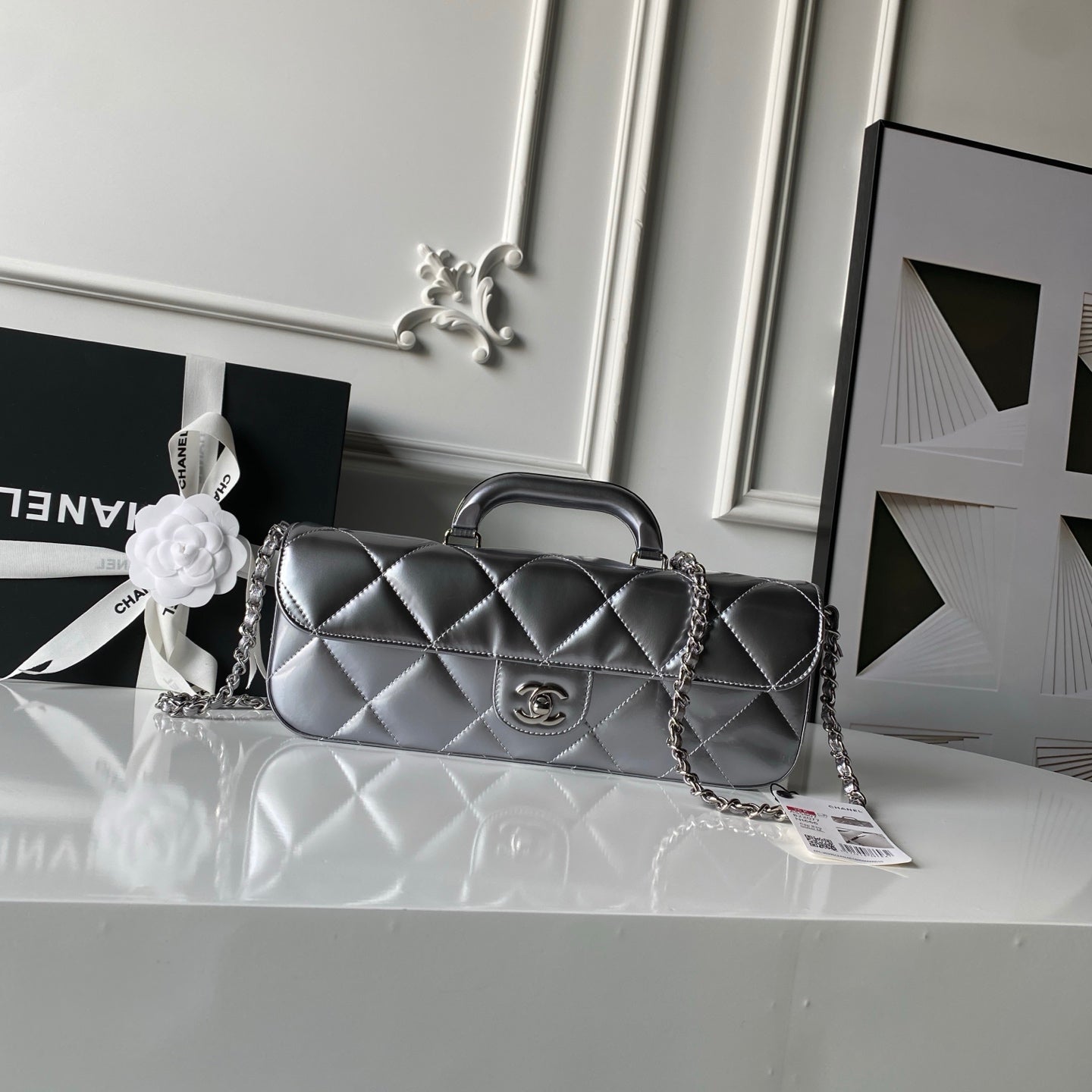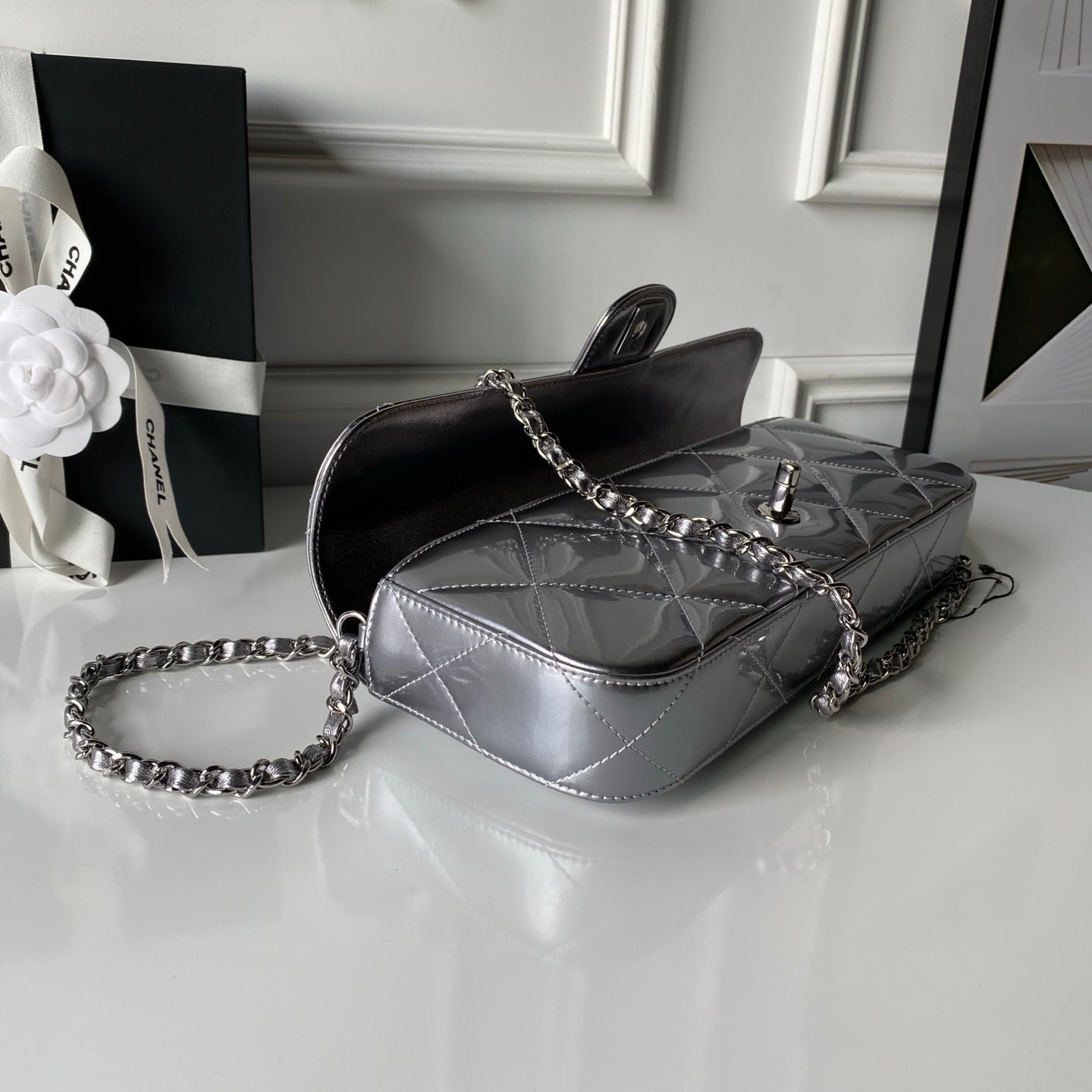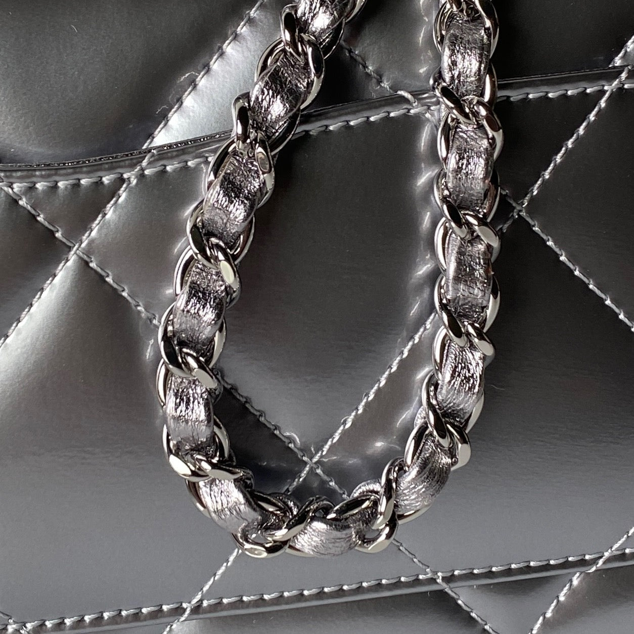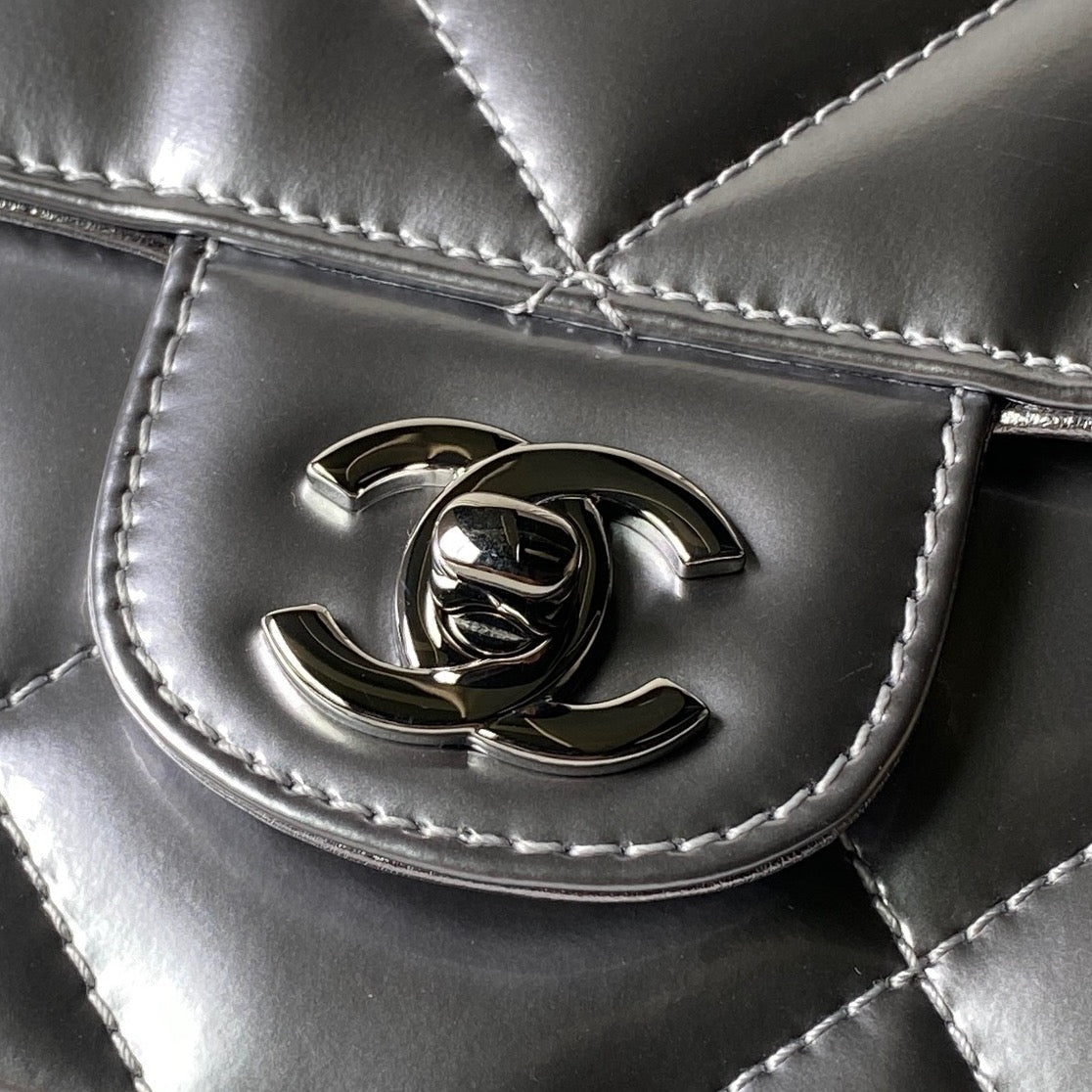 CHANEL 25S FLAP BAG 29 IN SILVER METALLIC CALFSKIN