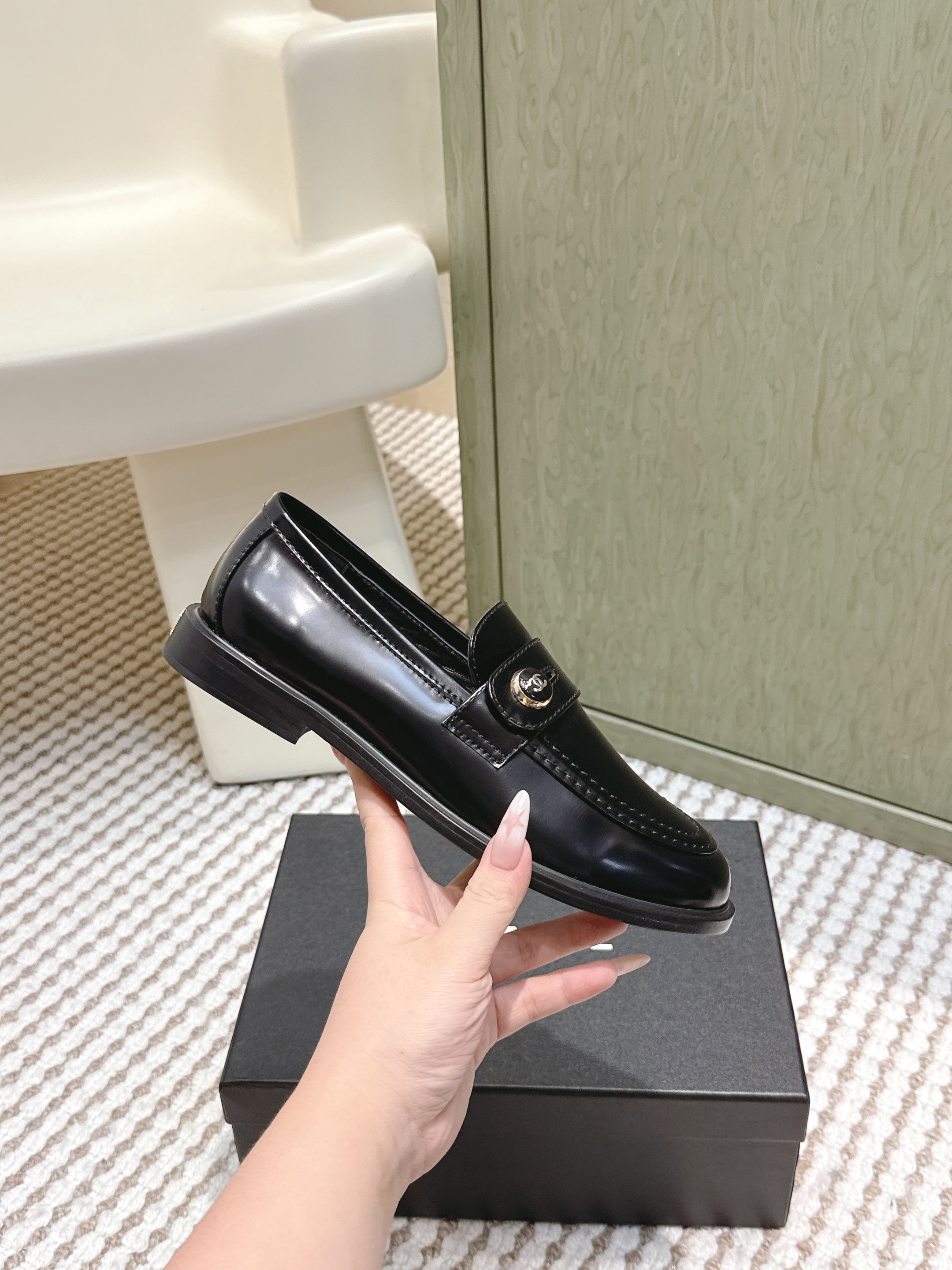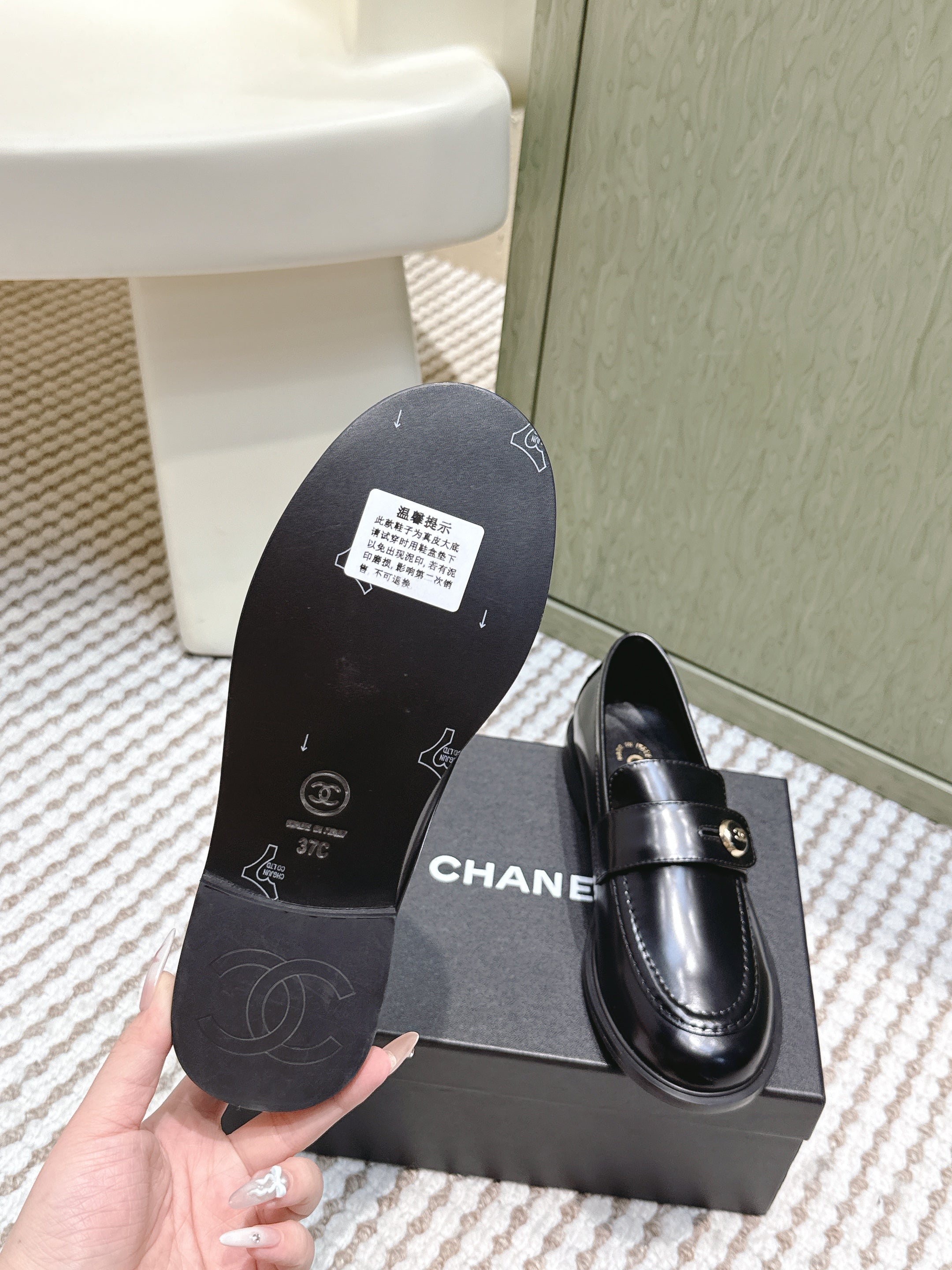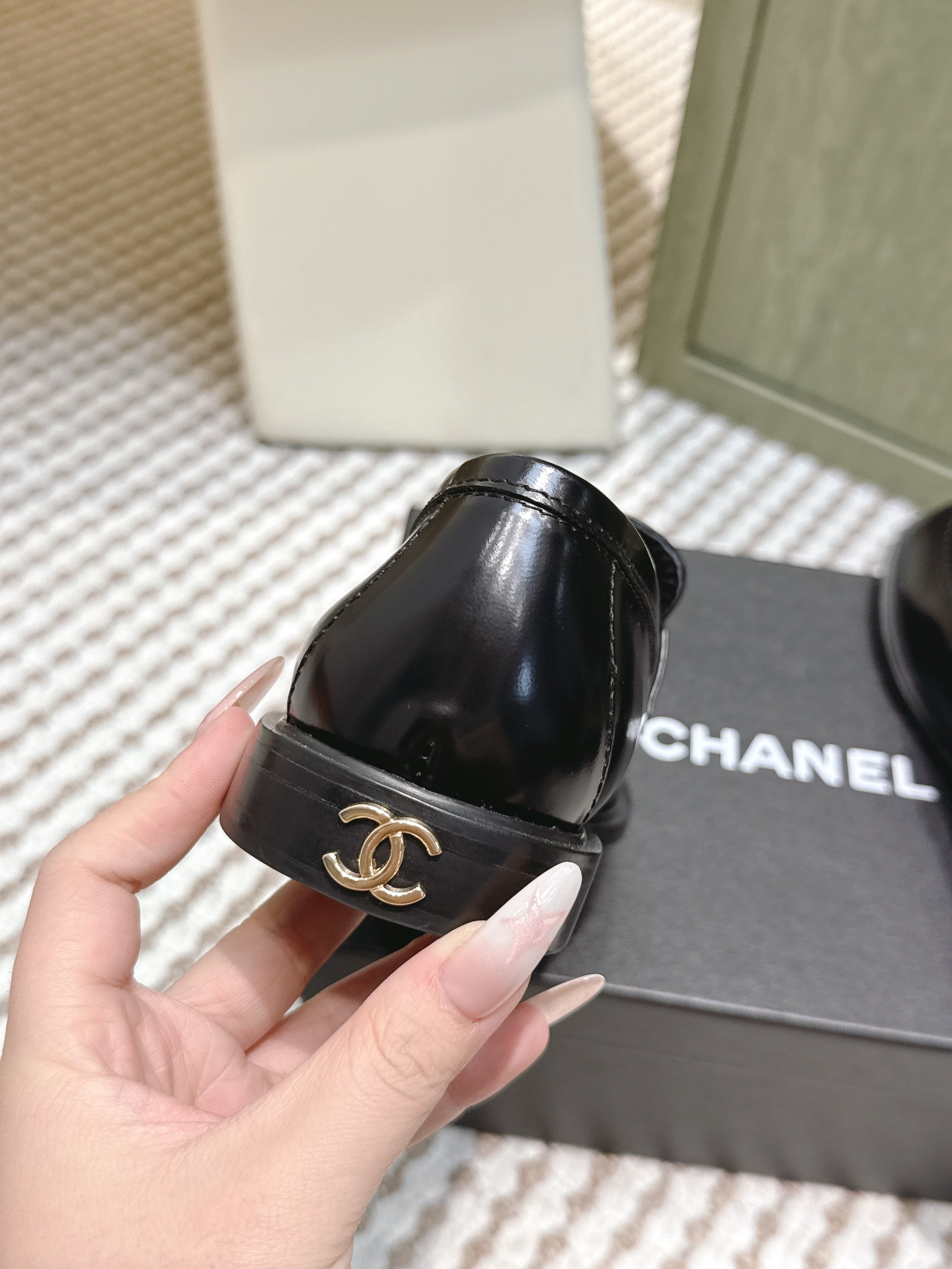 CHANEL 25S GODDESS FLAT LOAFERS IN BLACK GLOSSY CALFSKIN GOLD HARDWARE