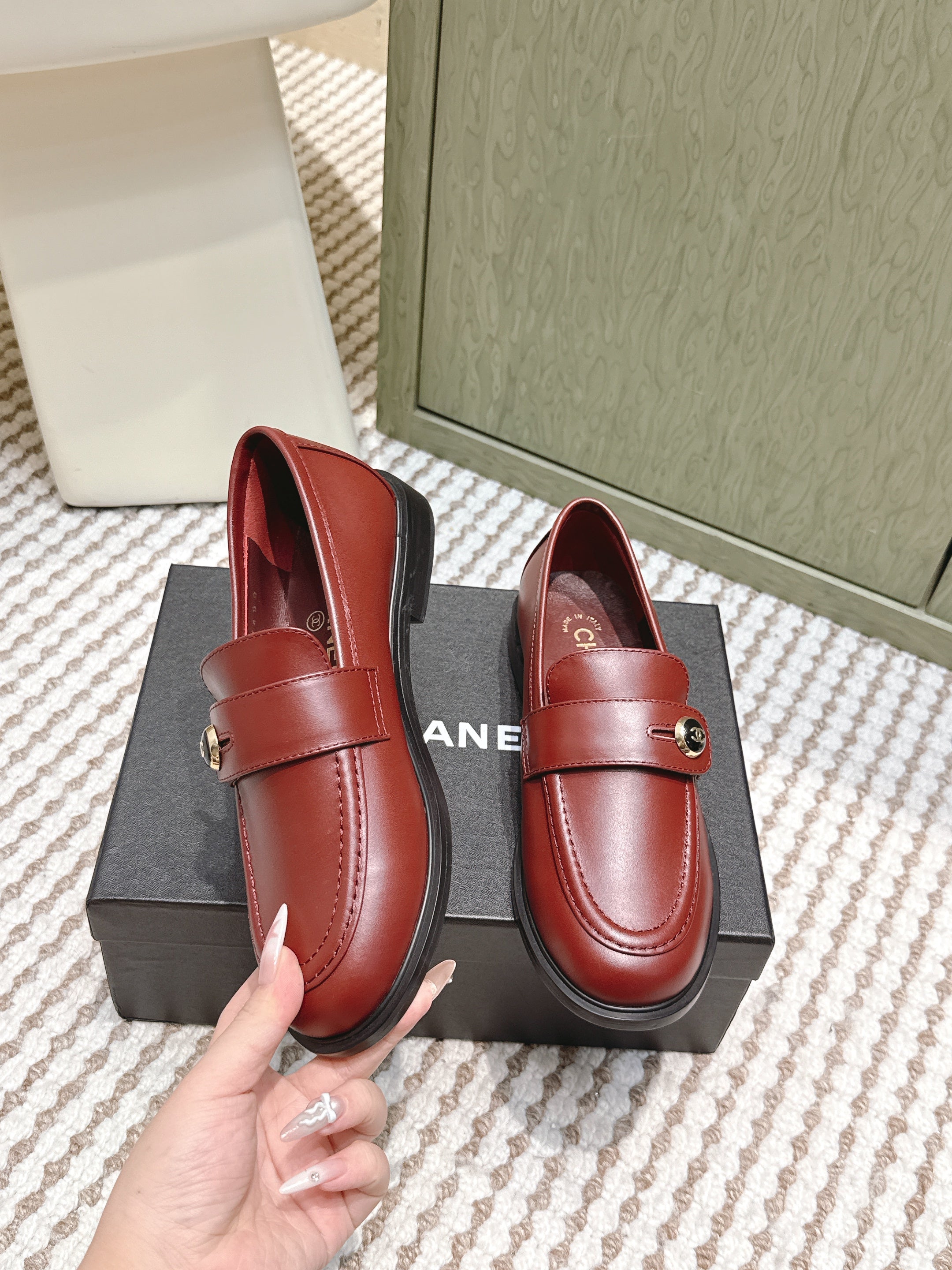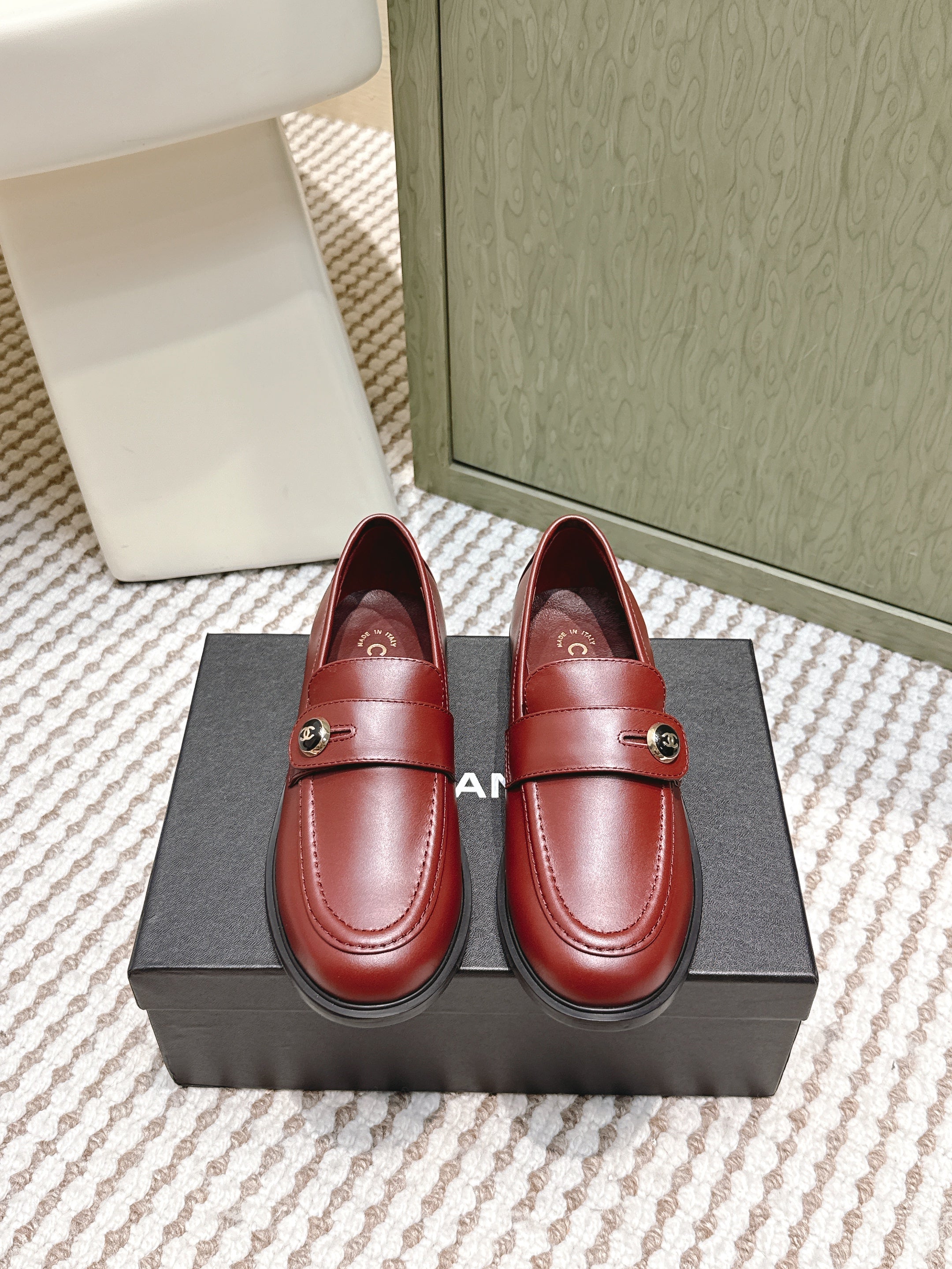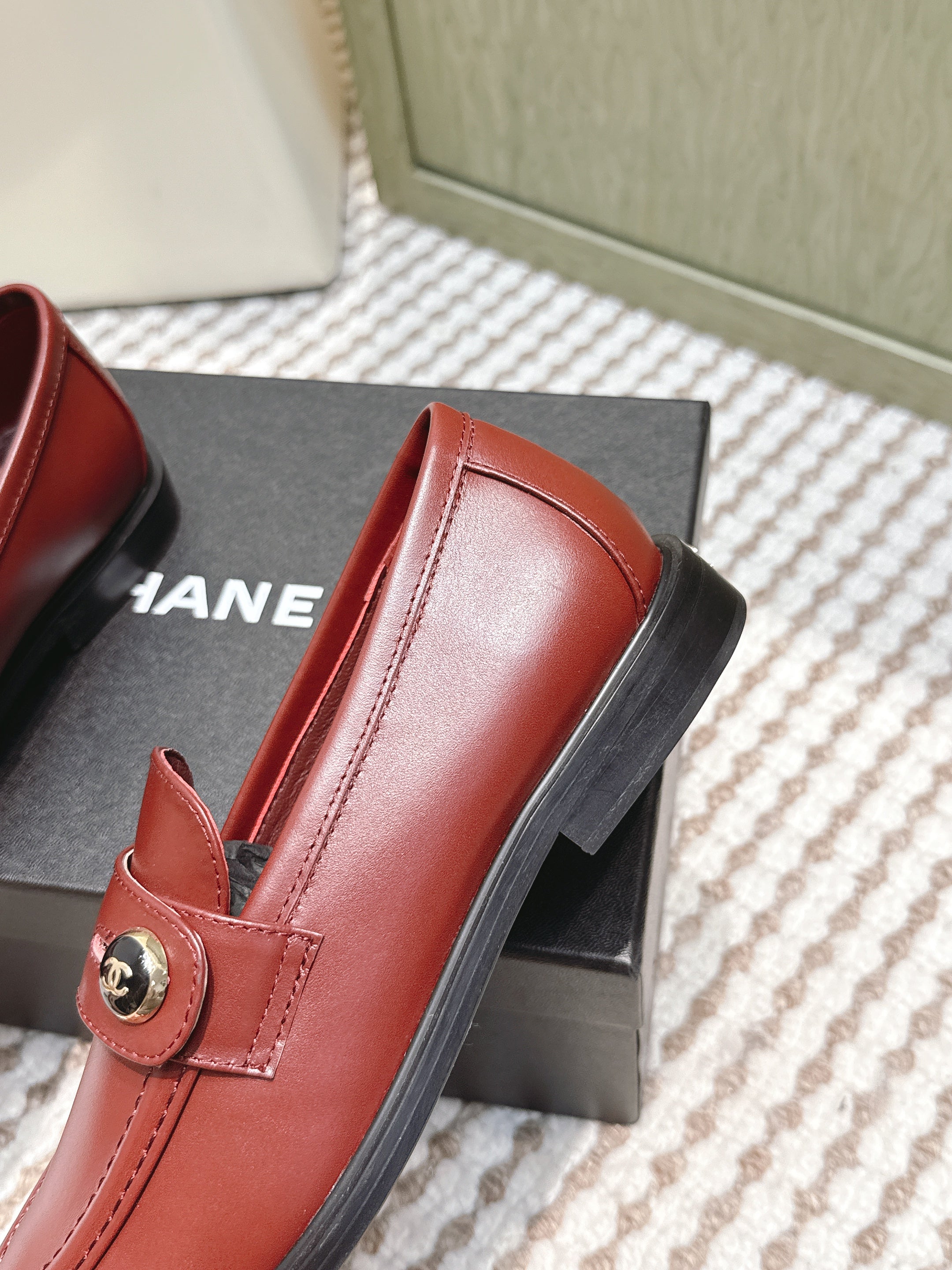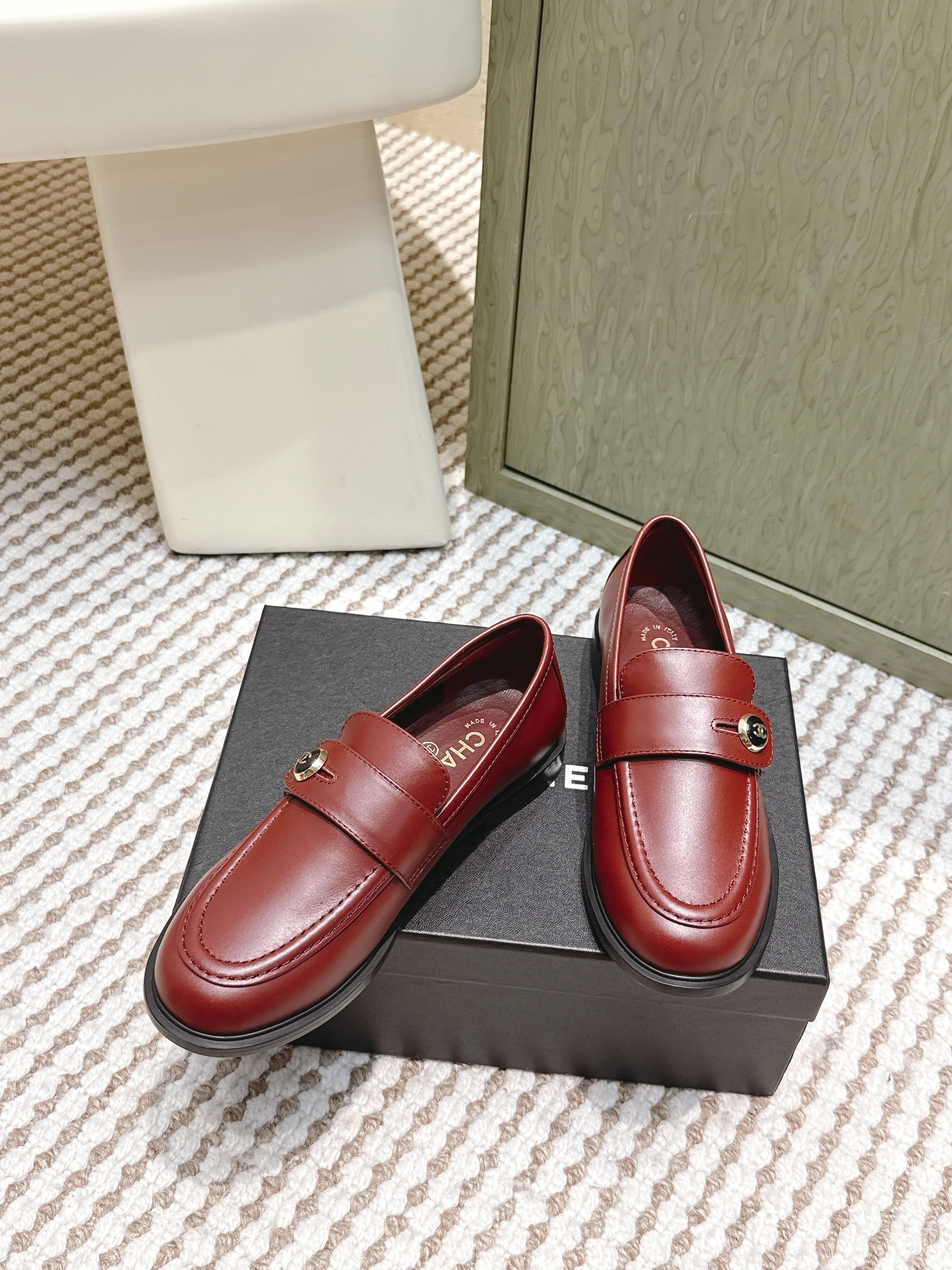 CHANEL 25S GODDESS FLAT LOAFERS IN DARK RED CALFSKIN GOLD HARDWARE