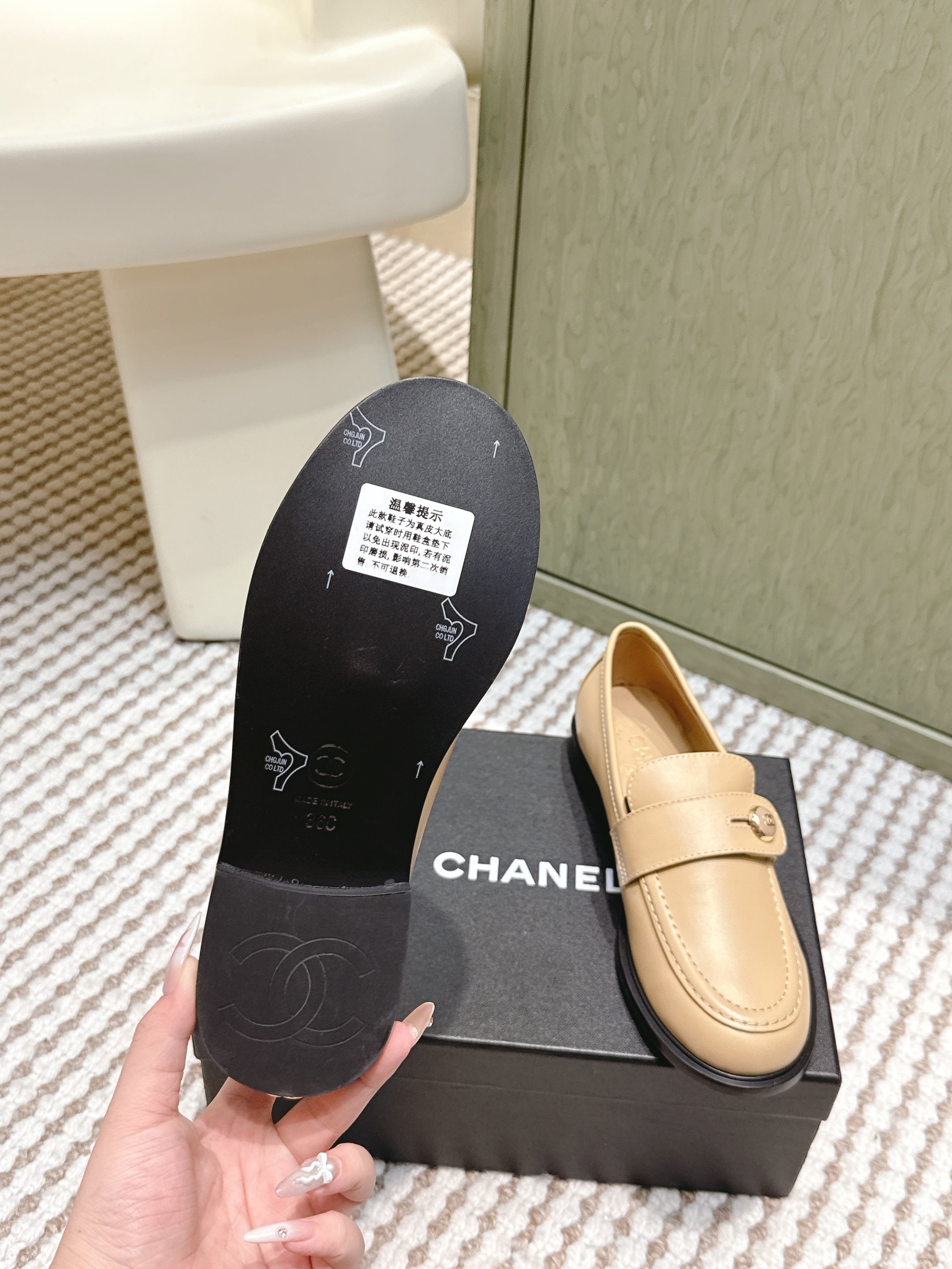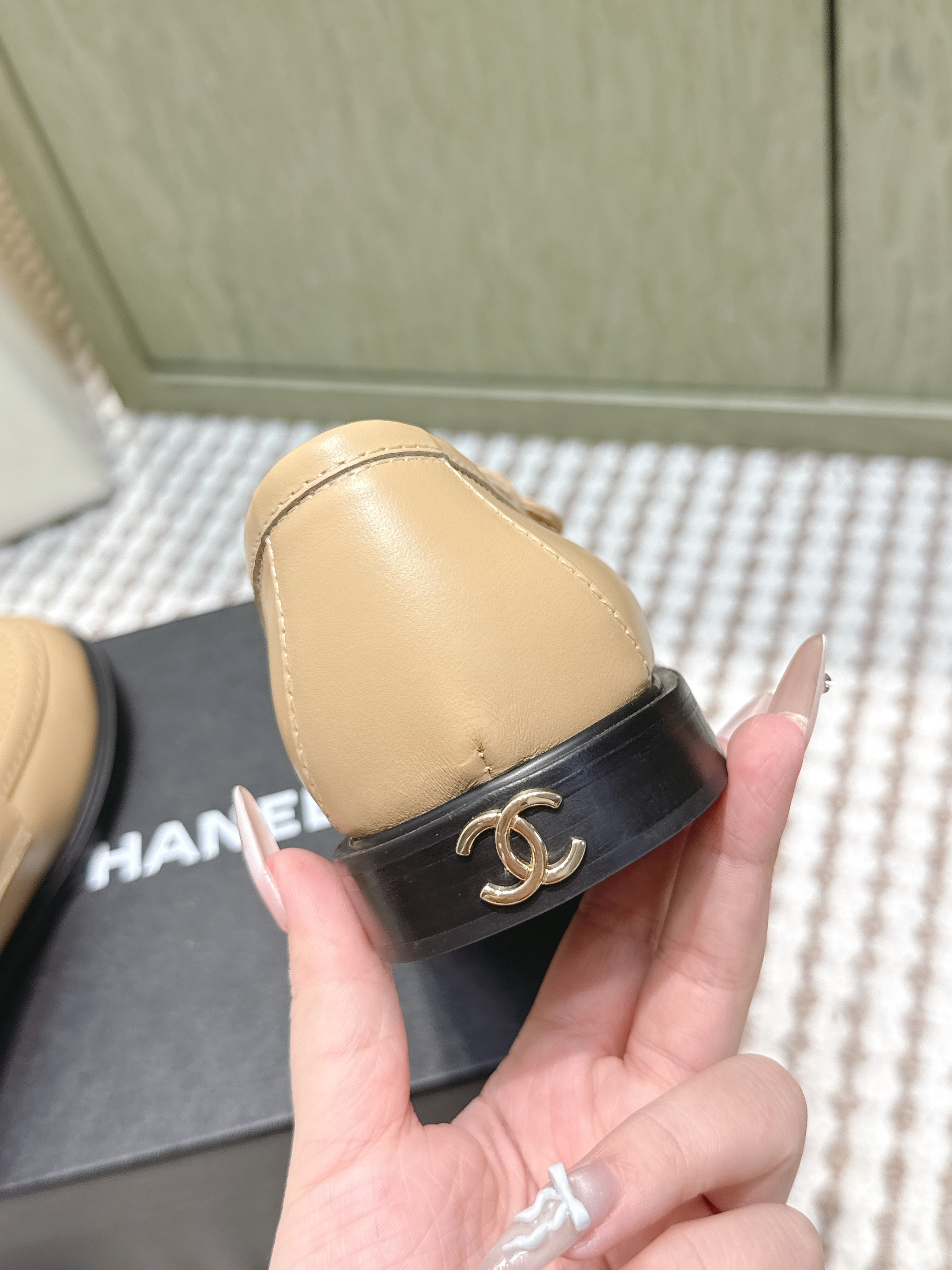 CHANEL 25S GODDESS FLAT LOAFERS IN WARM BEIGE CALFSKIN GOLD HARDWARE