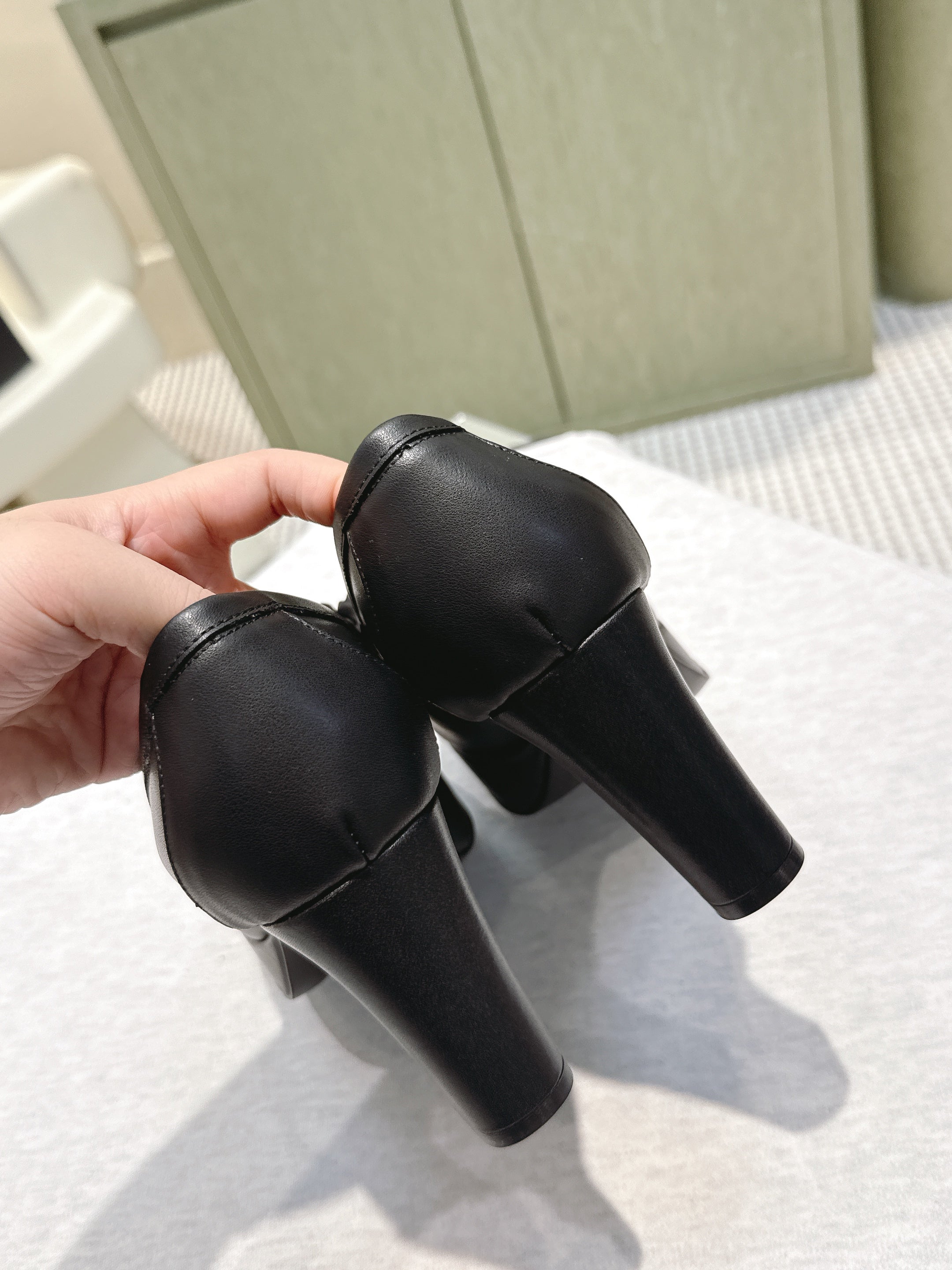CHANEL 25S HIGH-HEELED MOCCASINS 80MM IN BLACK CALFSKIN GOLD HARDWARE