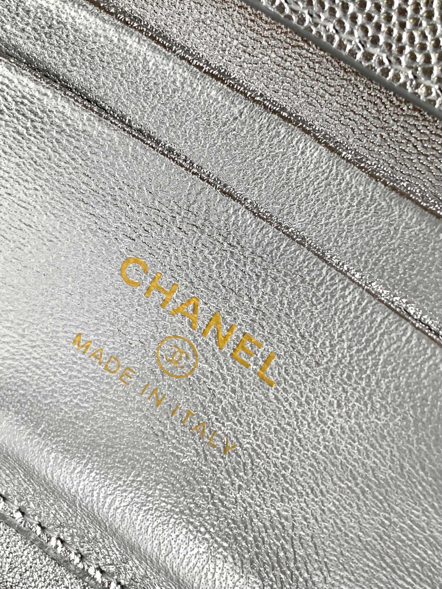 CHANEL 25S KELLY BAG 18 IN SILVER CAVIAR LEATHER WITH GOLD HARDWARE STYLE 2