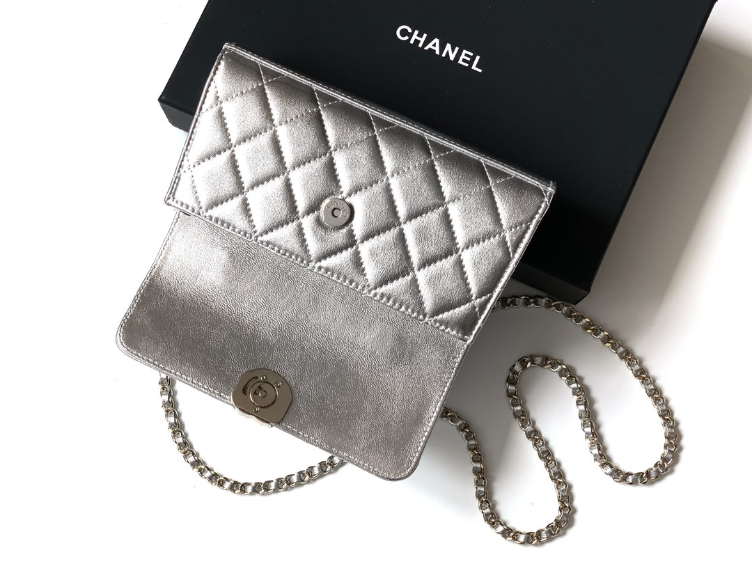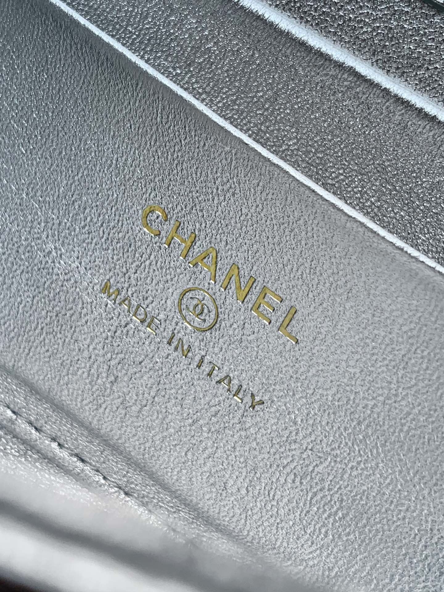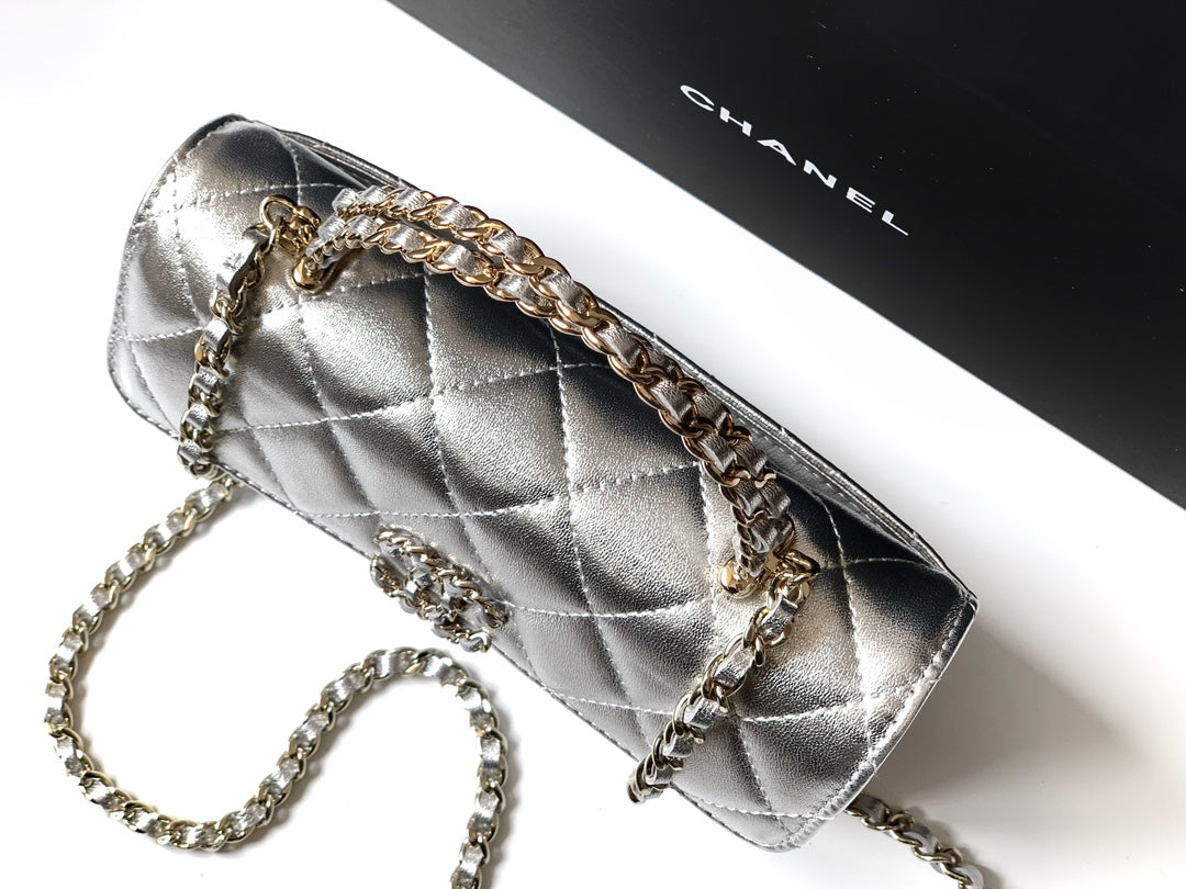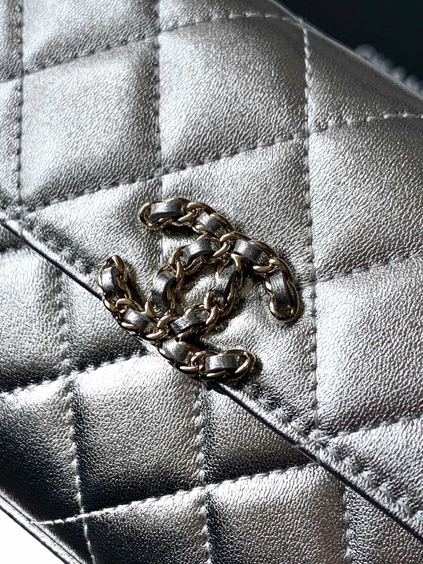 CHANEL 25S KELLY BAG 18 IN SILVER METALLIC LAMBSKIN WITH GOLD HARDWARE STYLE 1