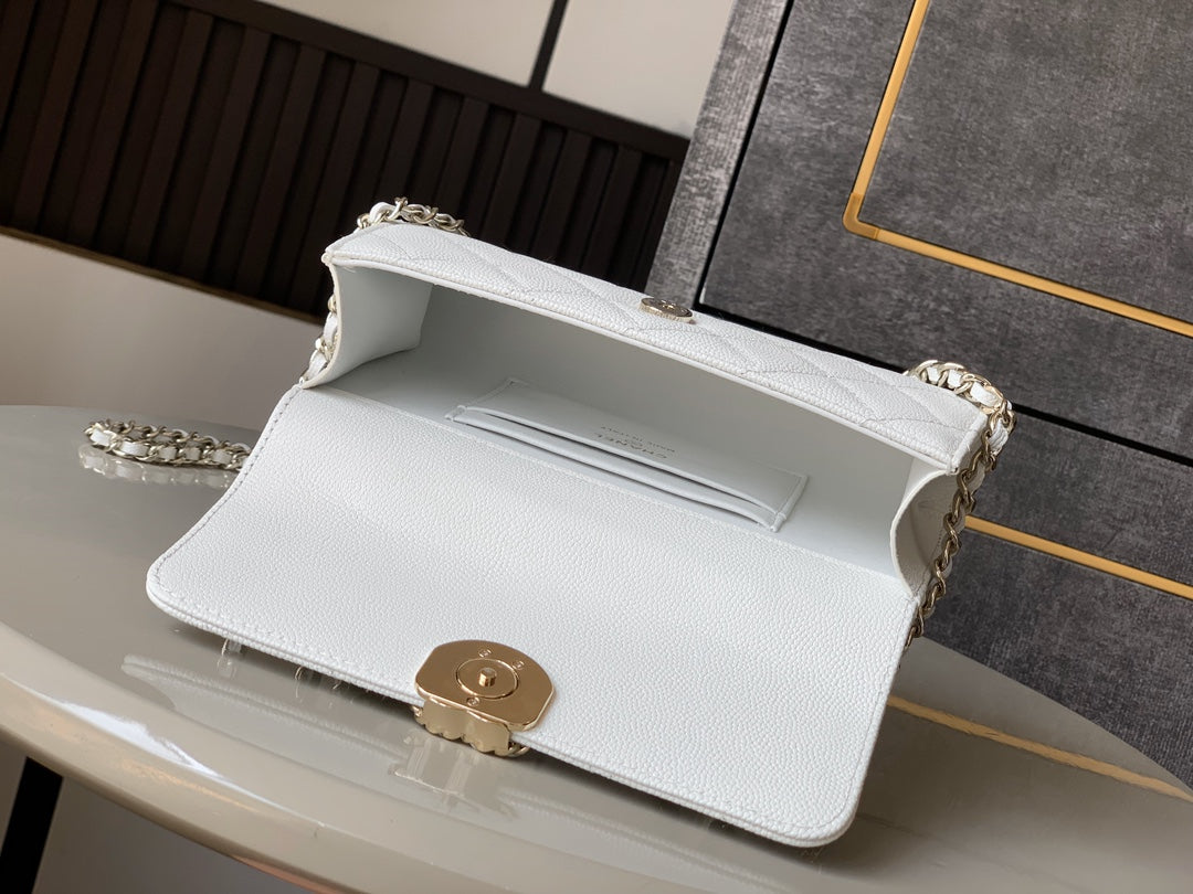 CHANEL 25S KELLY BAG 18 IN WHITE CAVIAR LEATHER WITH GOLD HARDWARE