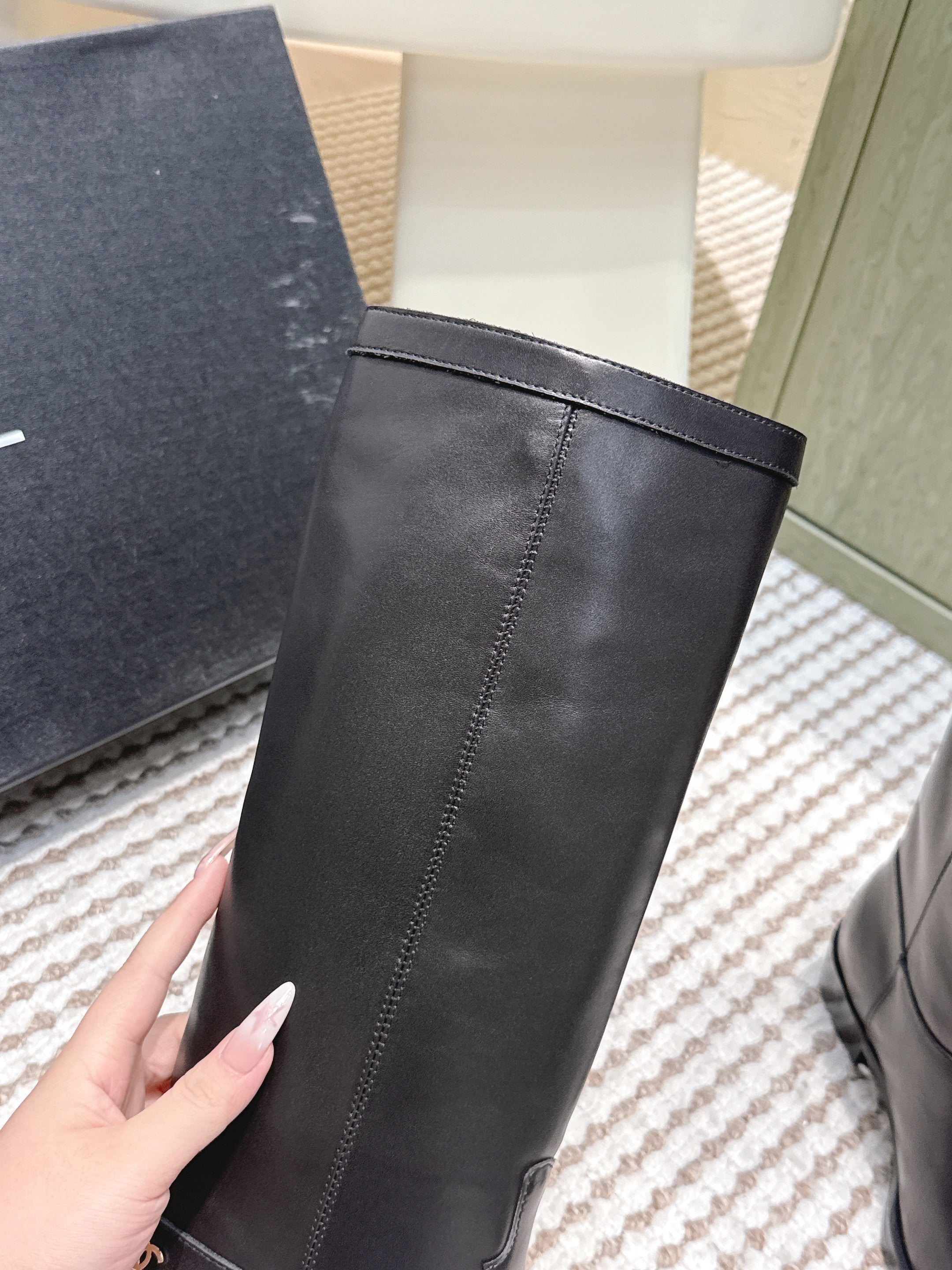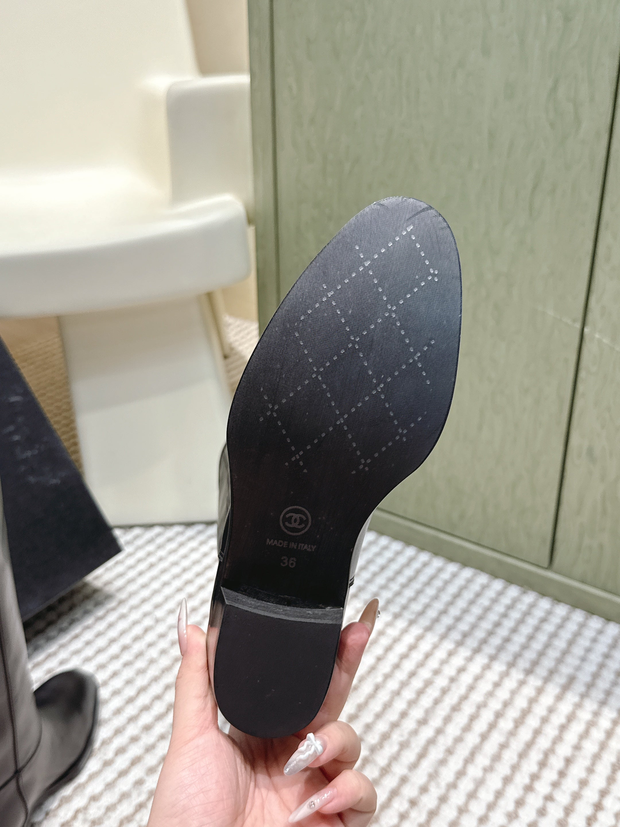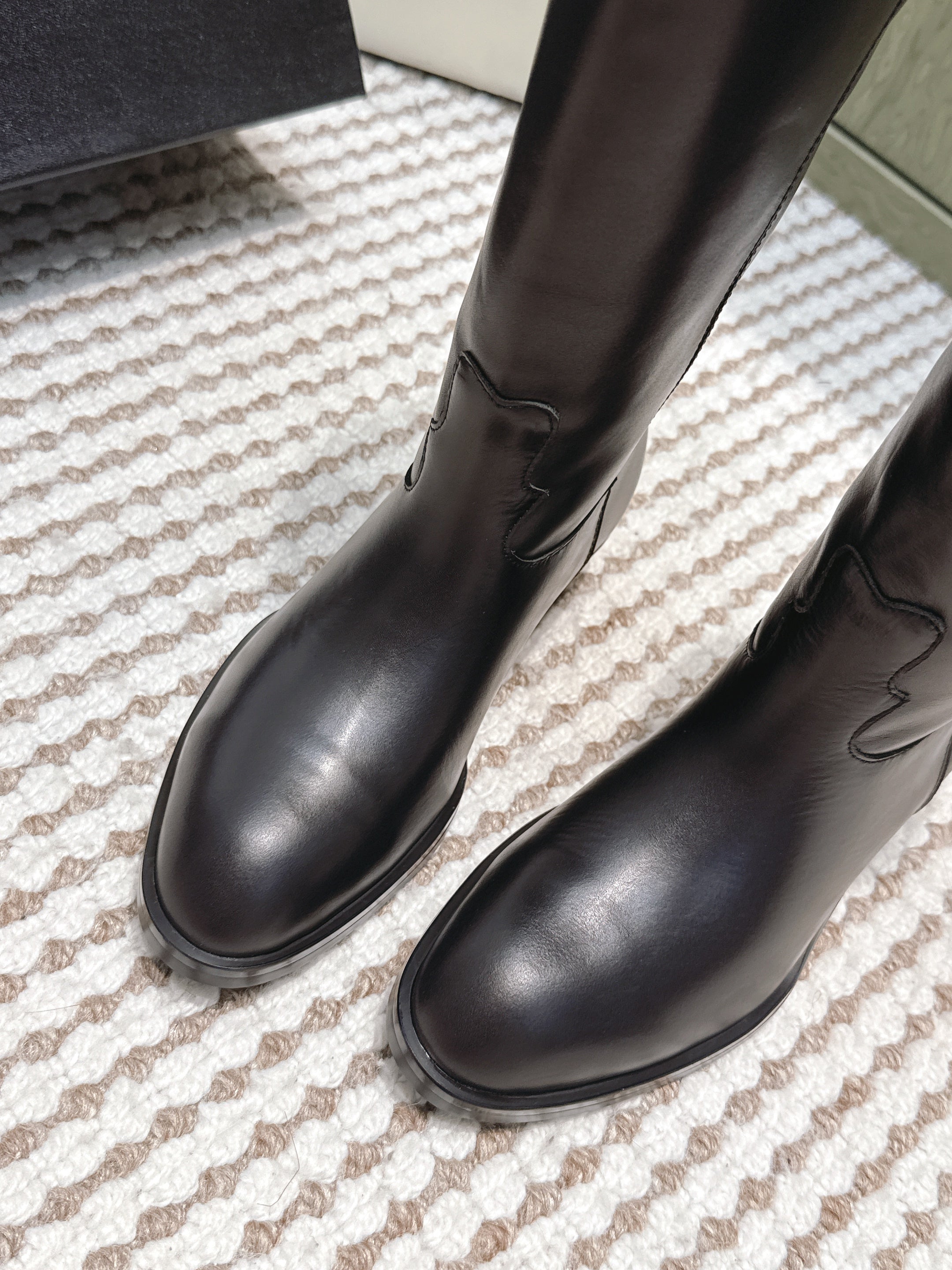 CHANEL 25S KNEE-HIGH BOOTS IN BLACK CALFSKIN