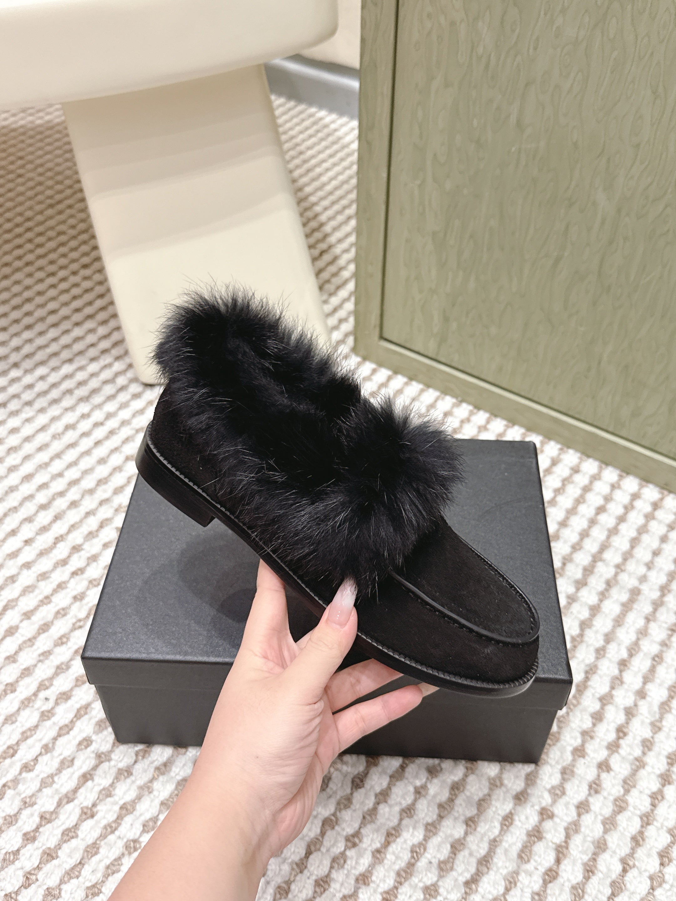 CHANEL 25S LOAFERS MOCCASIN IN BLACK SUEDE WITH MINK FUR LINING