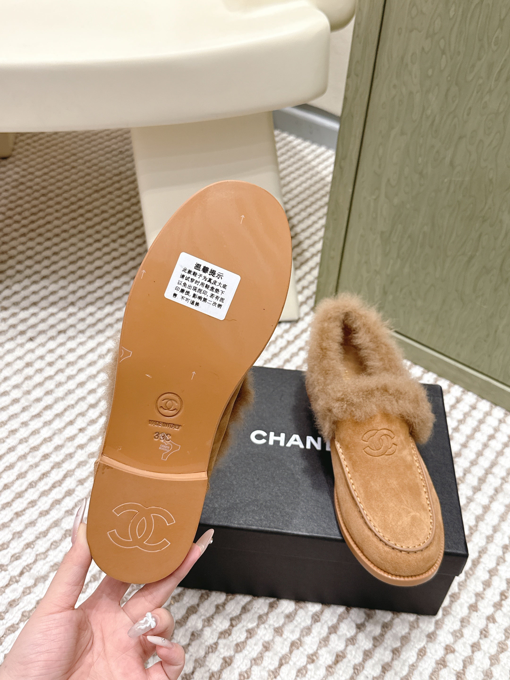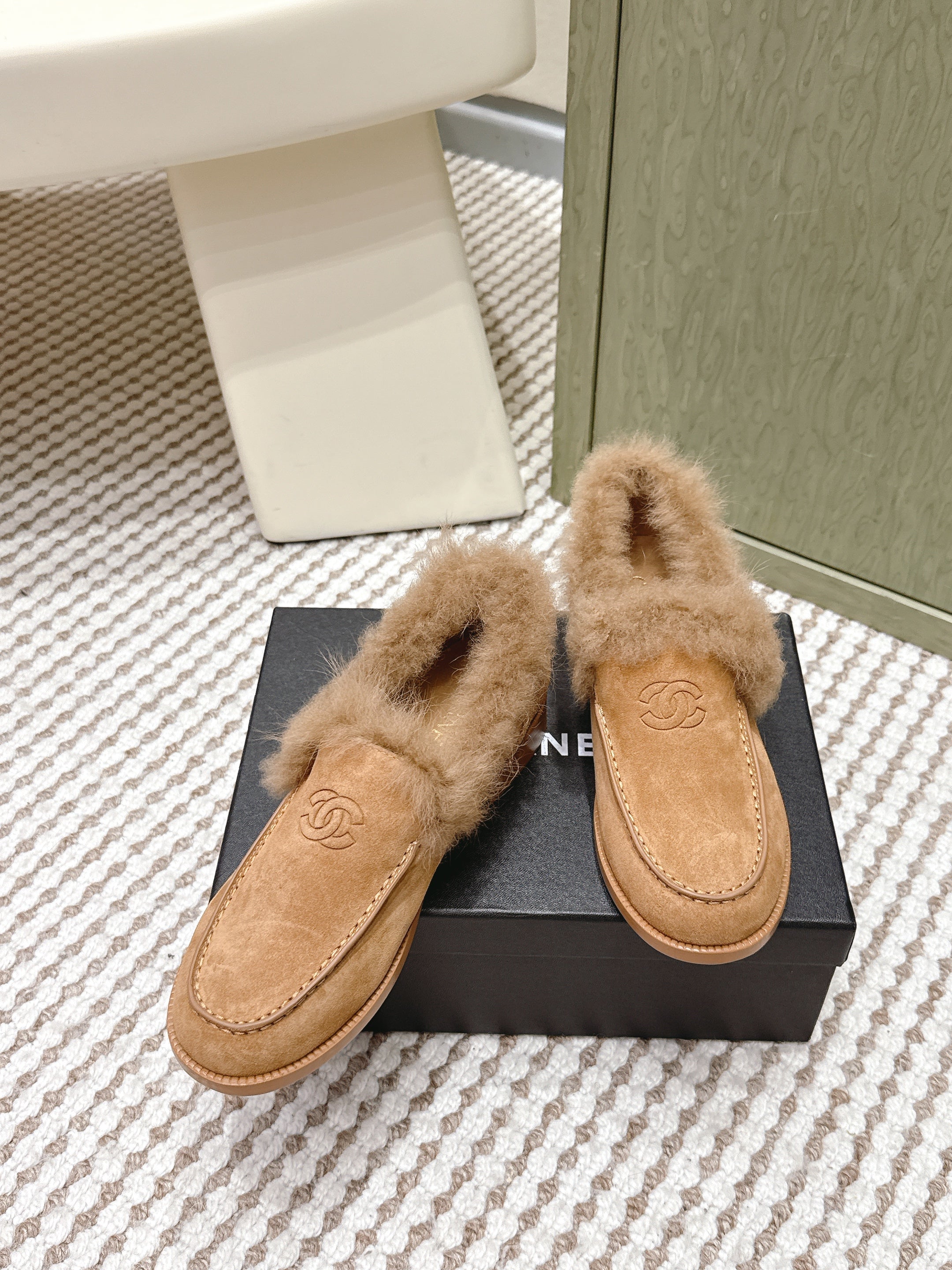CHANEL 25S LOAFERS MOCCASIN IN BROWN SUEDE WITH MINK FUR LINING