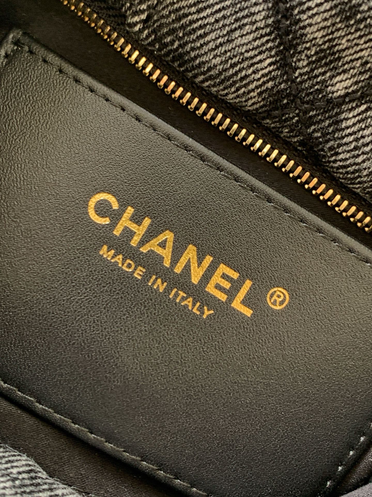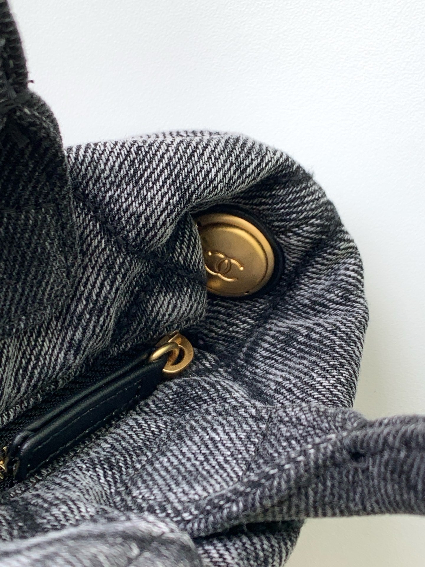 CHANEL 25S MAXI BOW BAG 26 IN DARK GREY DENIM WITH GOLD HARDWARE